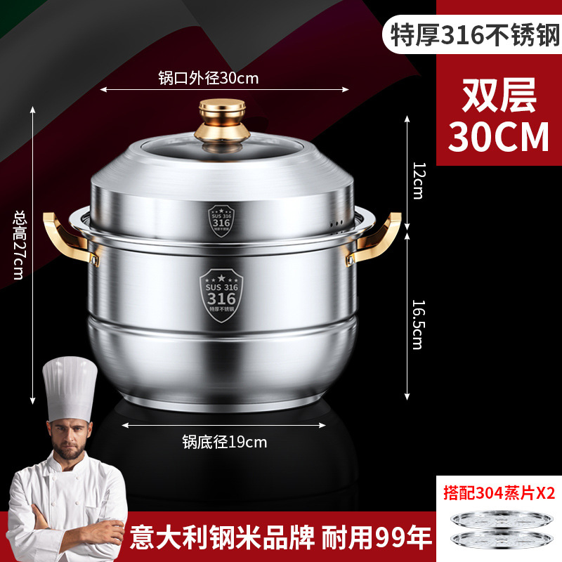 钢米同款蒸锅316不锈钢家用食品级加厚汤锅蒸馒头四层电磁炉通用