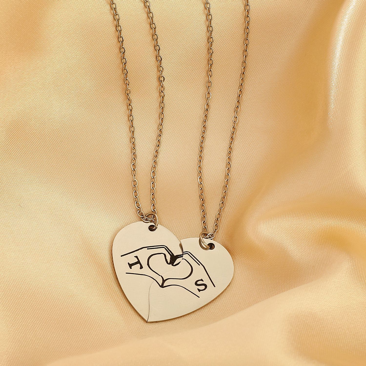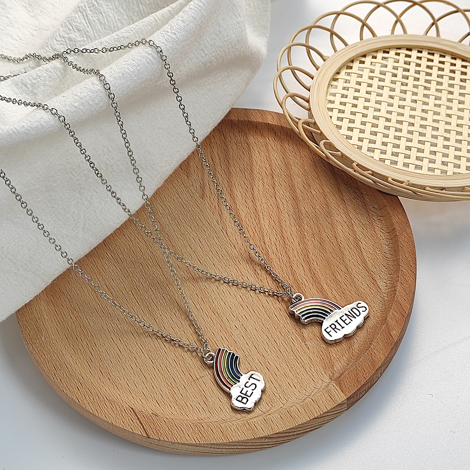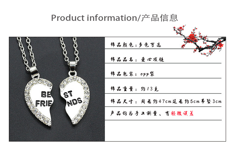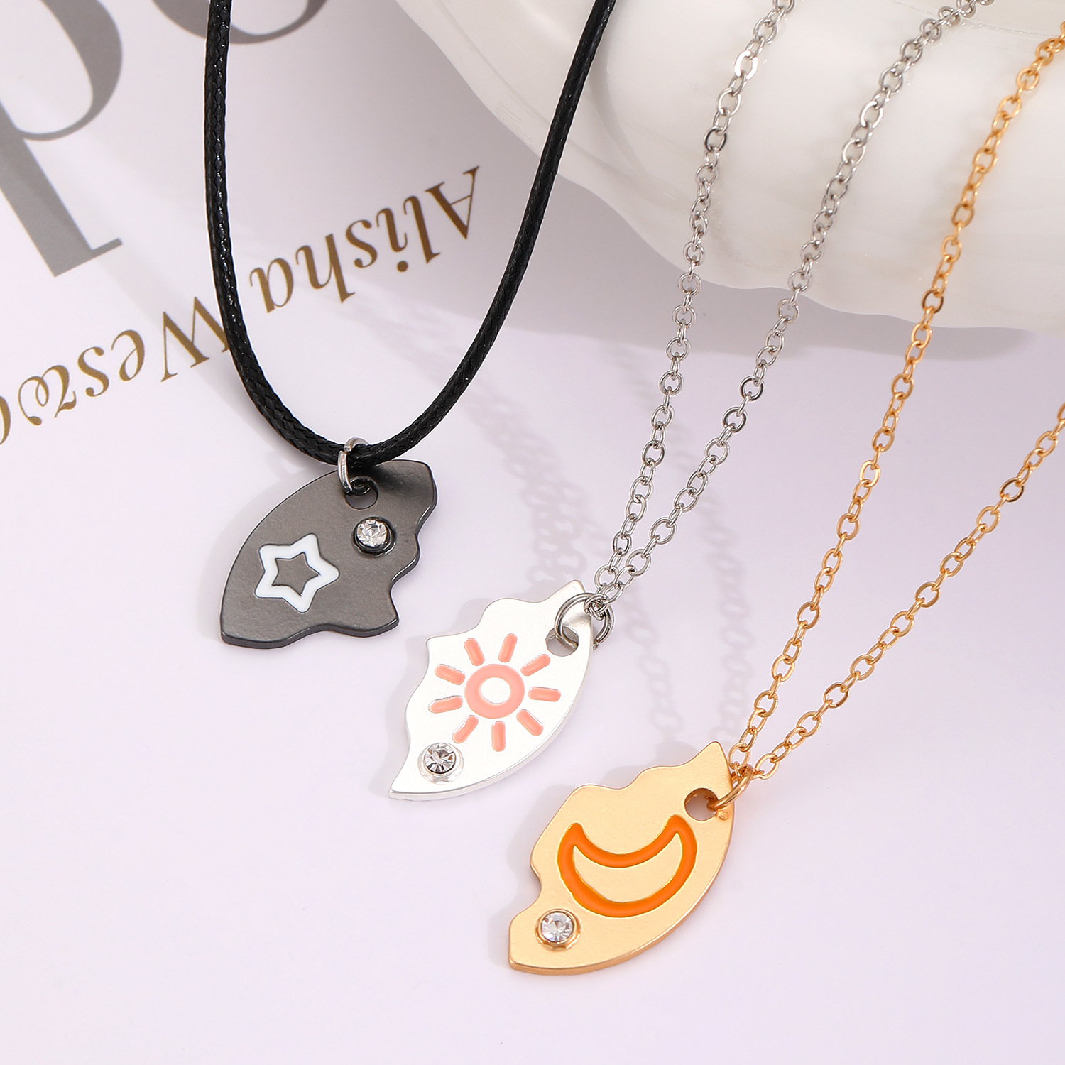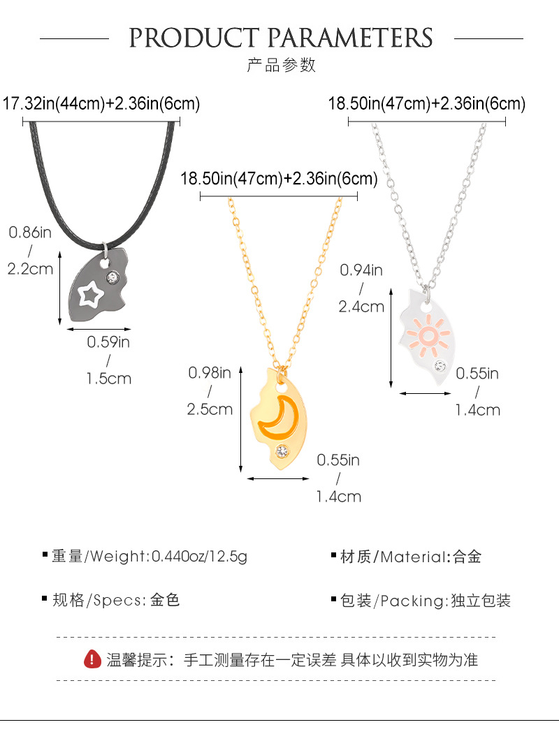 新款跨境星星月亮太阳三人拼接 好朋友闺蜜合金镶钻两件套装项链