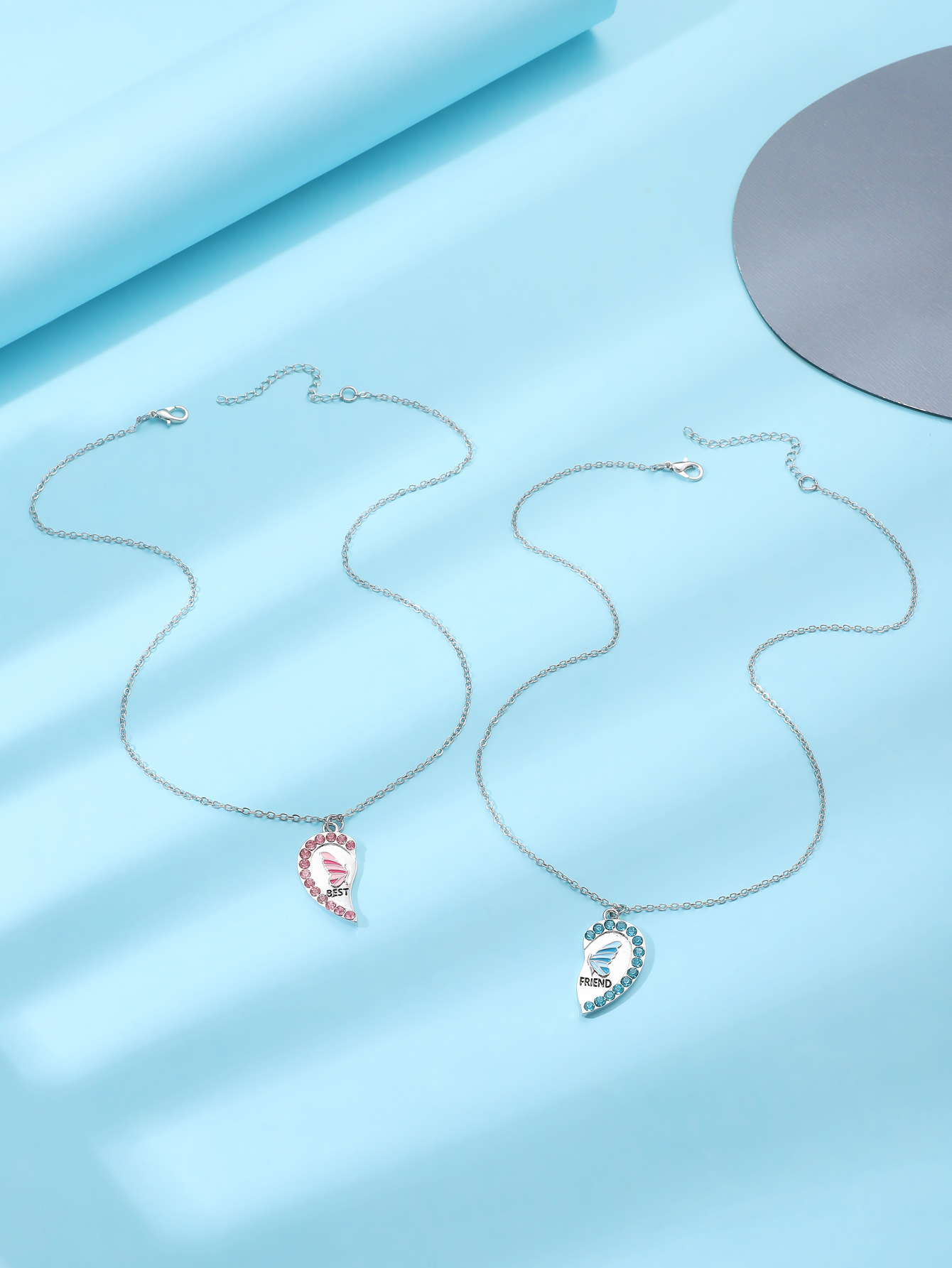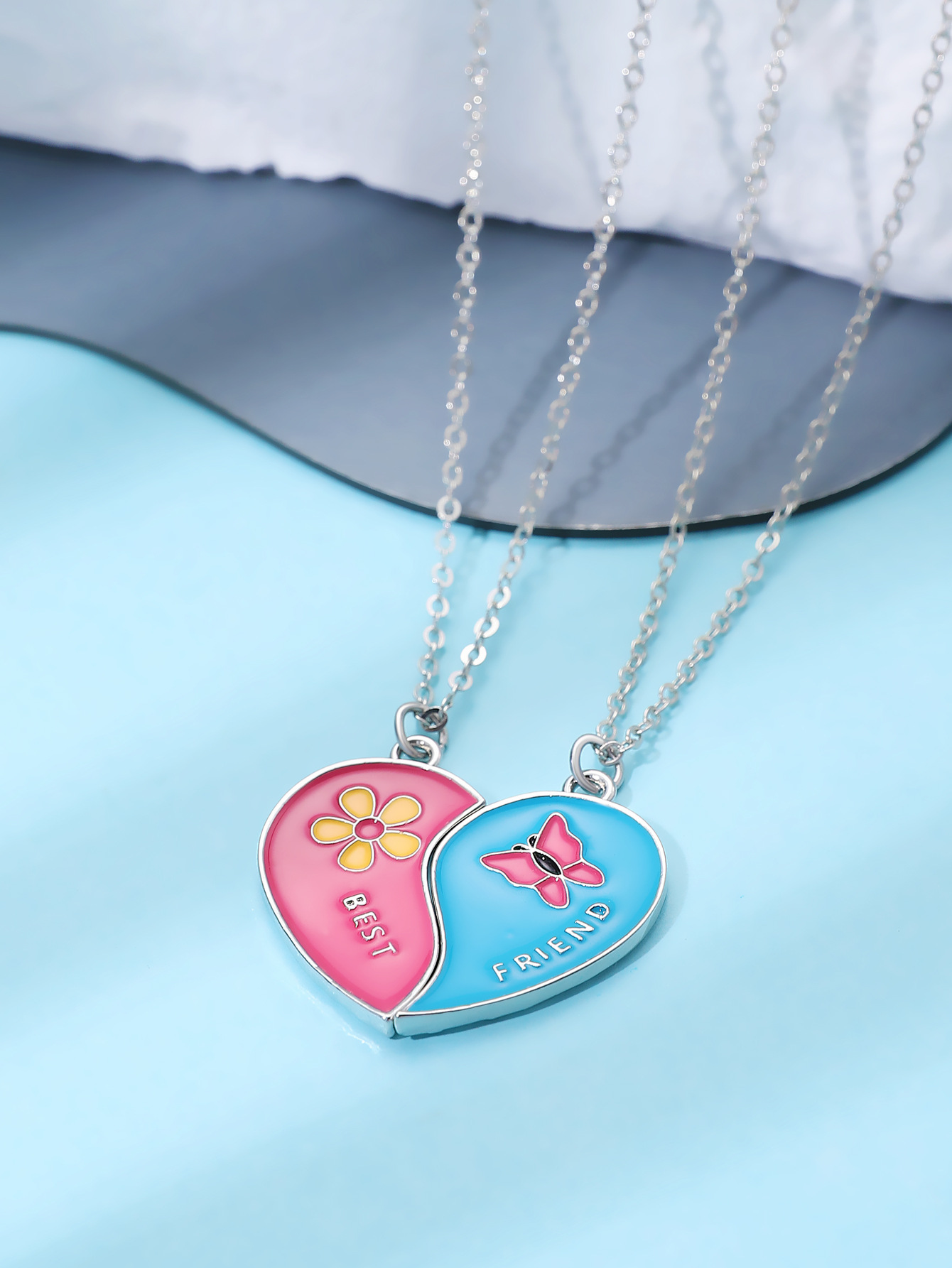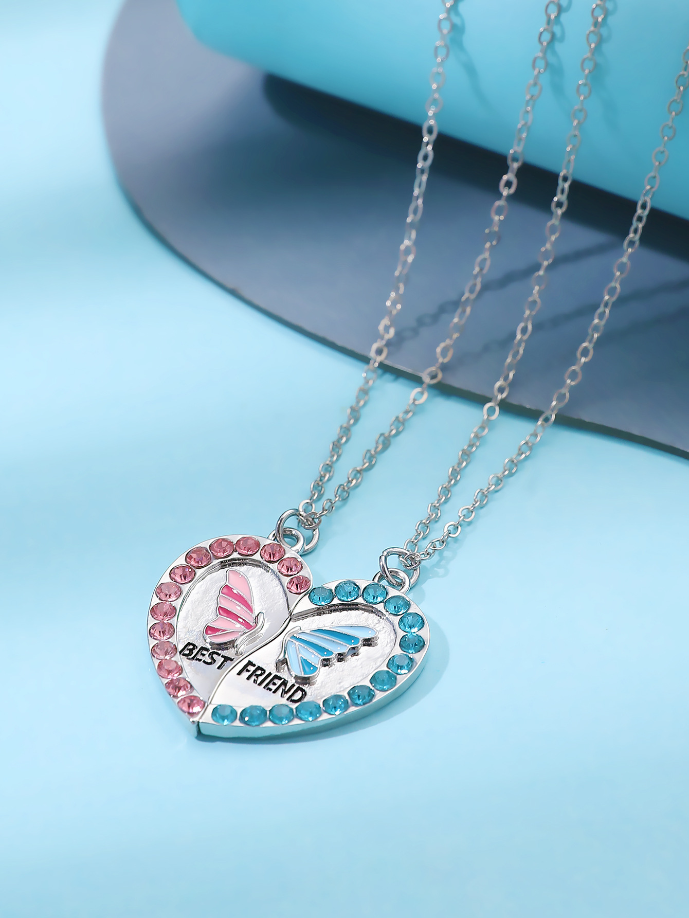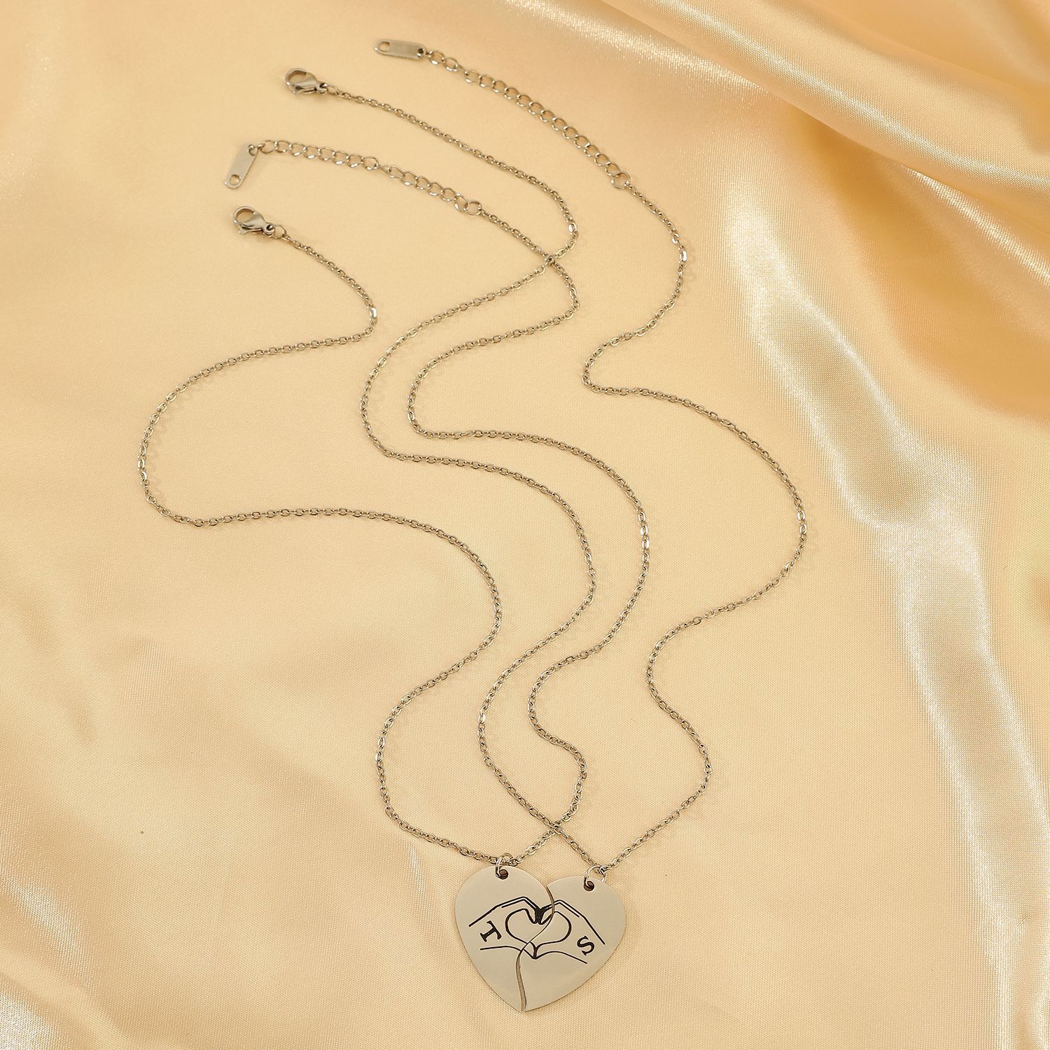 新款跨境星星月亮太阳三人拼接 好朋友闺蜜合金镶钻两件套装项链