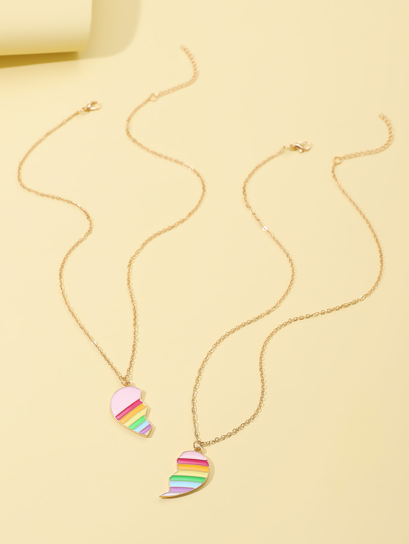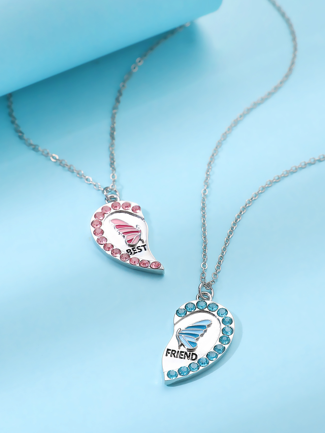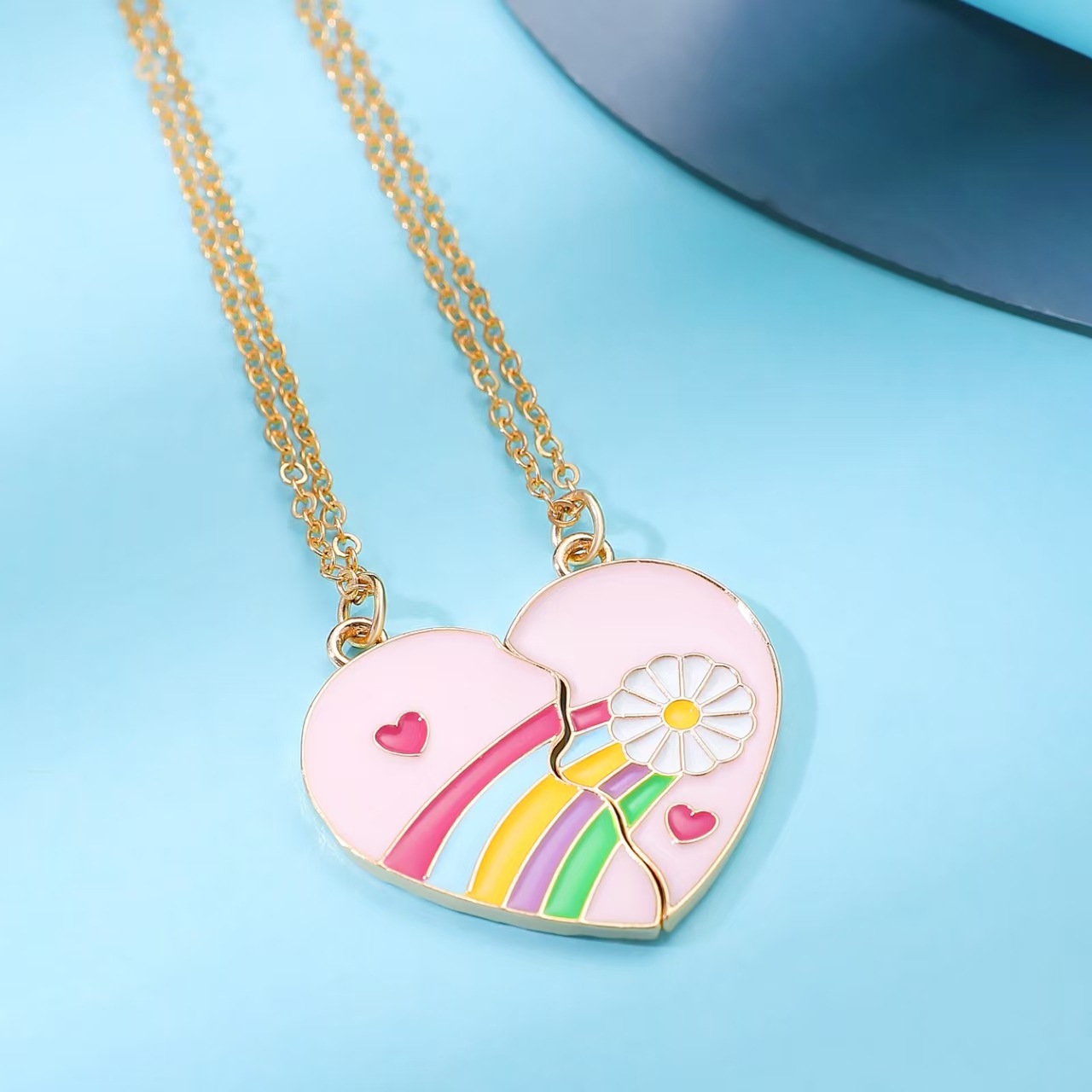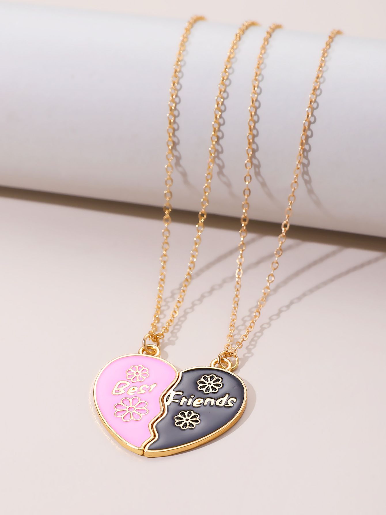 新款跨境星星月亮太阳三人拼接 好朋友闺蜜合金镶钻两件套装项链