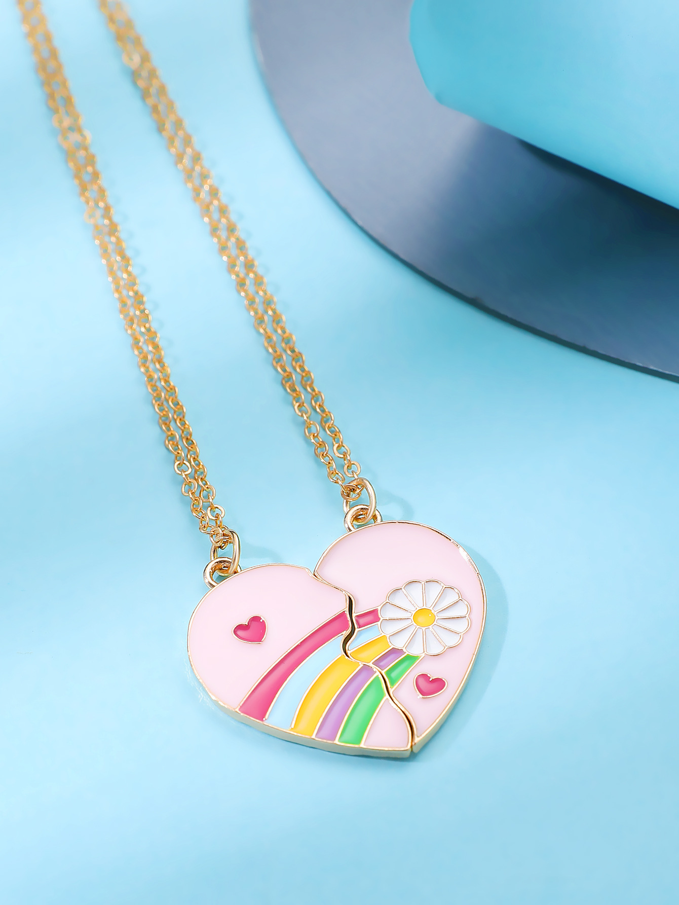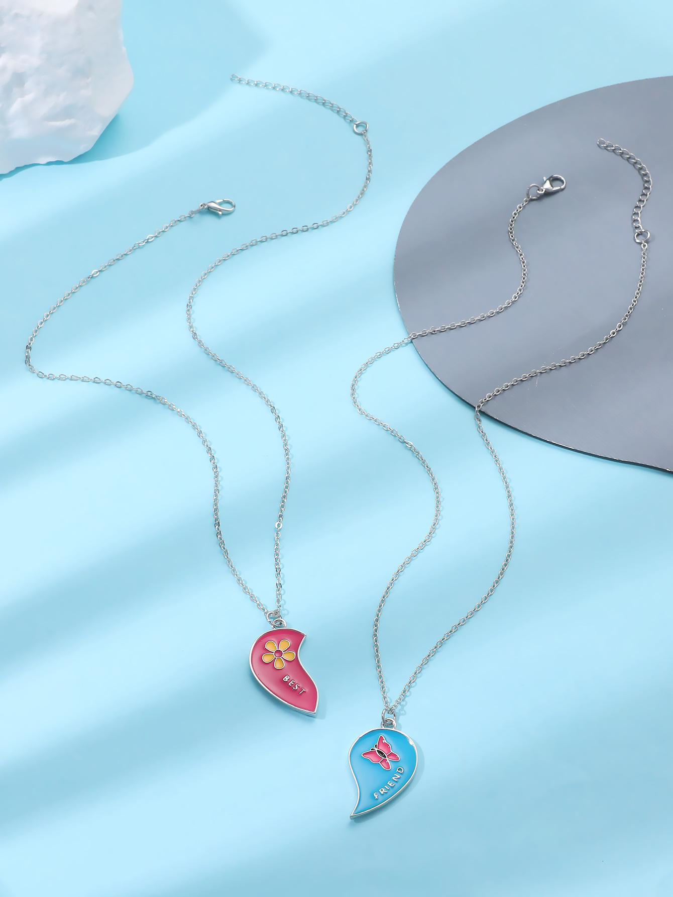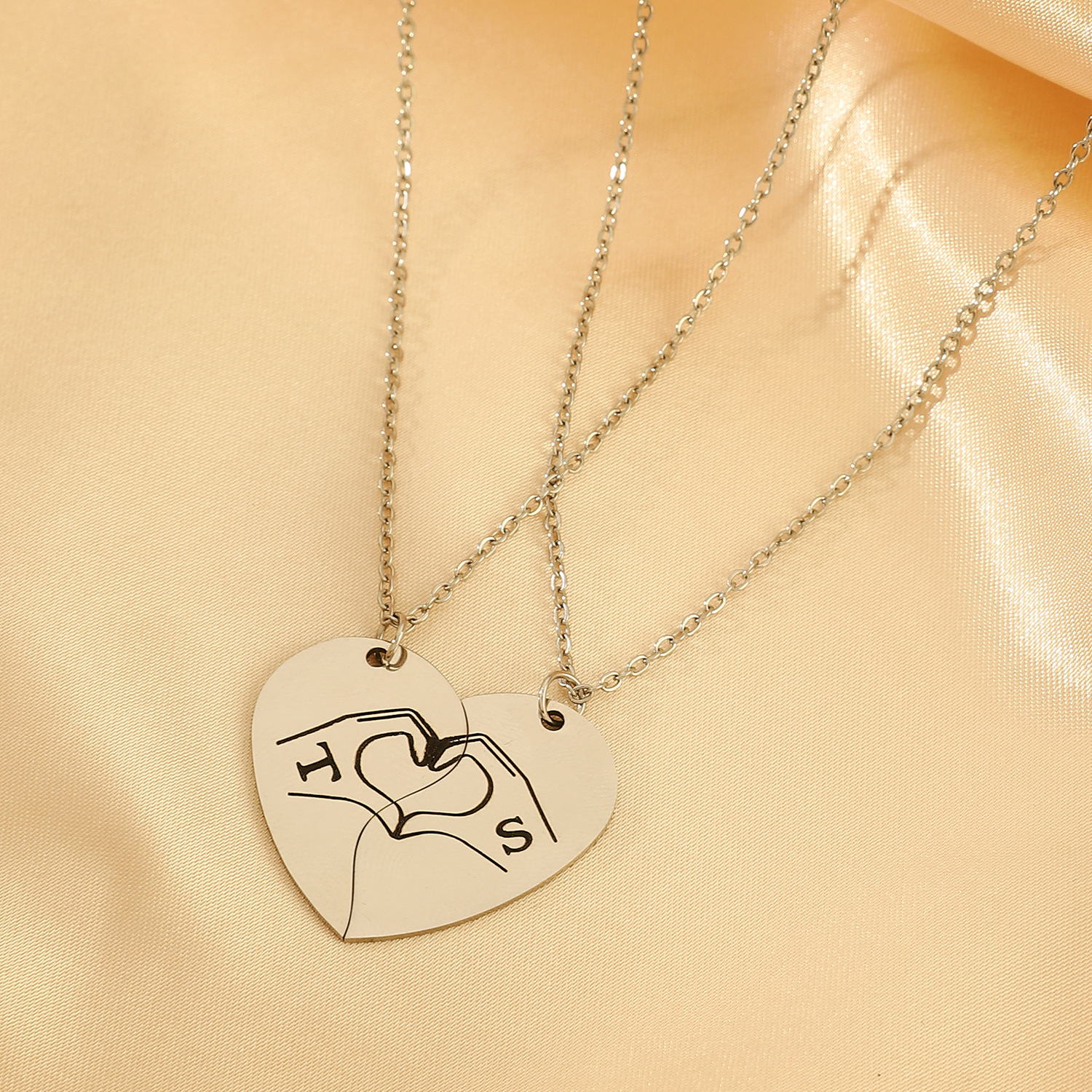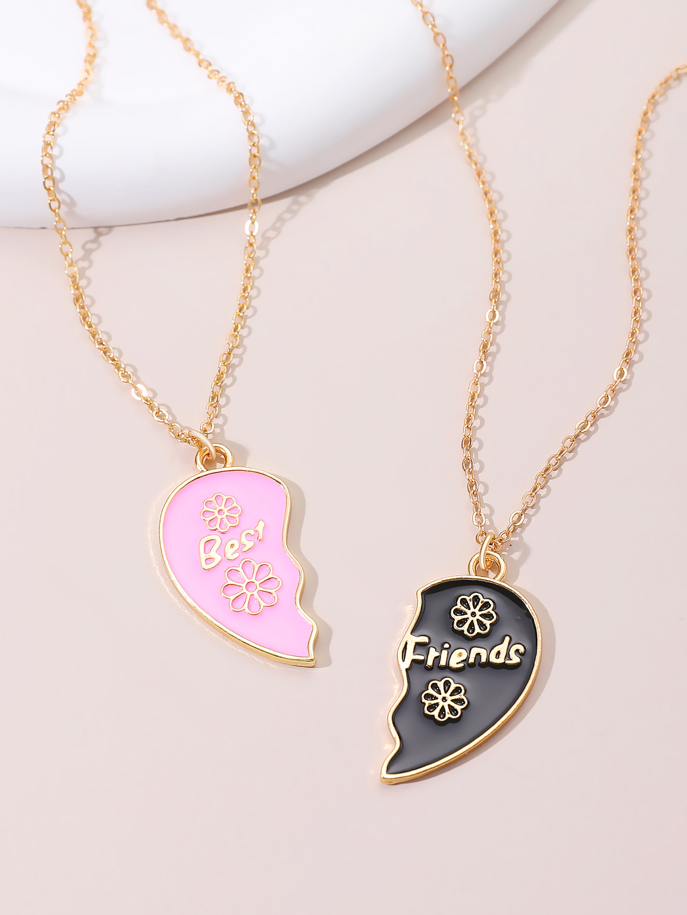 新款跨境星星月亮太阳三人拼接 好朋友闺蜜合金镶钻两件套装项链