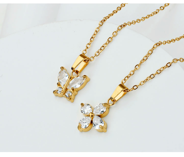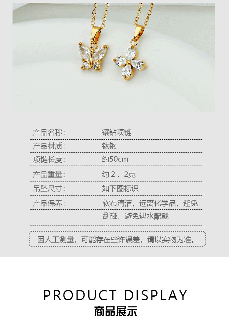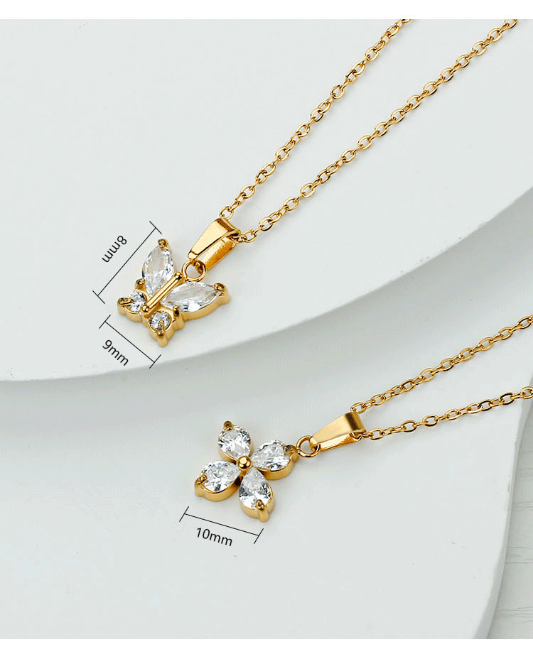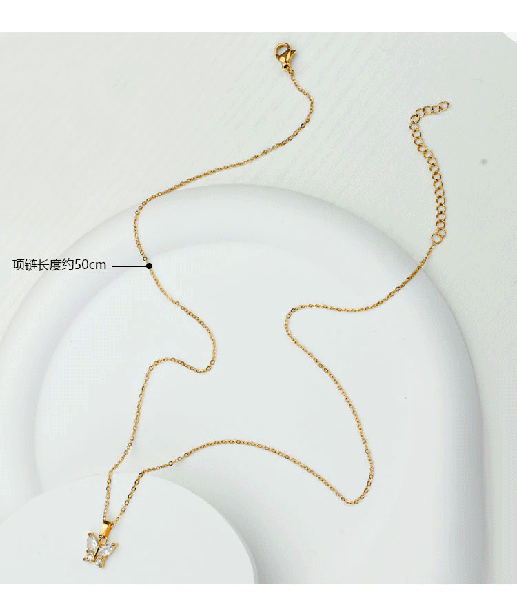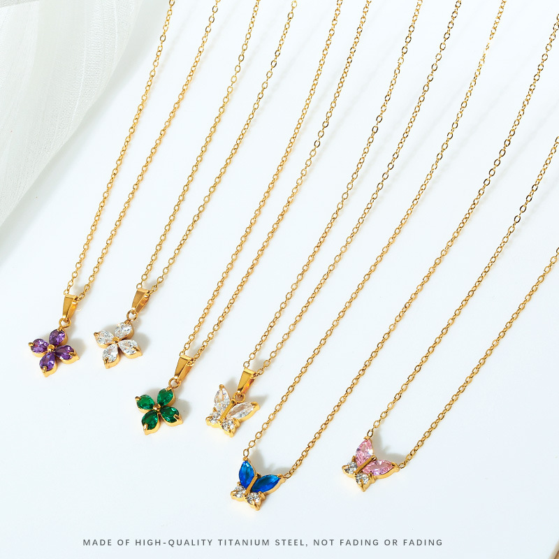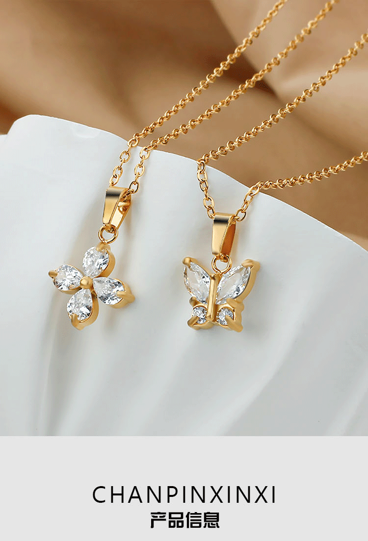 欧美时尚不锈钢蝴蝶钛钢项链锆石小众花瓣锁骨链女夏季不掉色批发