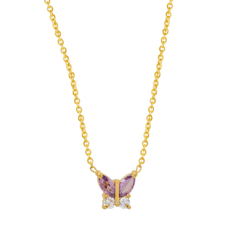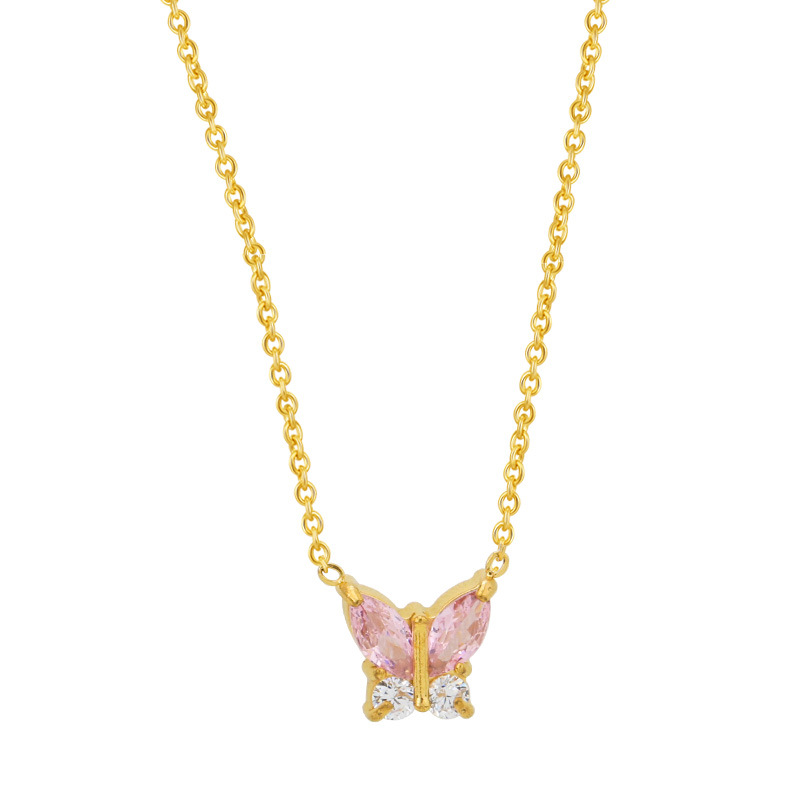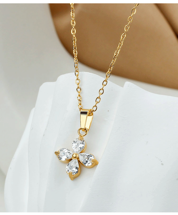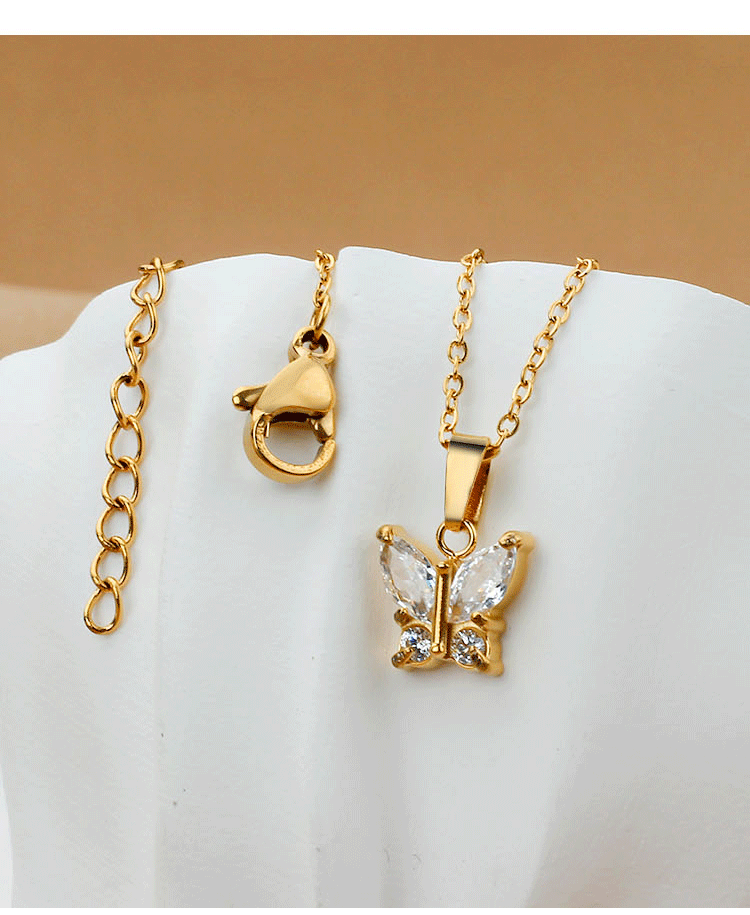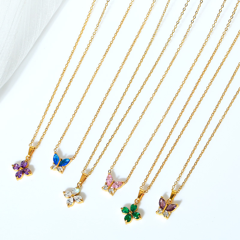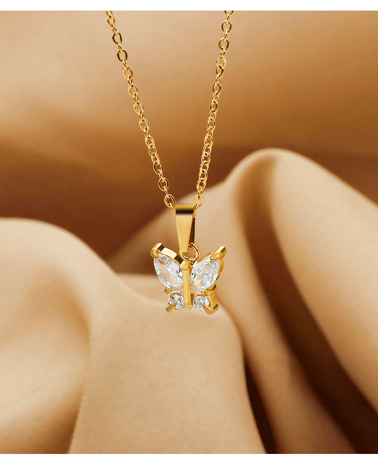 欧美时尚不锈钢蝴蝶钛钢项链锆石小众花瓣锁骨链女夏季不掉色批发