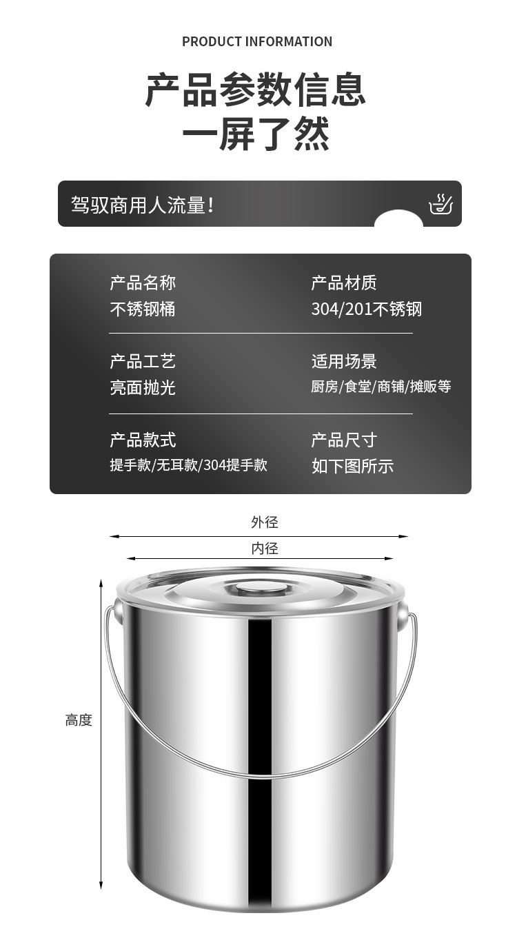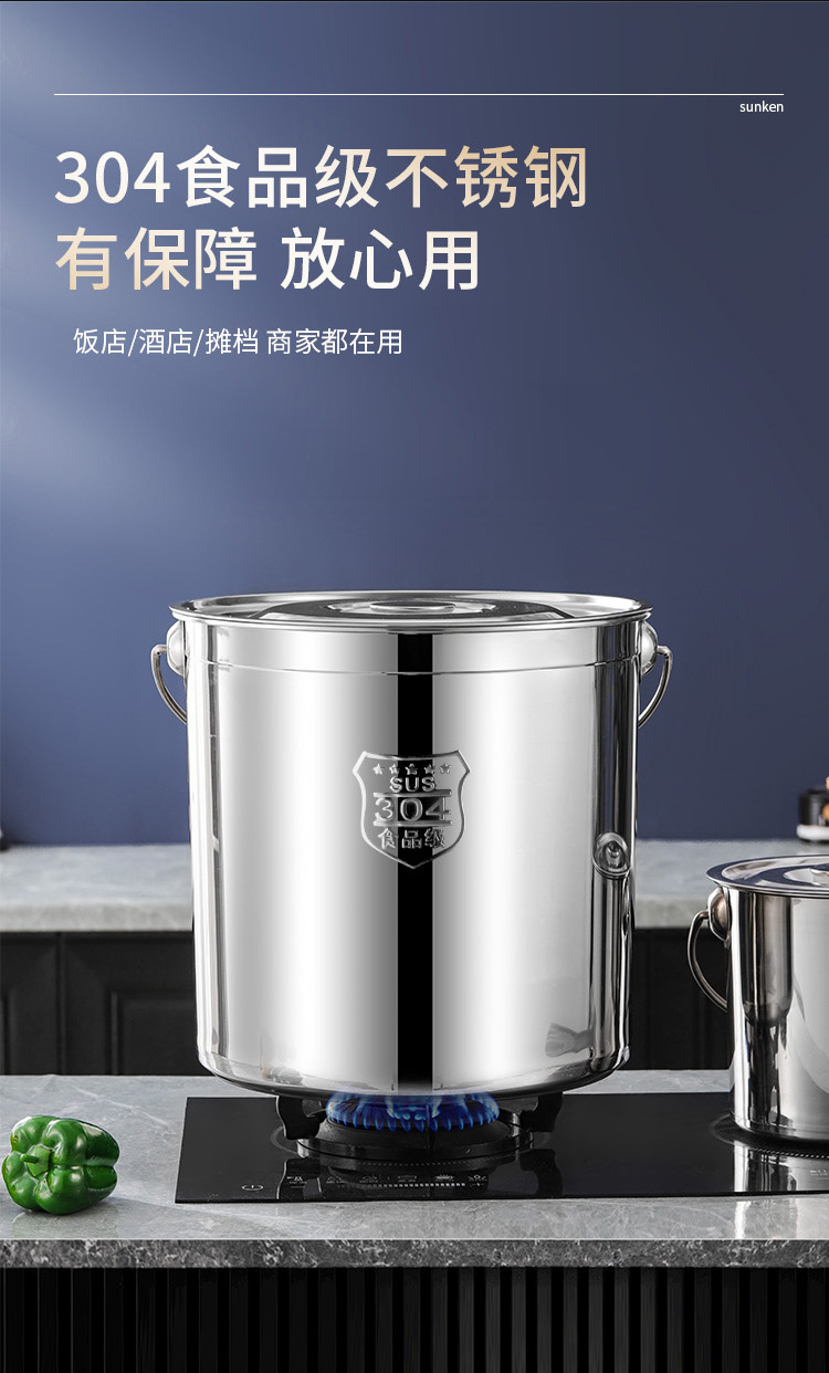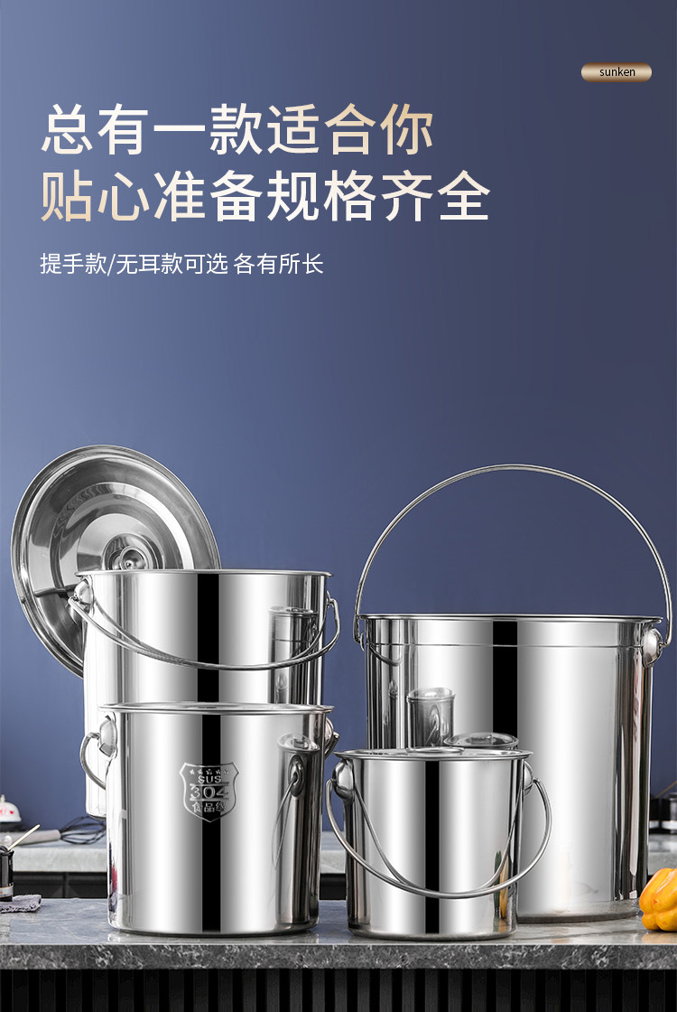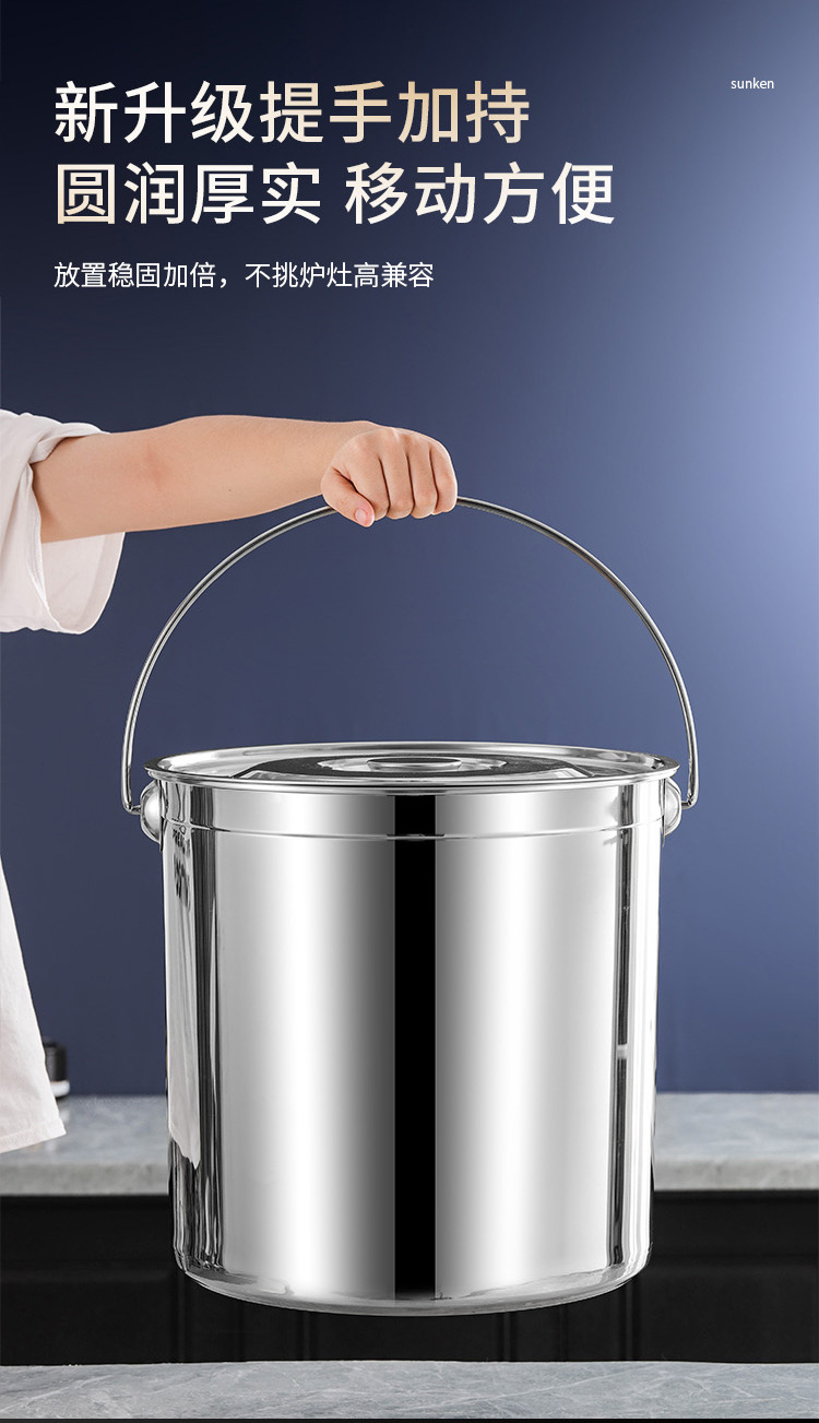 定 制304不锈钢水桶手提式带盖储水桶幼儿园商用手提桶储油桶汤桶