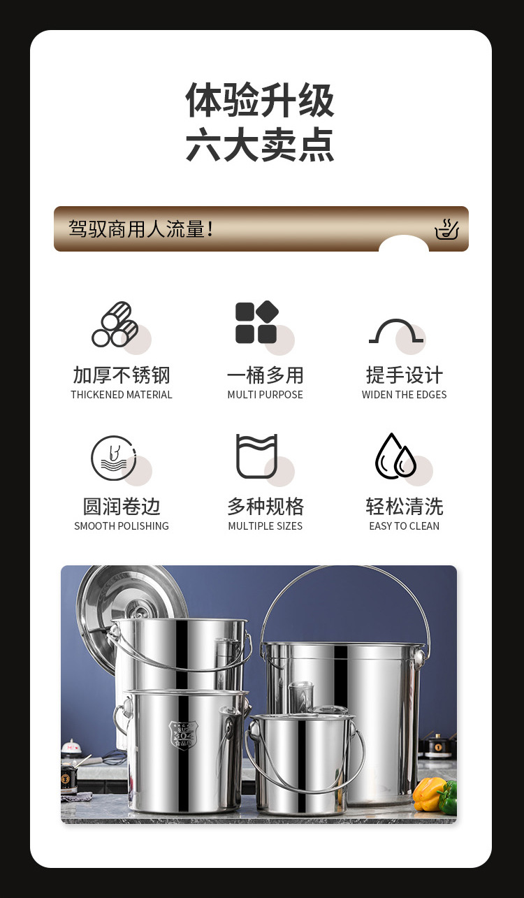 【包邮】304不锈钢水桶带盖冰桶手提式汤桶油桶幼儿园送餐提水桶
