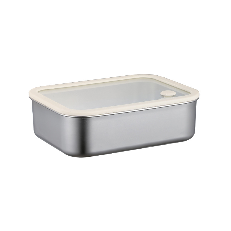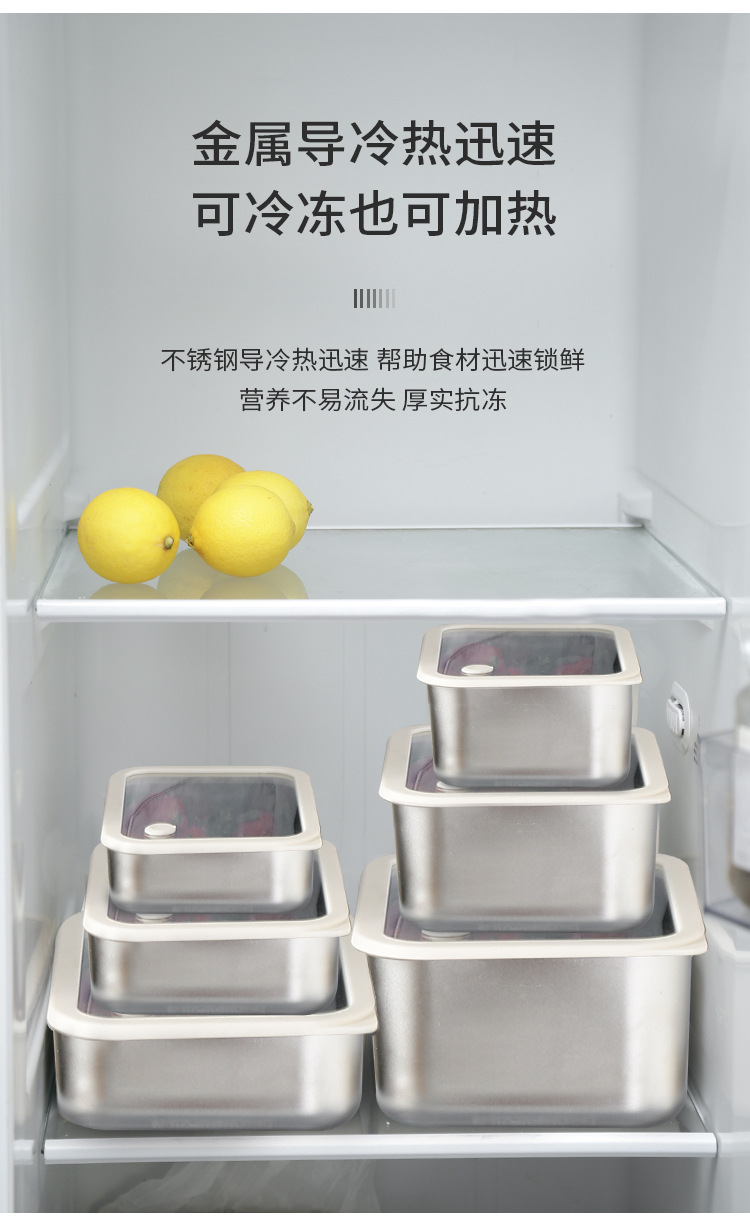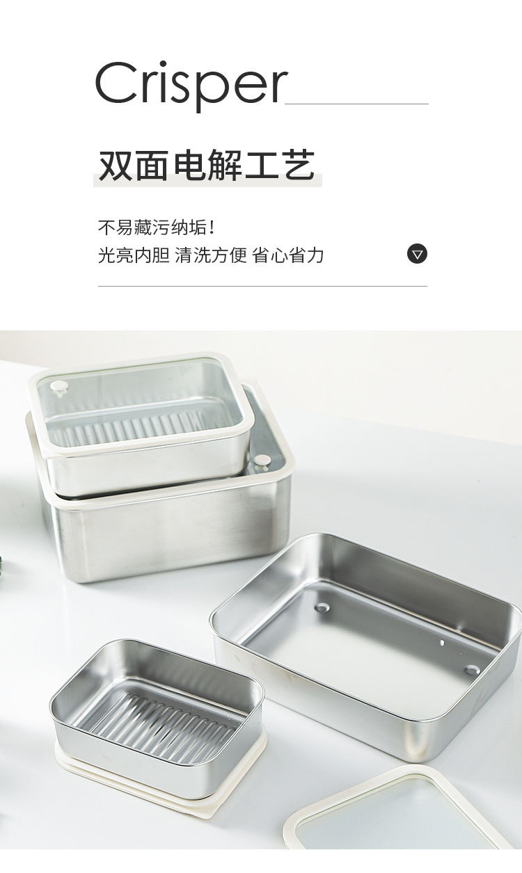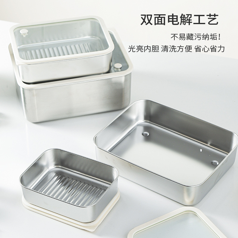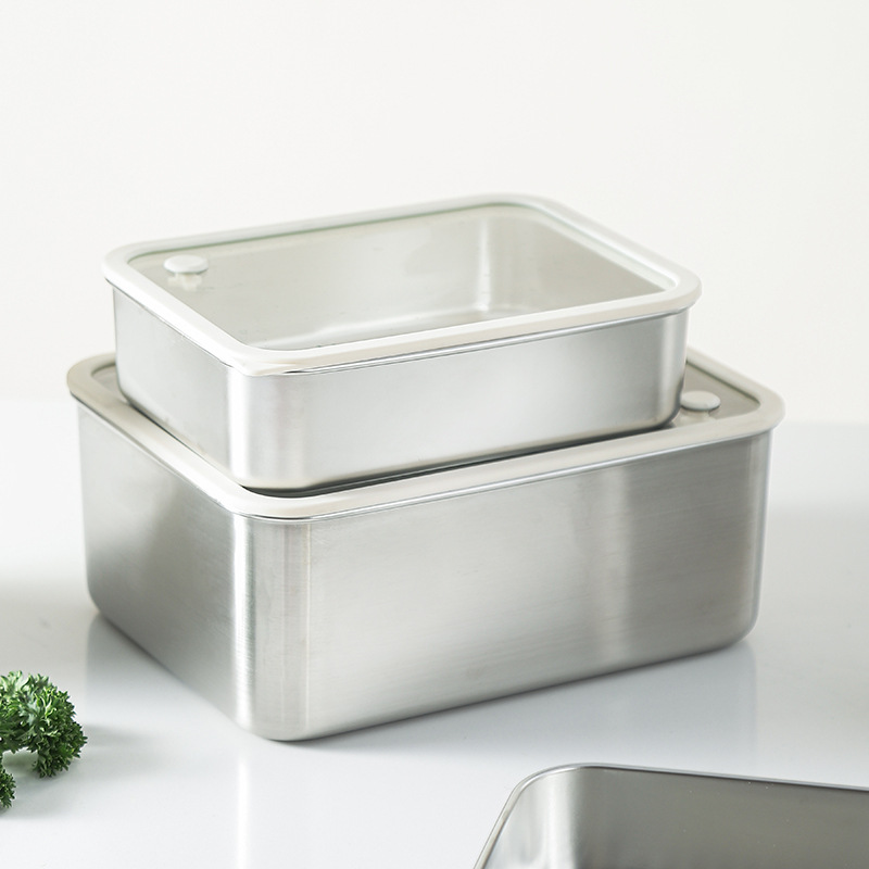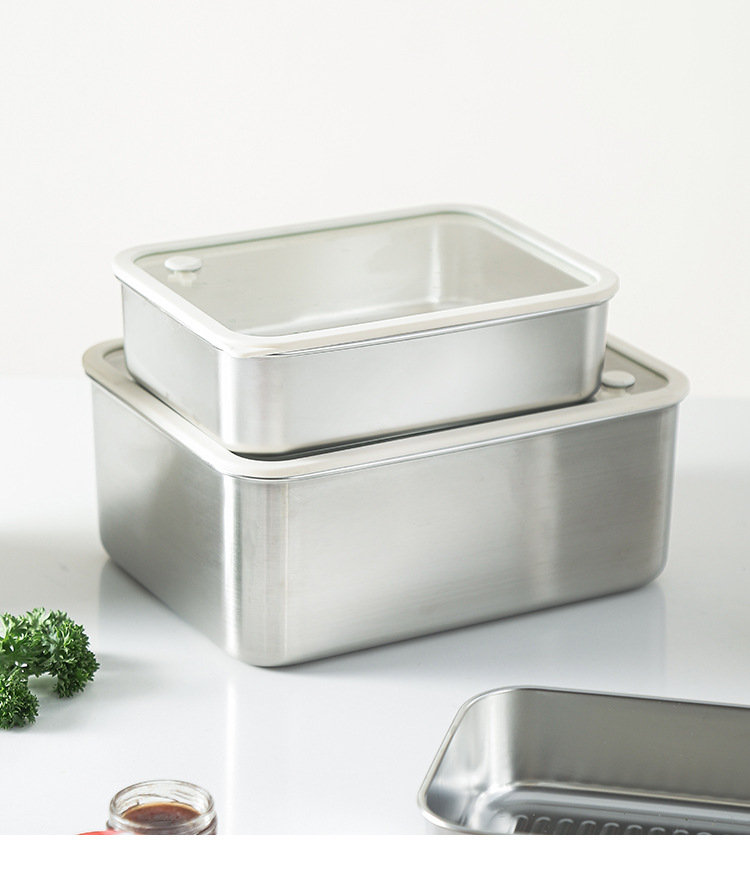 304不锈钢大号带盖透明长方形食品保鲜盒冰箱收纳冷冻储物盒批发