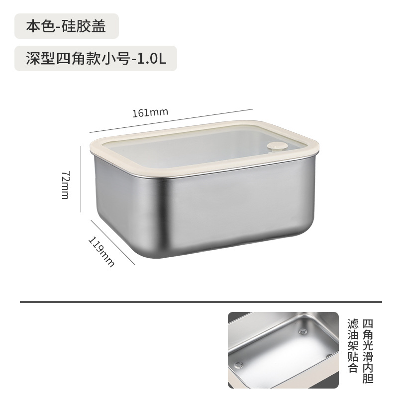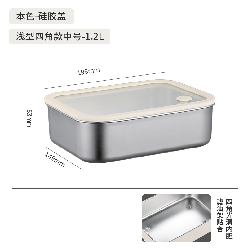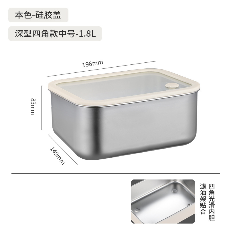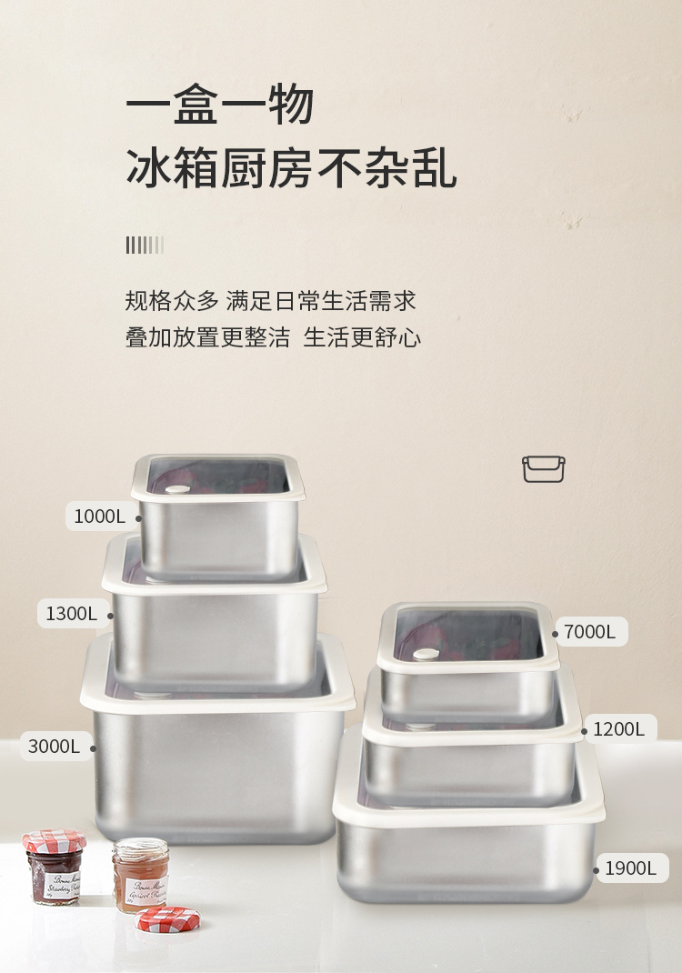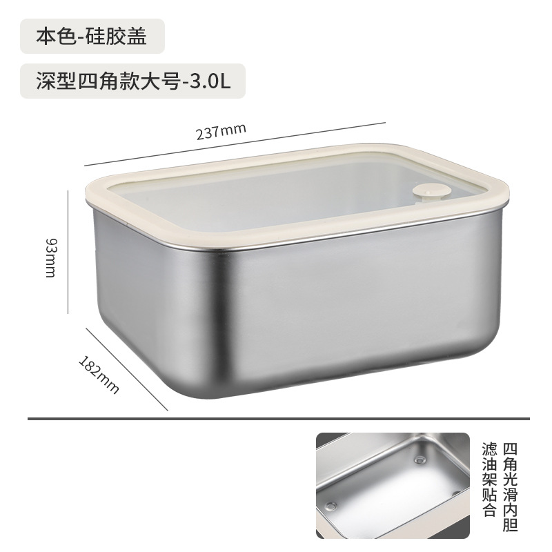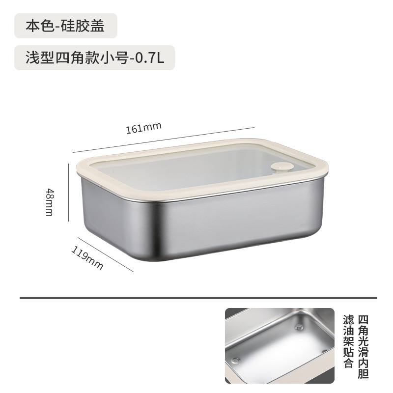 304不锈钢大号带盖透明长方形食品保鲜盒冰箱收纳冷冻储物盒批发