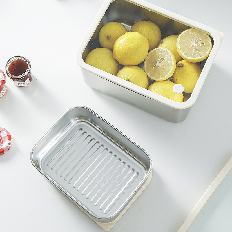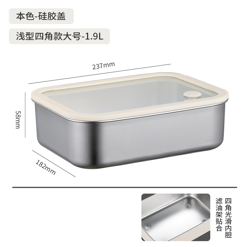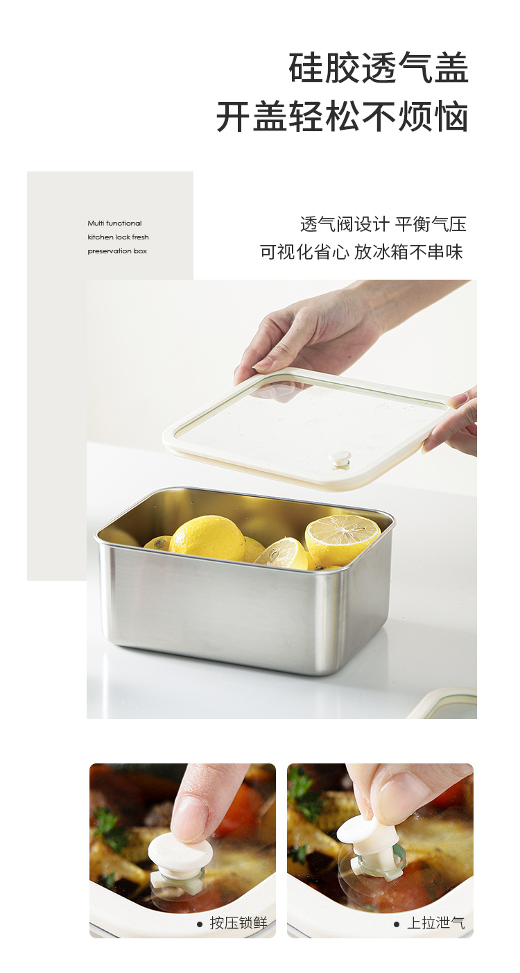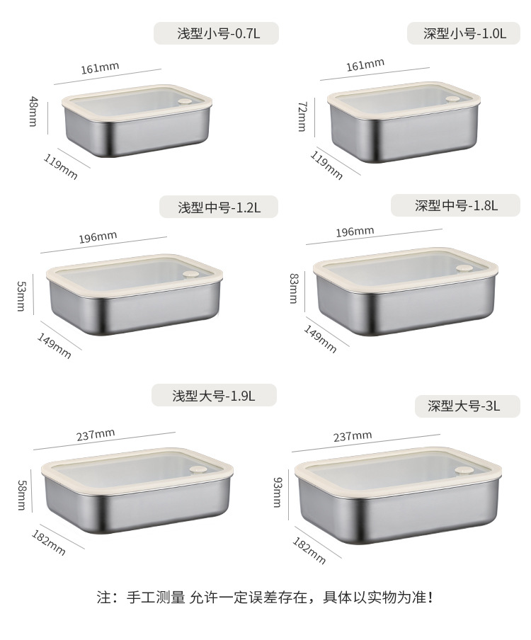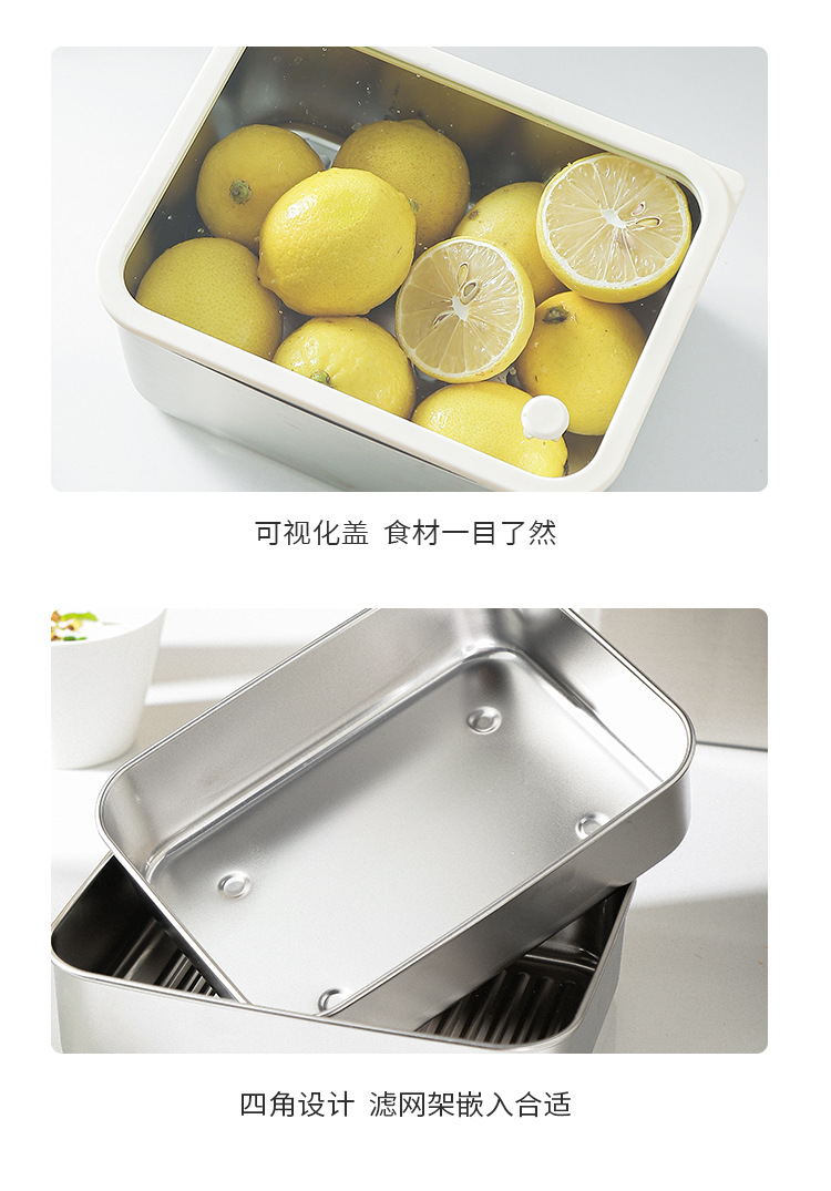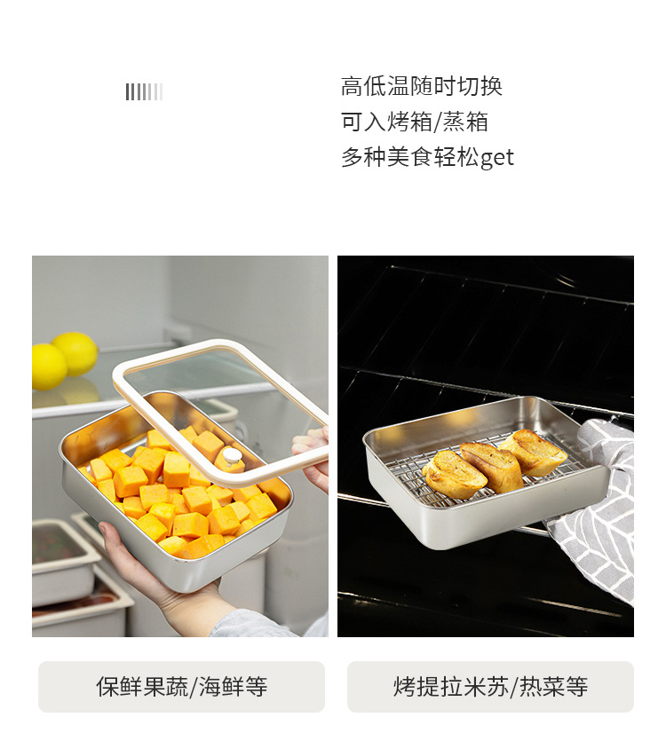 304不锈钢大号带盖透明长方形食品保鲜盒冰箱收纳冷冻储物盒批发