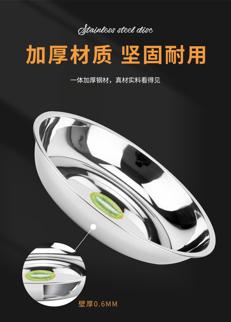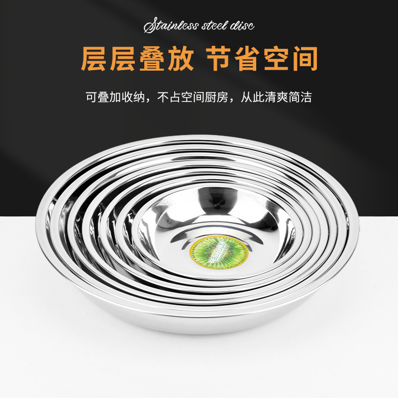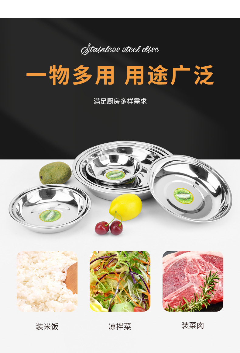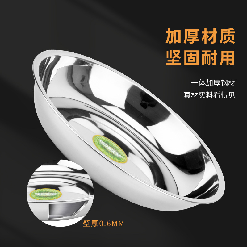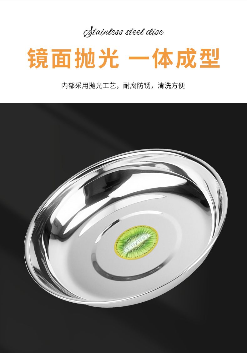 不锈钢深盘圆形凉菜盘金属托盘烧烤简约餐盘龙虾盘食堂盘子高颜值