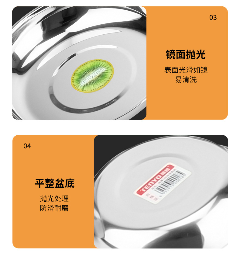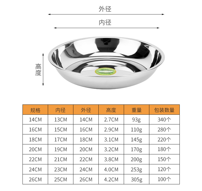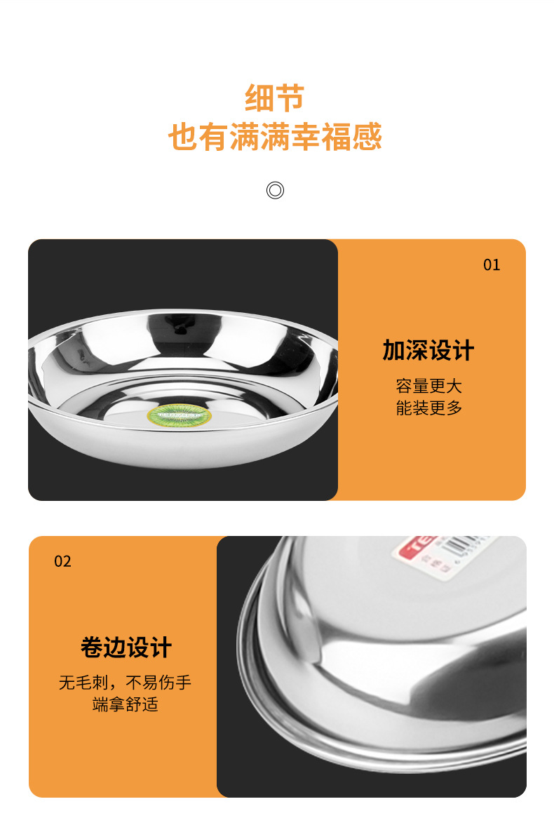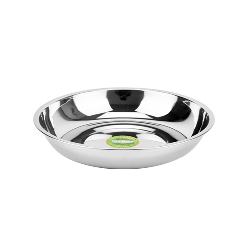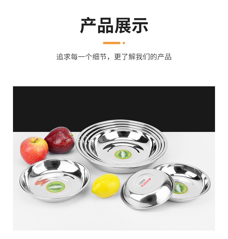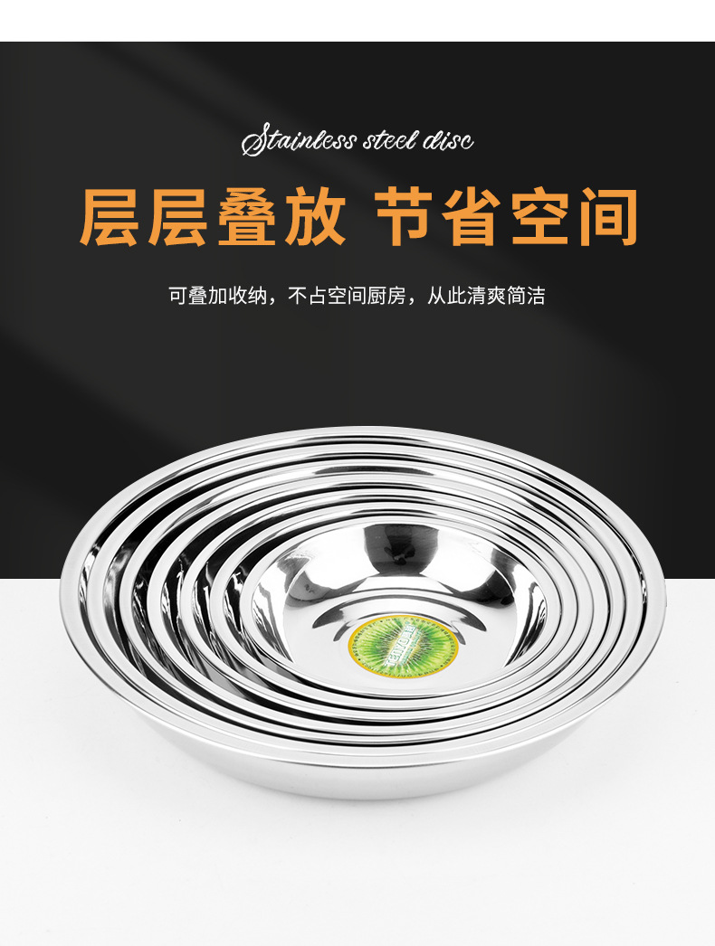 不锈钢深盘圆形凉菜盘金属托盘烧烤简约餐盘龙虾盘食堂盘子高颜值