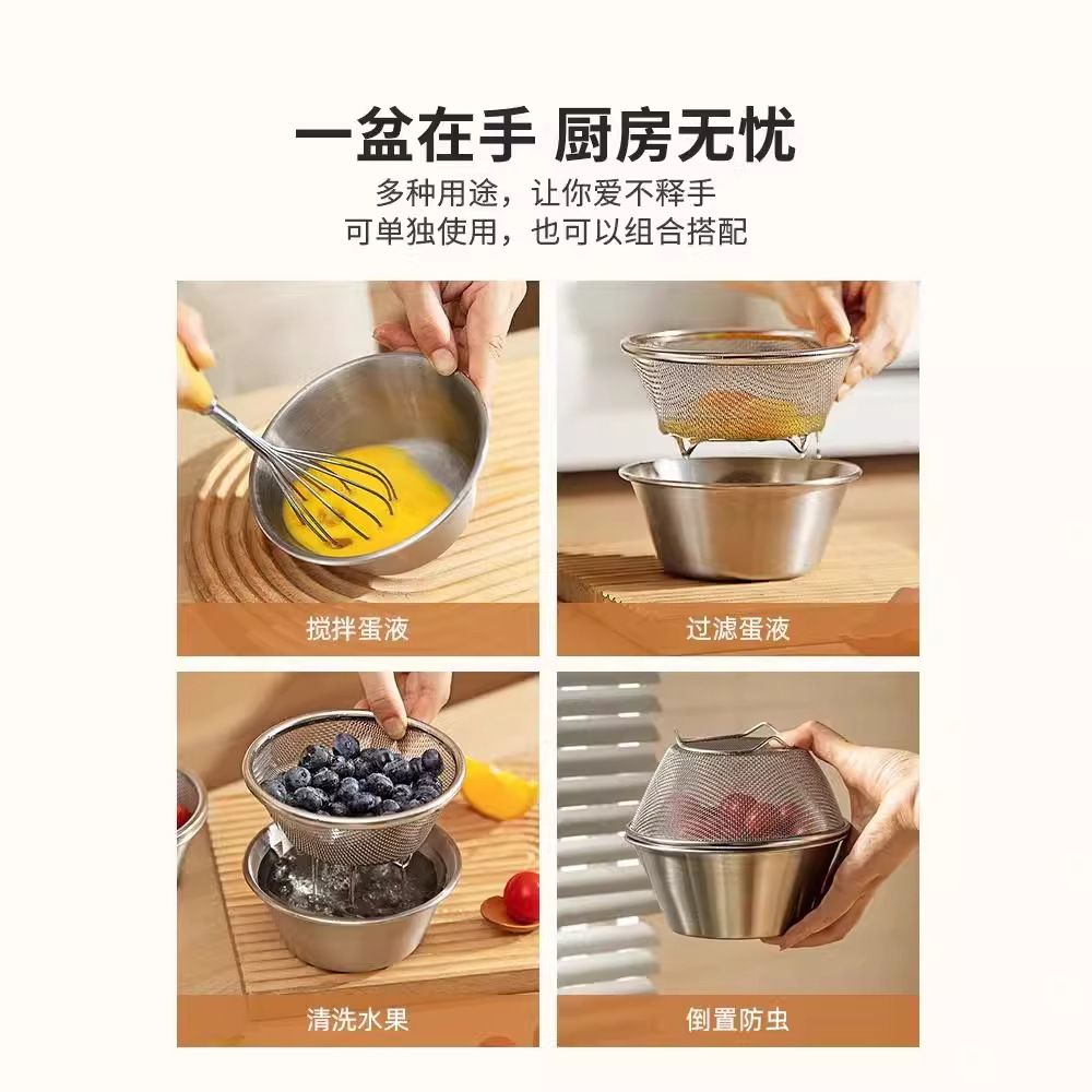 304不锈钢盆餐具家用揉面盆洗菜发面盆和面盆水果篮子日式打蛋盆