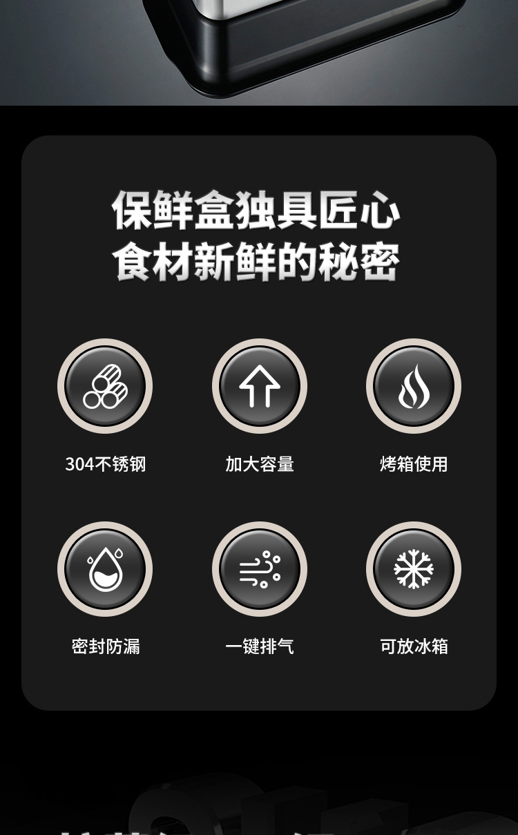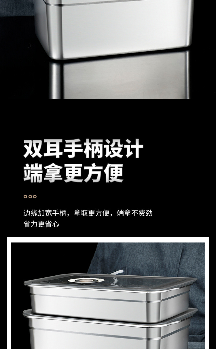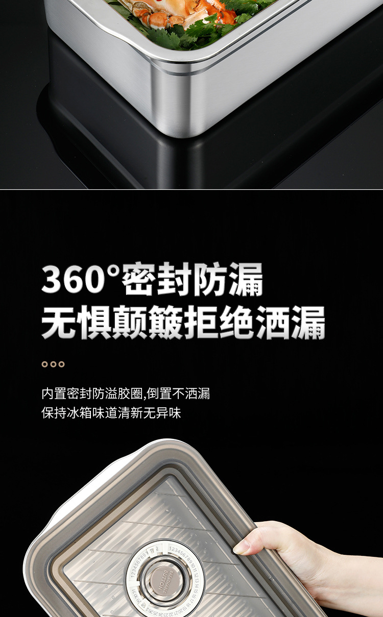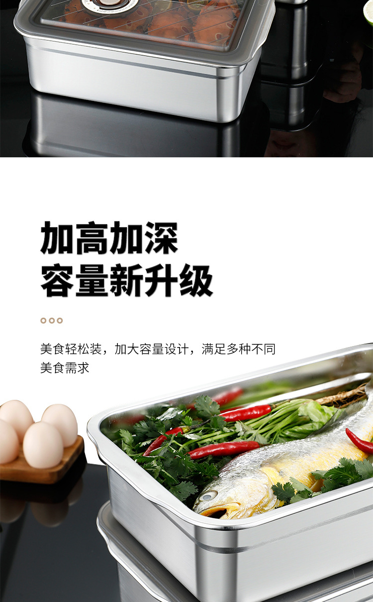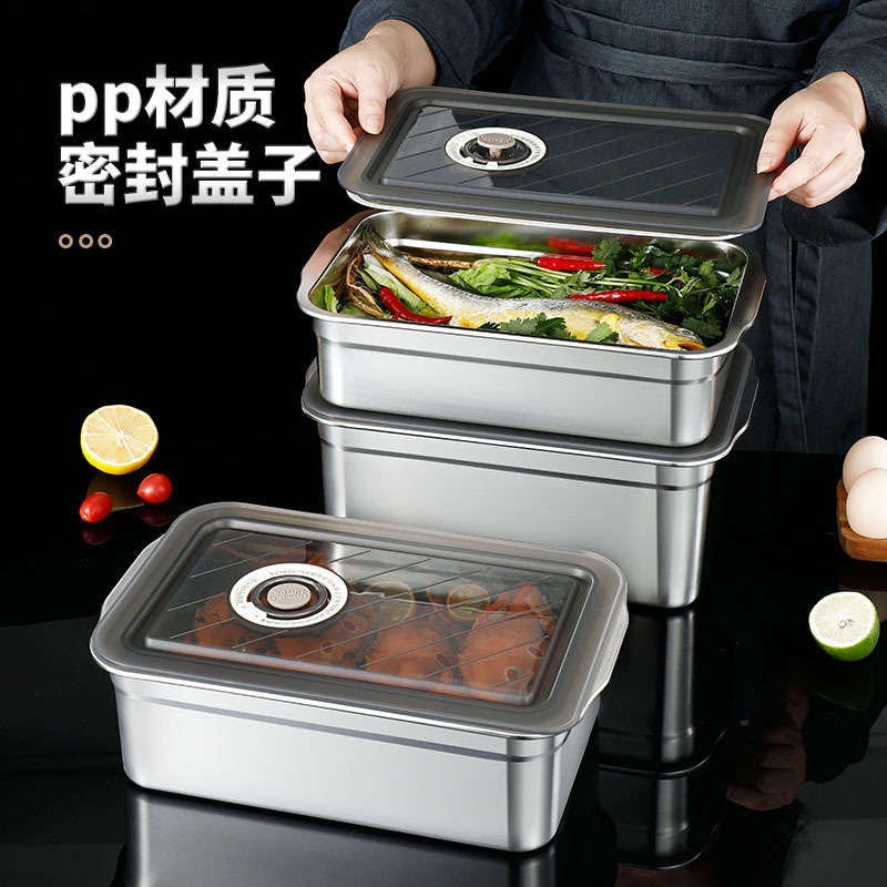大号304不锈钢保鲜盒密封饭盒食品盒冰箱收纳盒饺子盒便当盒子