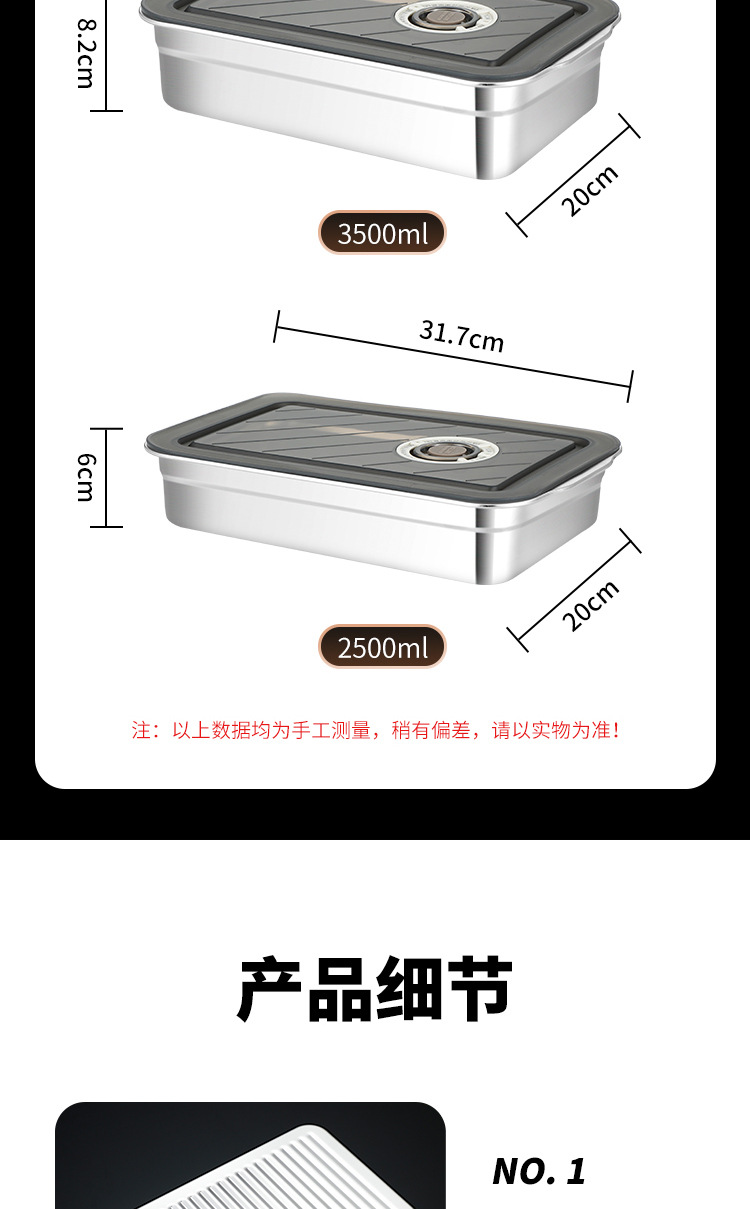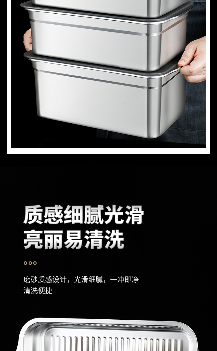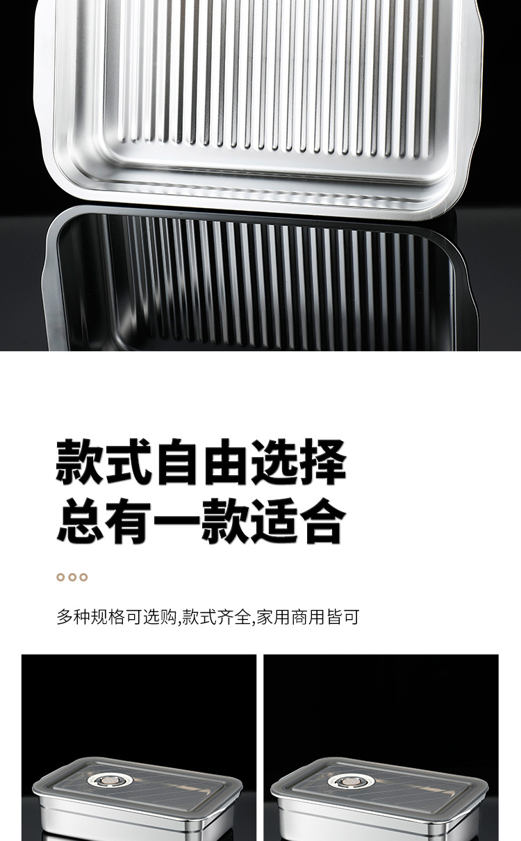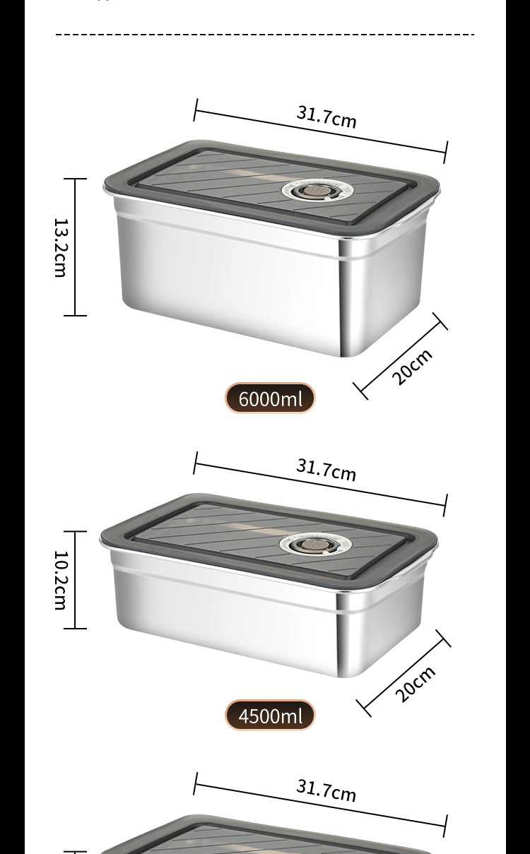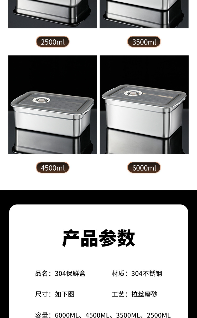 大号304不锈钢保鲜盒密封饭盒食品盒冰箱收纳盒饺子盒便当盒子