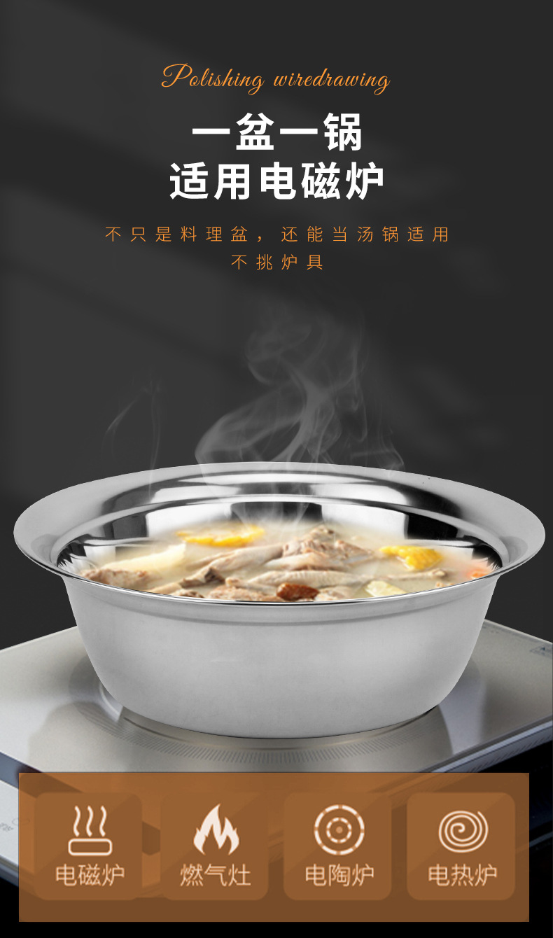 不锈钢汤碗圆盘家用加厚无磁碗碟食堂菜盆汤盆子学生餐碗地摊批发