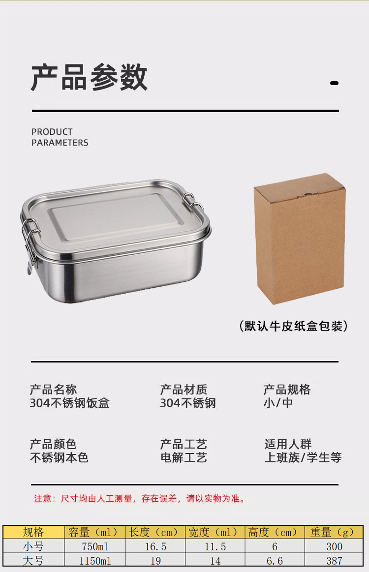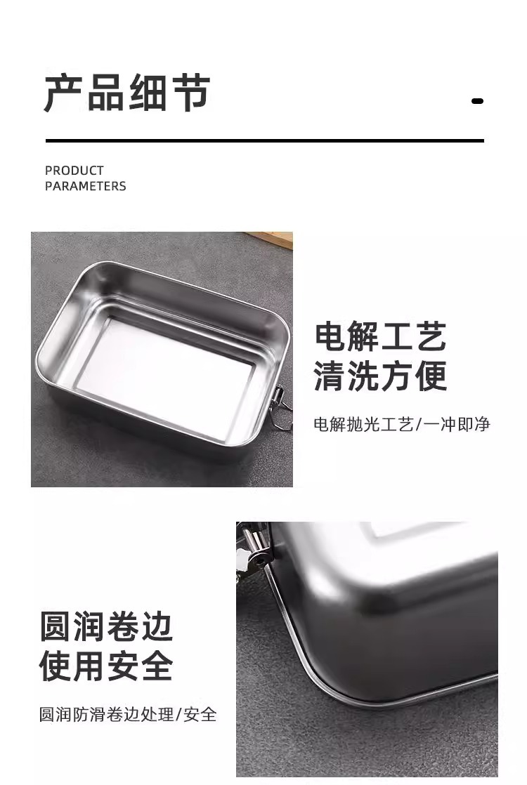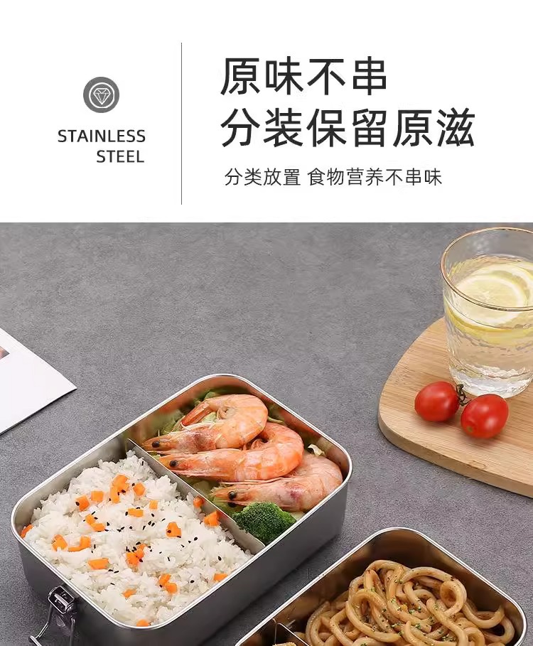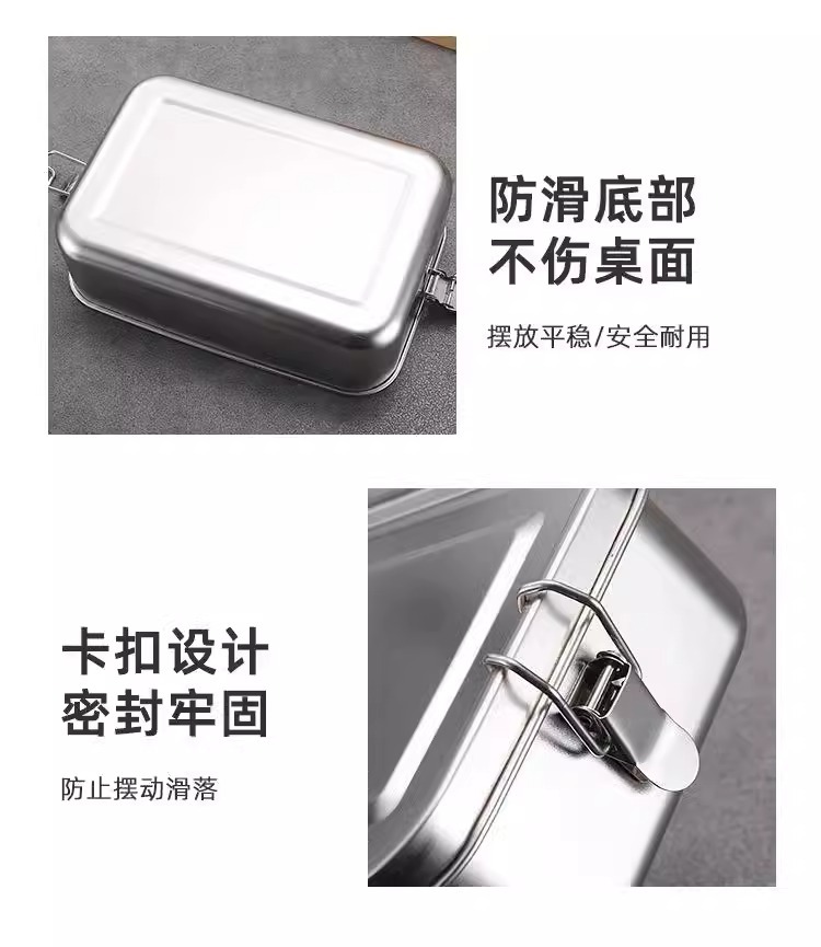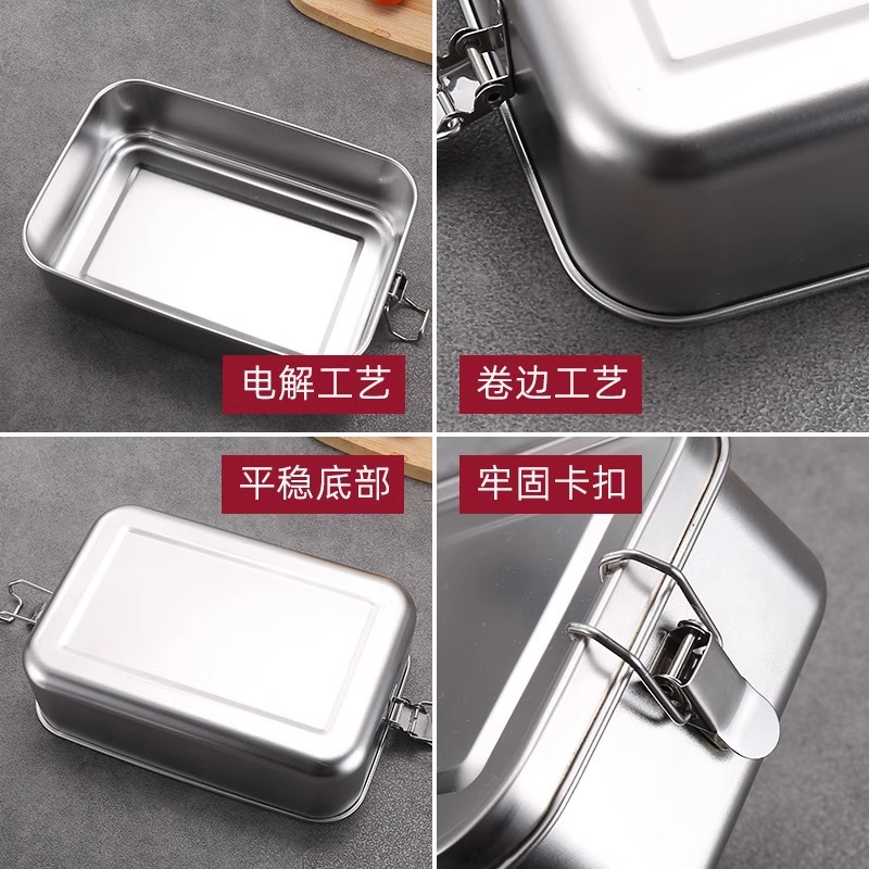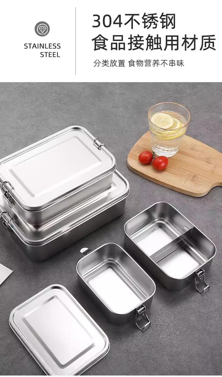 304欧标不锈钢保鲜饭盒便携餐盒方形分格上班带盖密封便当盒跨境