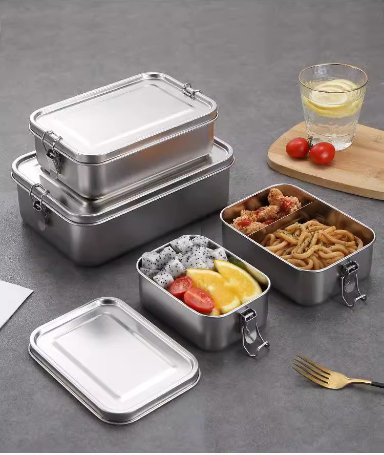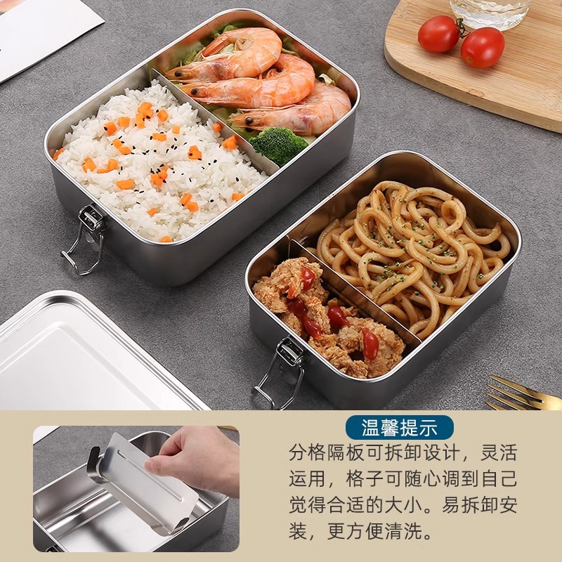 304 european standard stainless steel fresh lunch box portable lunch box square compartment work sealed lunch box with lid cross-border