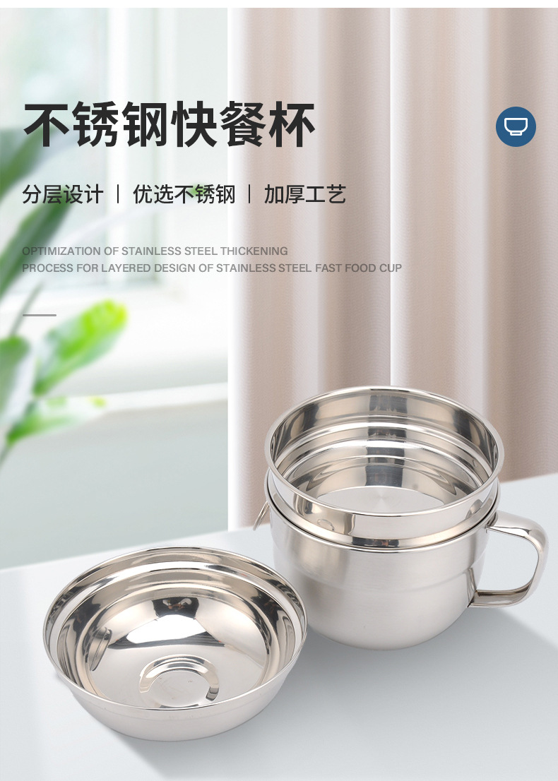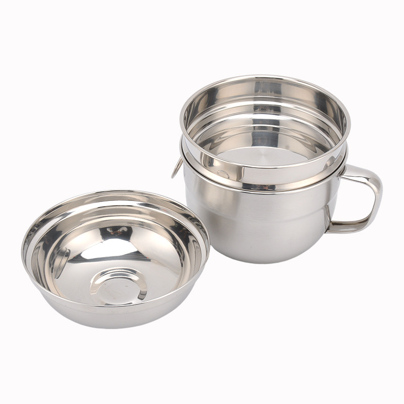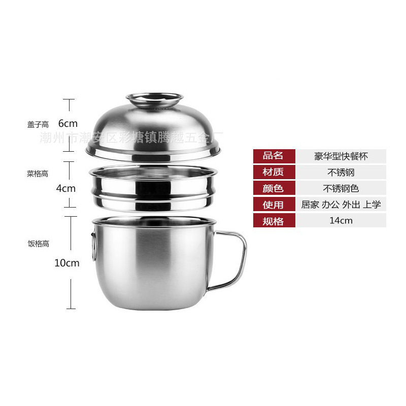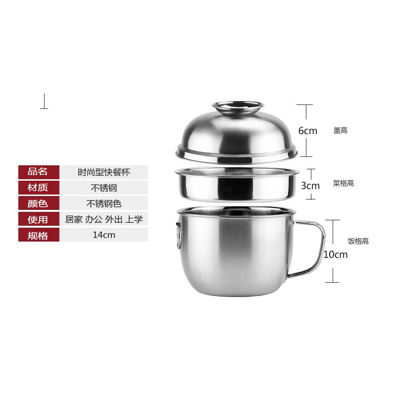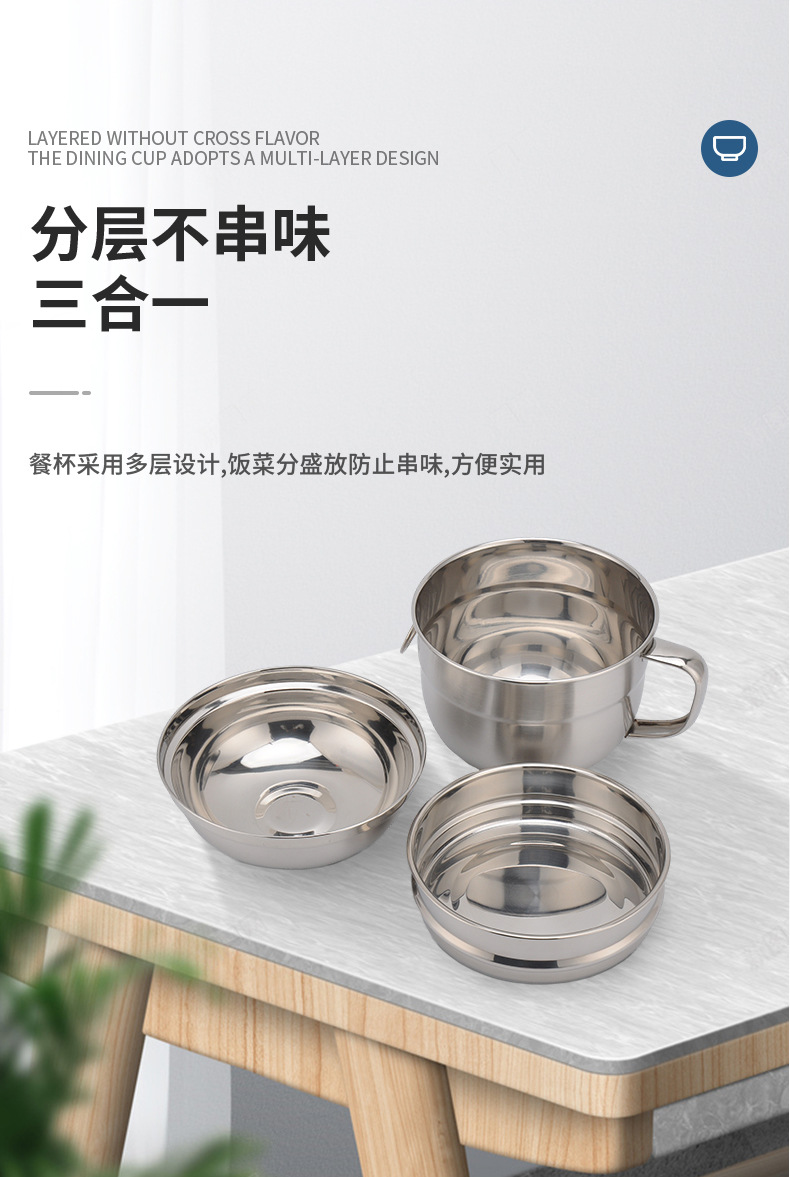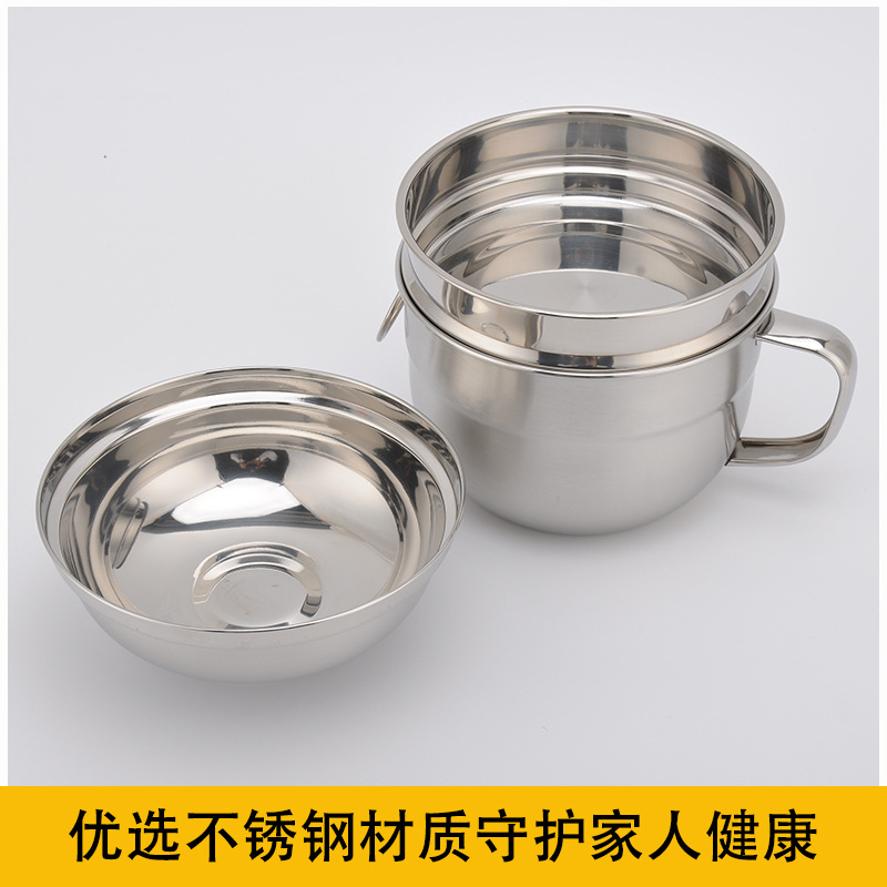 开学季双层不锈钢快餐杯食品级圆形带盖饭缸三件套电磁炉工地食堂