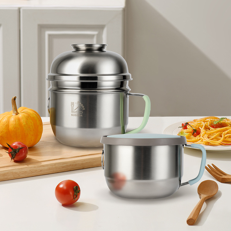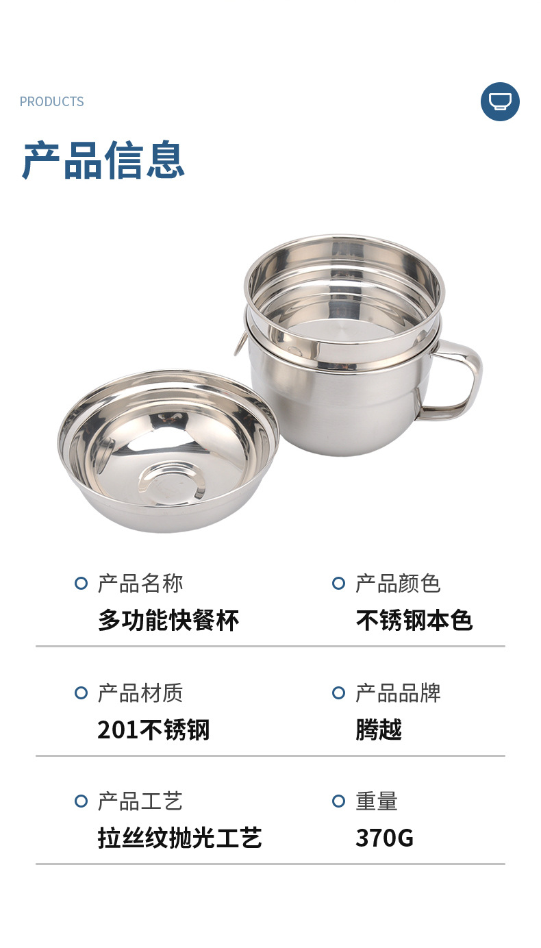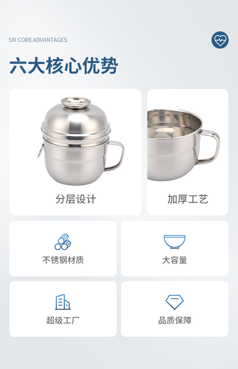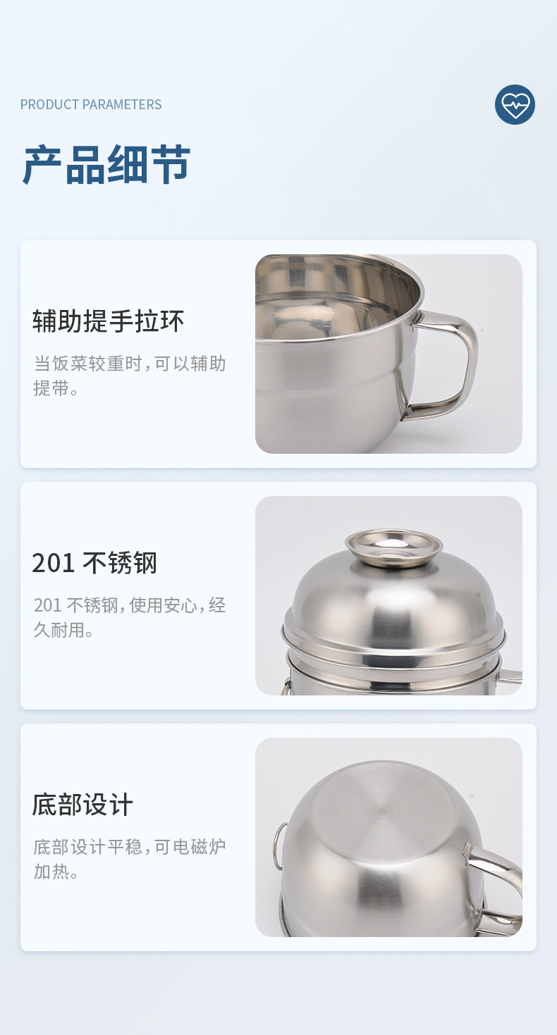 开学季双层不锈钢快餐杯食品级圆形带盖饭缸三件套电磁炉工地食堂