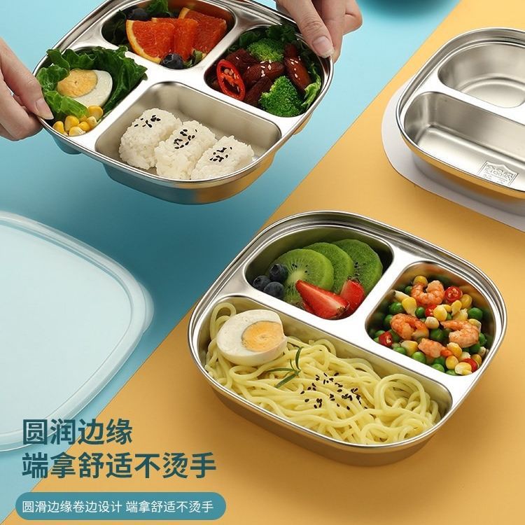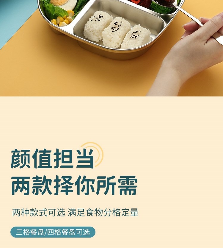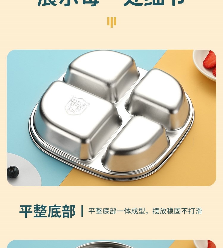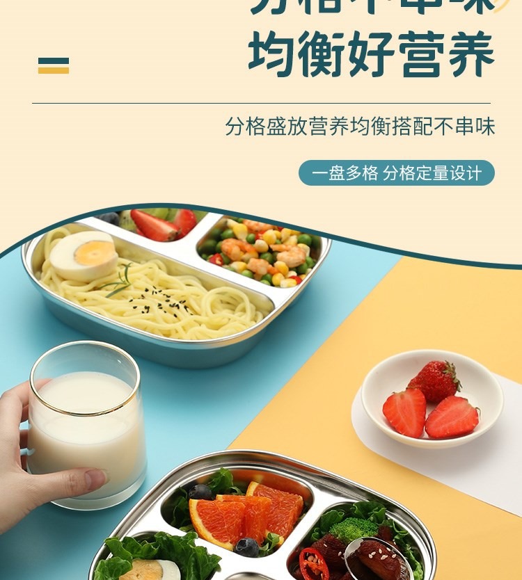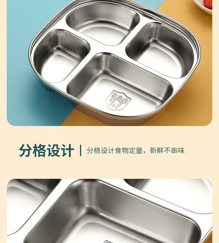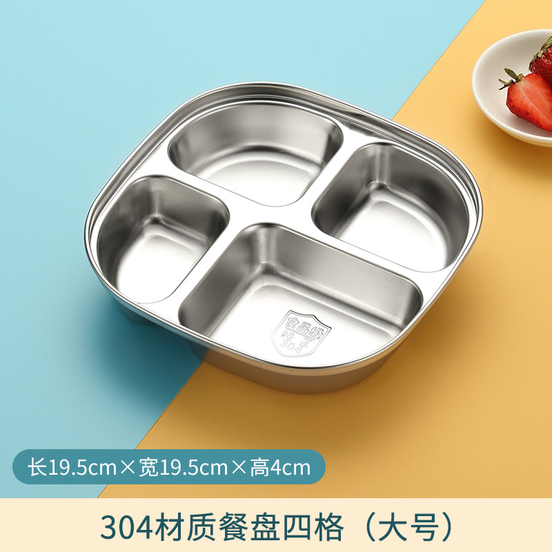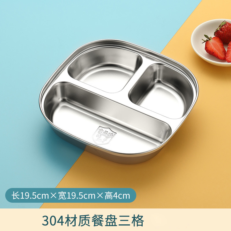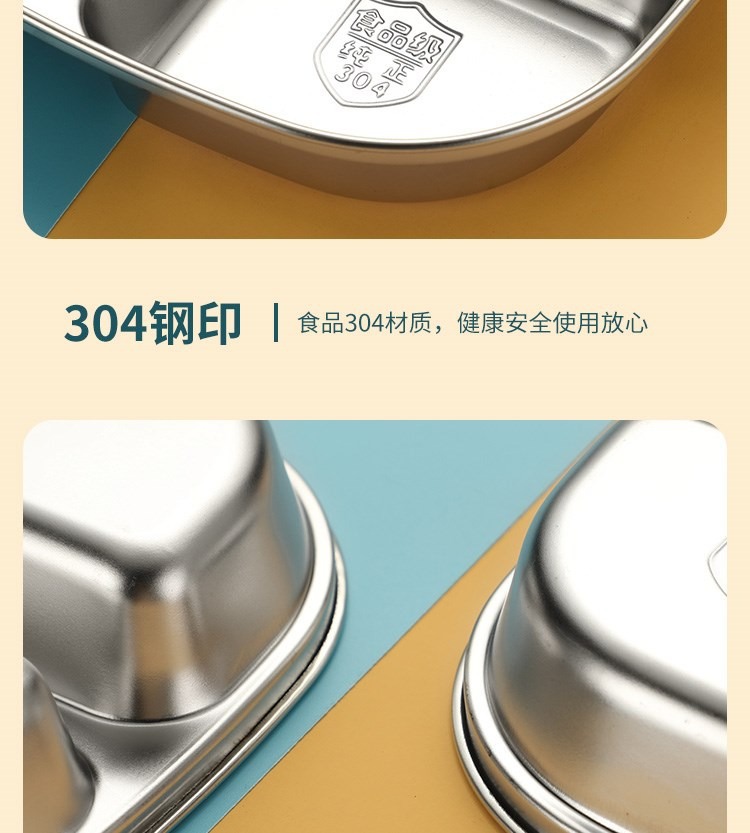 304不锈钢盘分格餐盘儿童幼儿园托盘食堂餐厅方形辅食盘子打餐盘