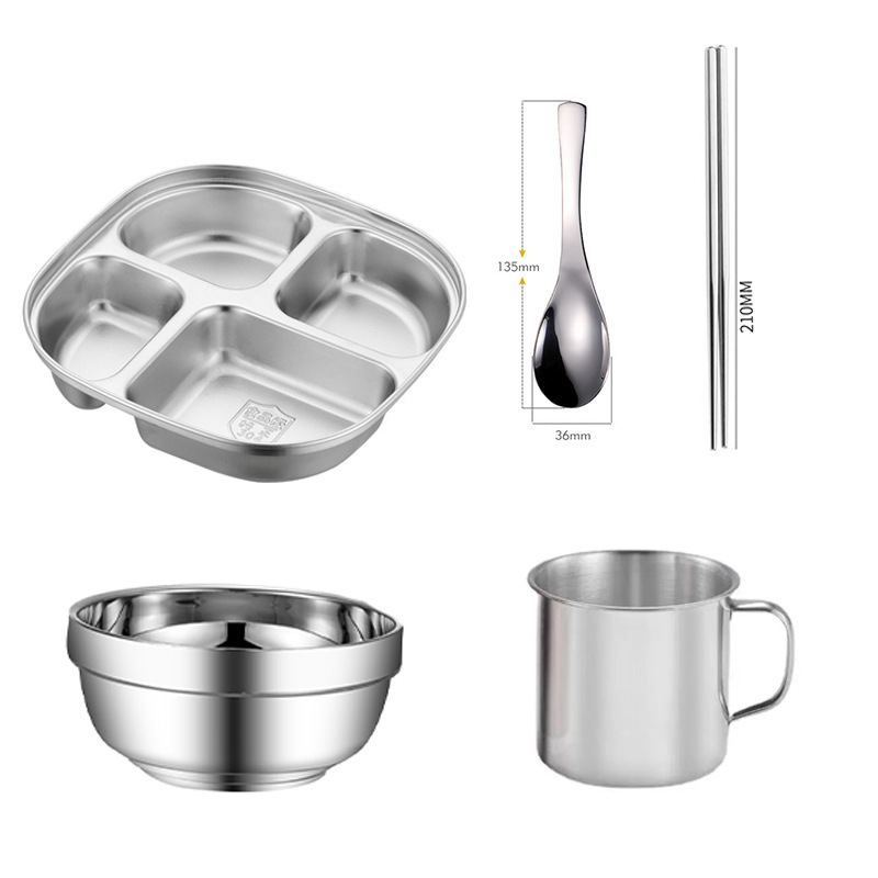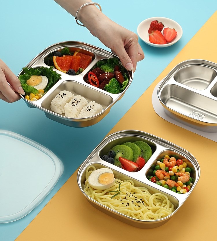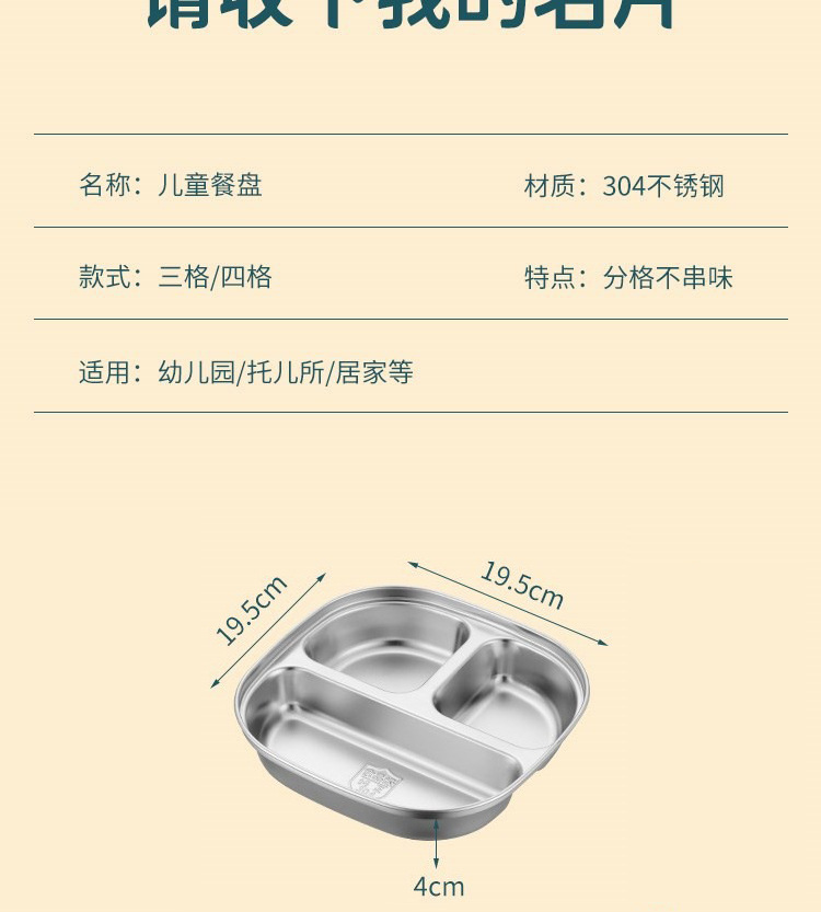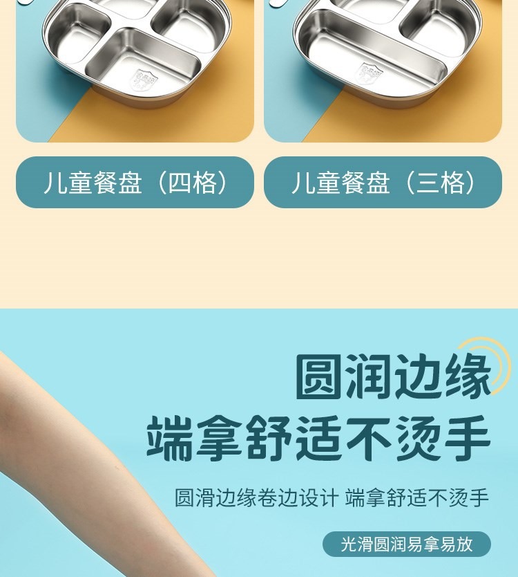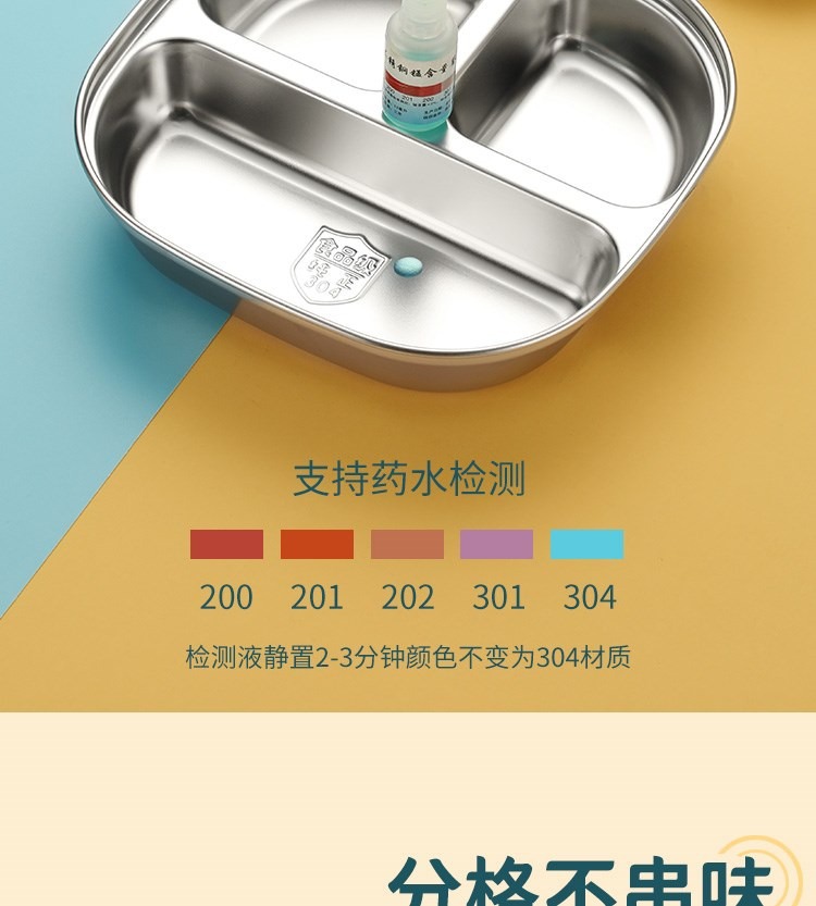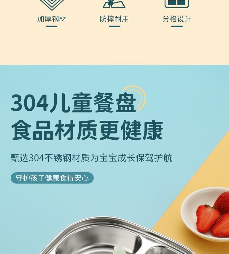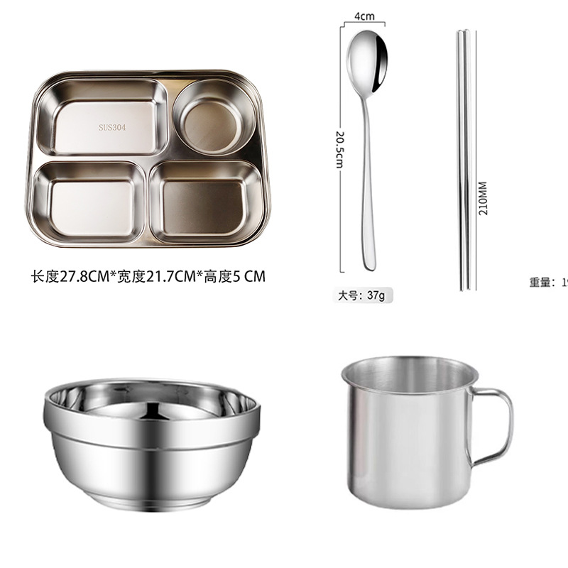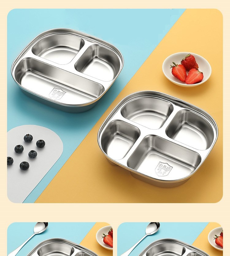 304不锈钢盘分格餐盘儿童幼儿园托盘食堂餐厅方形辅食盘子打餐盘