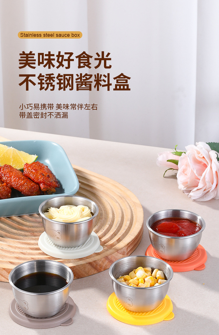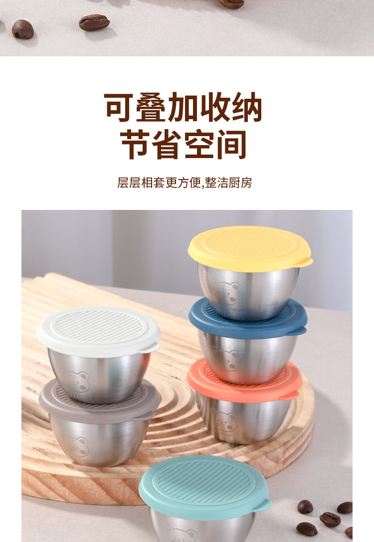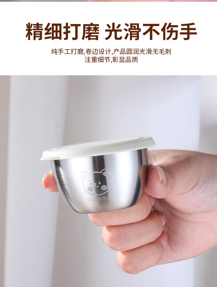 304不锈钢酱料碗迷你儿童碗带盖吃饭碗宝宝备菜汤碗餐具水果碗