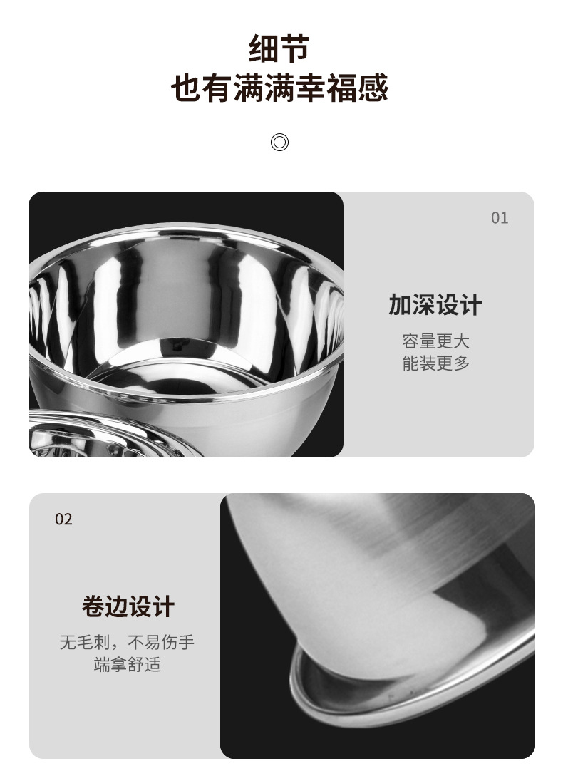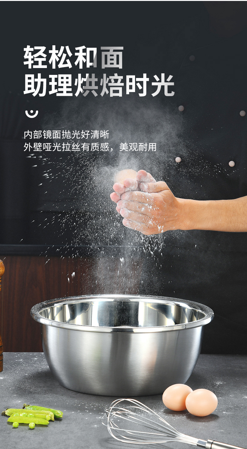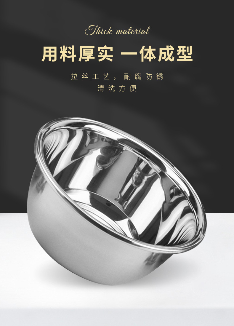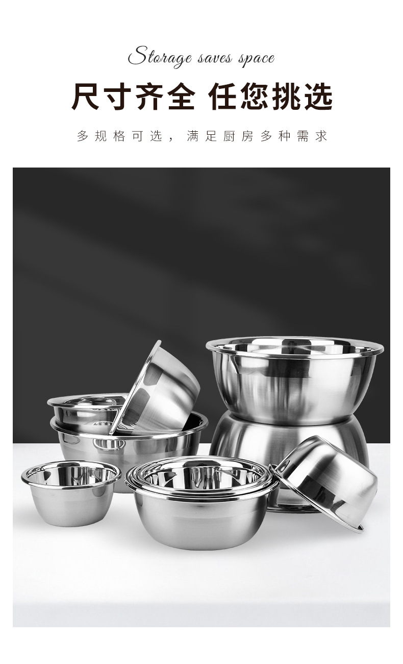 严选百货不锈钢盆厨房家用料理盆加厚调料缸打蛋和面盆汤盆洗菜盆
