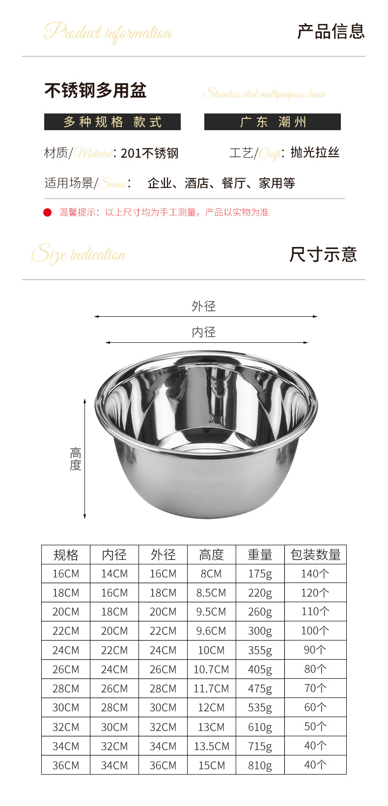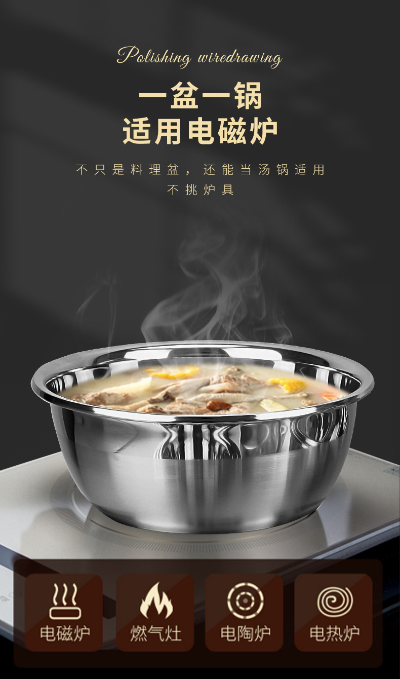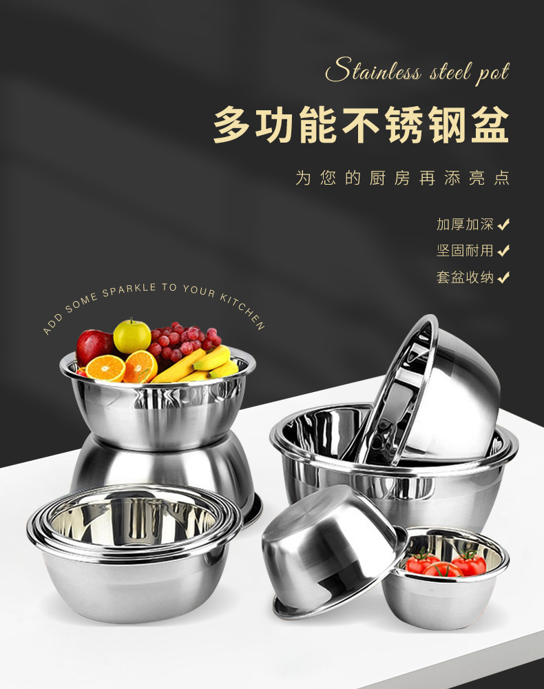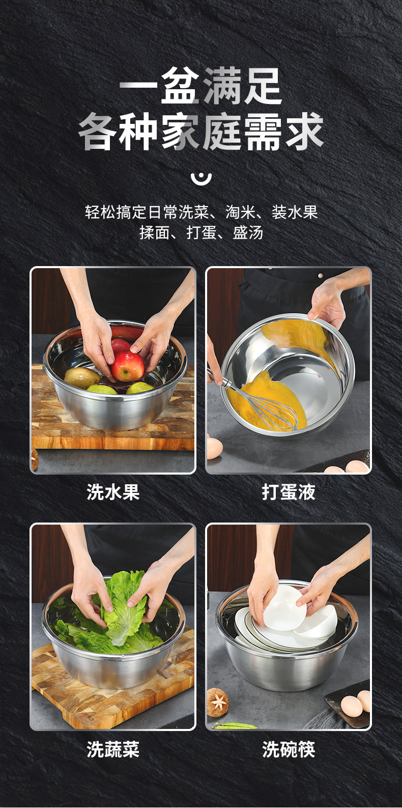 严选百货不锈钢盆厨房家用料理盆加厚调料缸打蛋和面盆汤盆洗菜盆