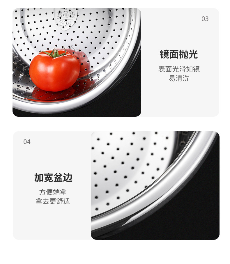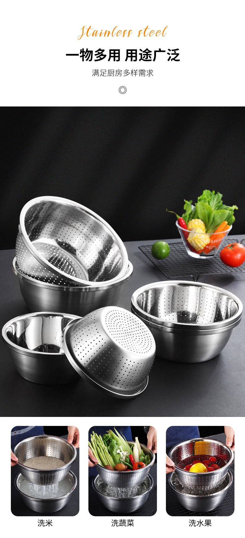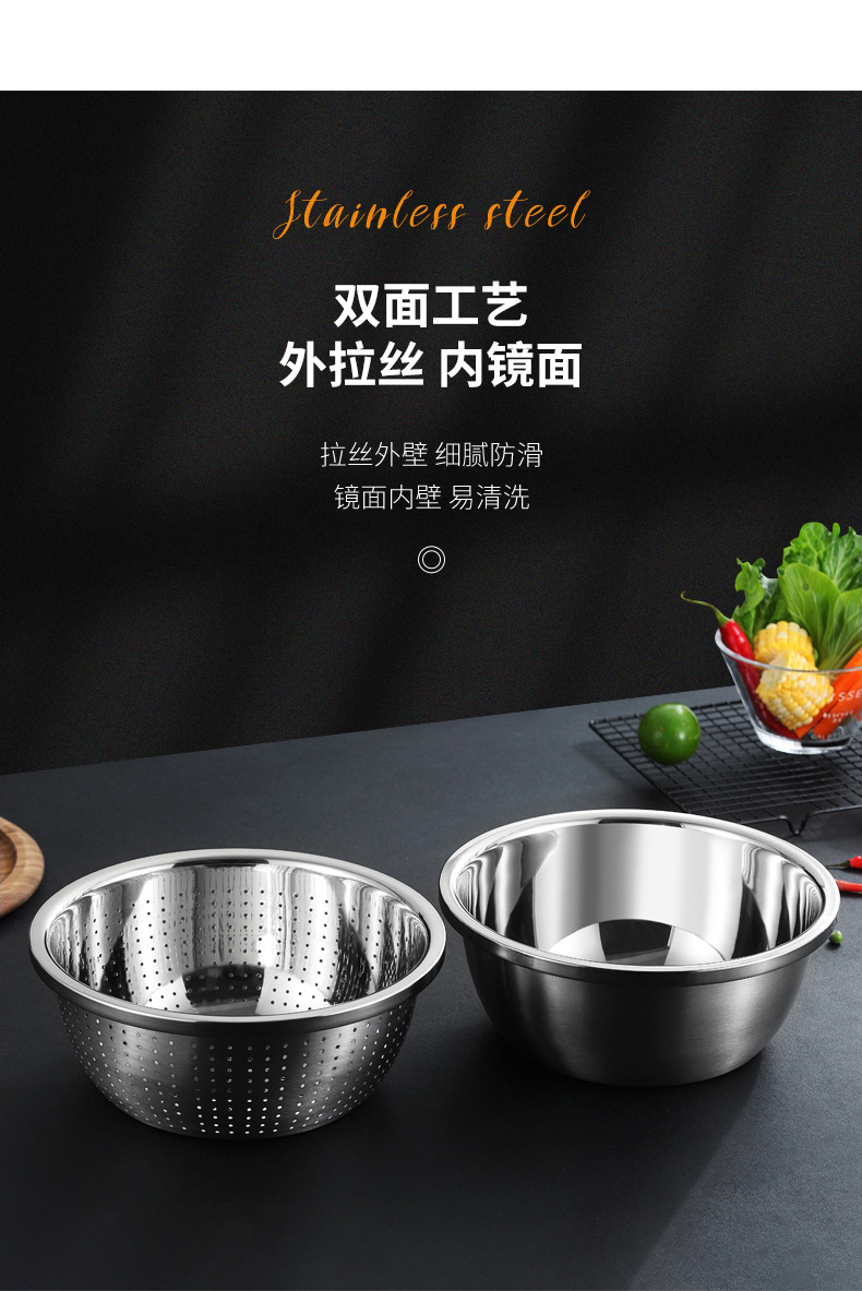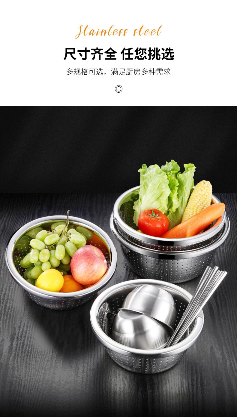 严选百货沥水篮304不锈钢盆激光烘焙不锈钢漏盆洗菜篮和面打蛋盆