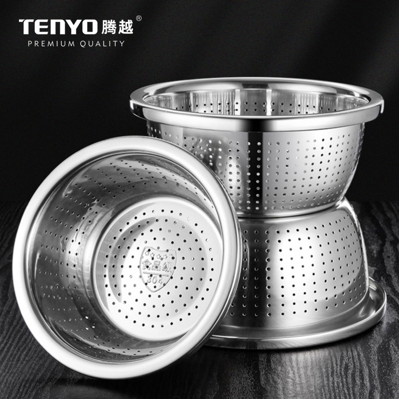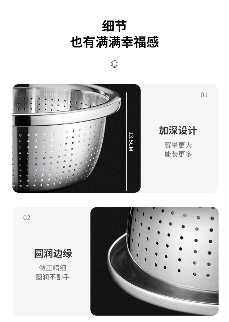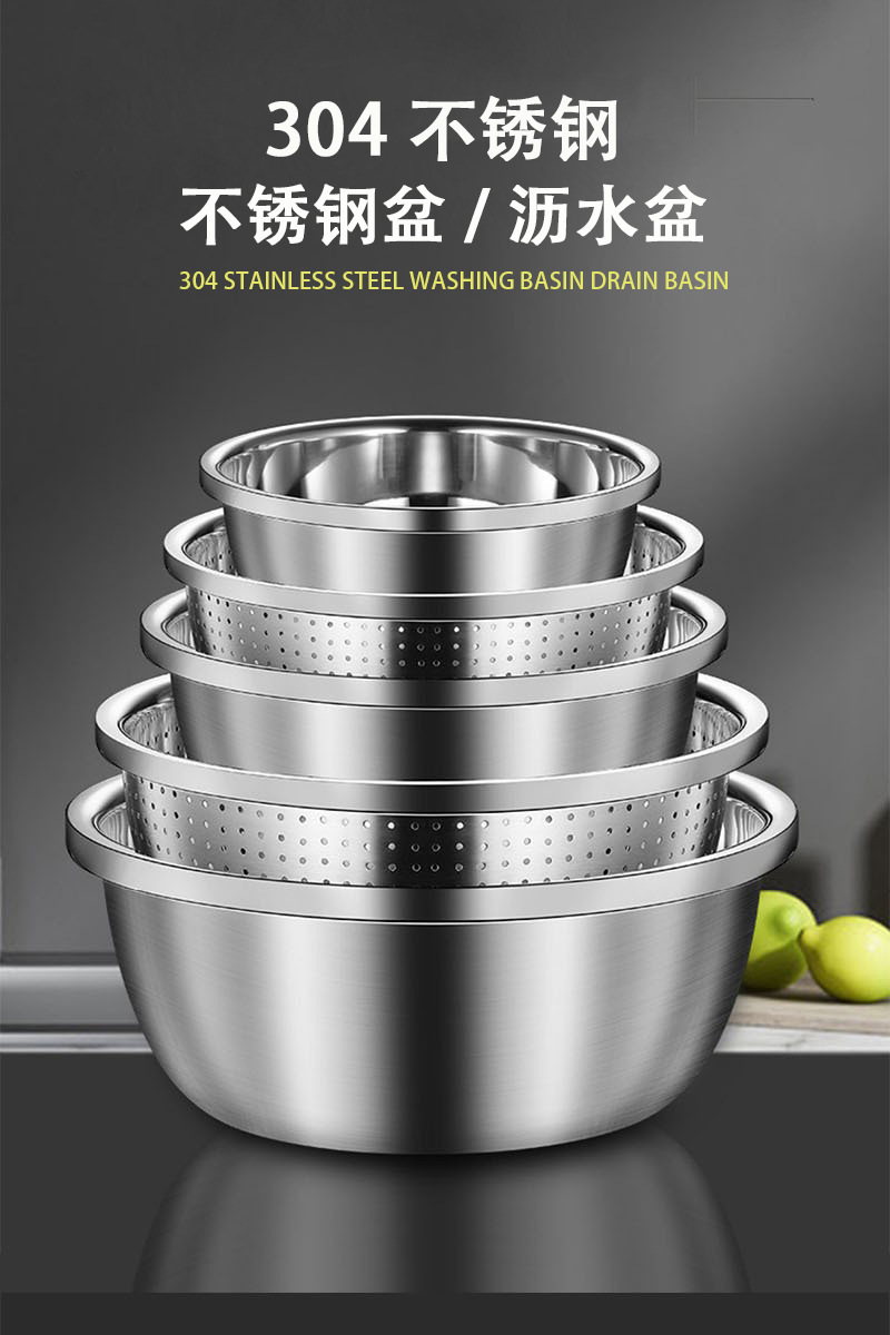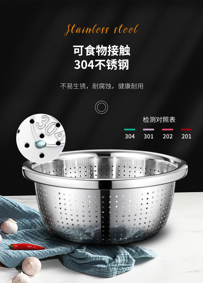 严选百货沥水篮304不锈钢盆激光烘焙不锈钢漏盆洗菜篮和面打蛋盆