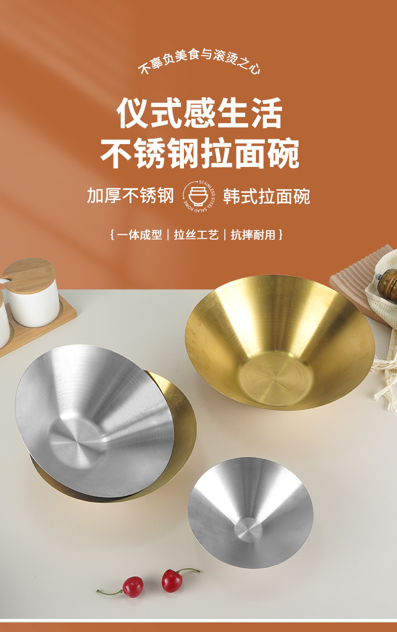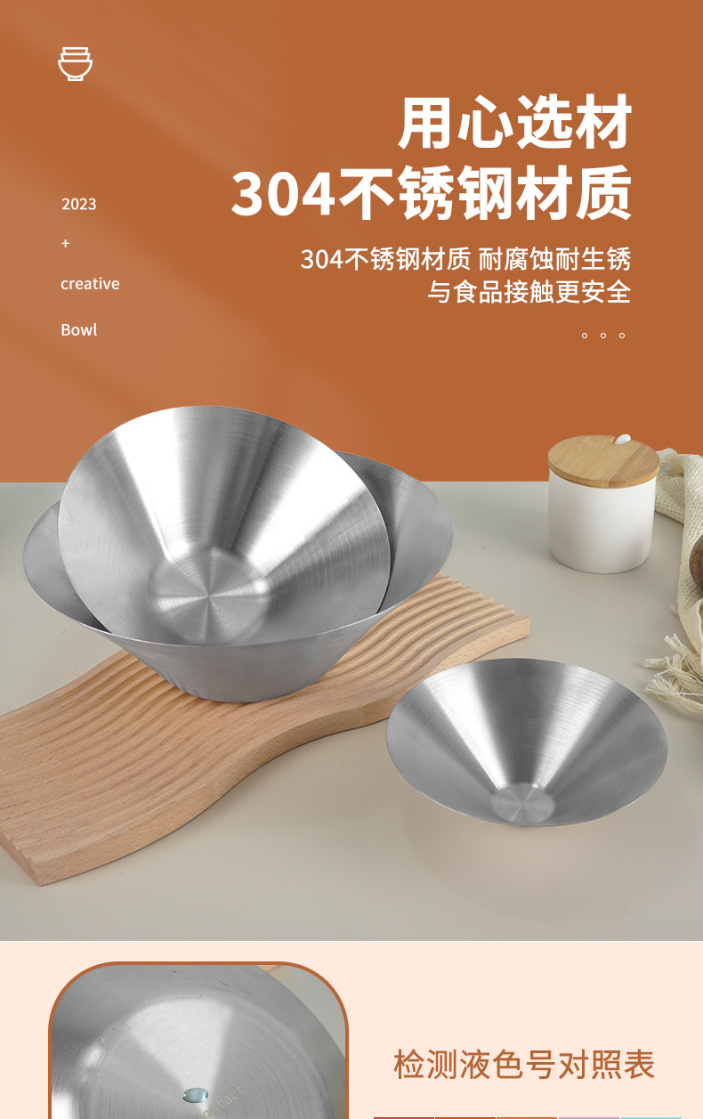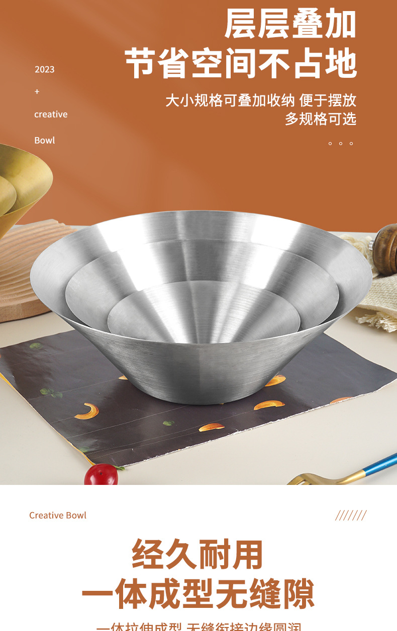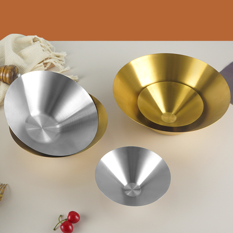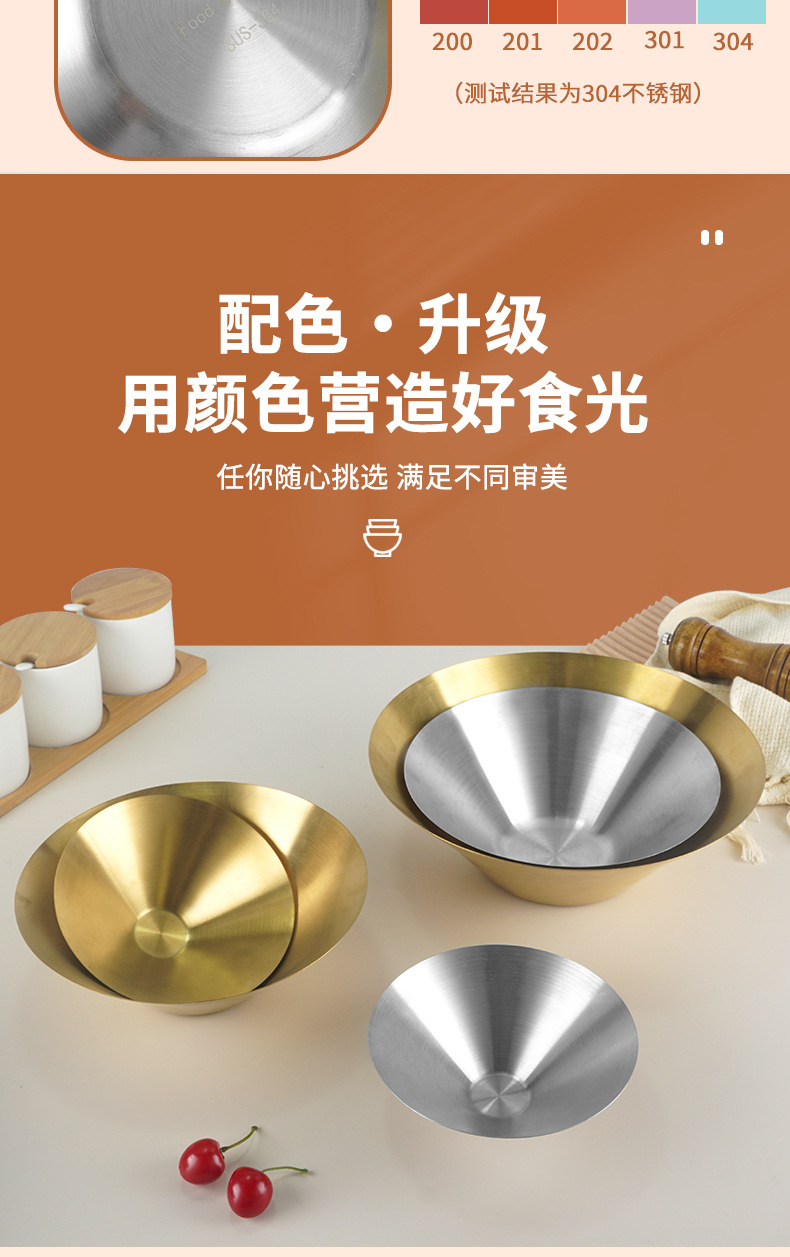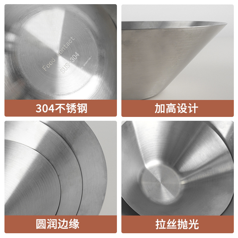 韩式304不锈钢锥形碗商用沙拉碗汤碗大容量拌饭碗单层v型碗凉拌碗