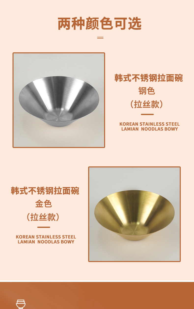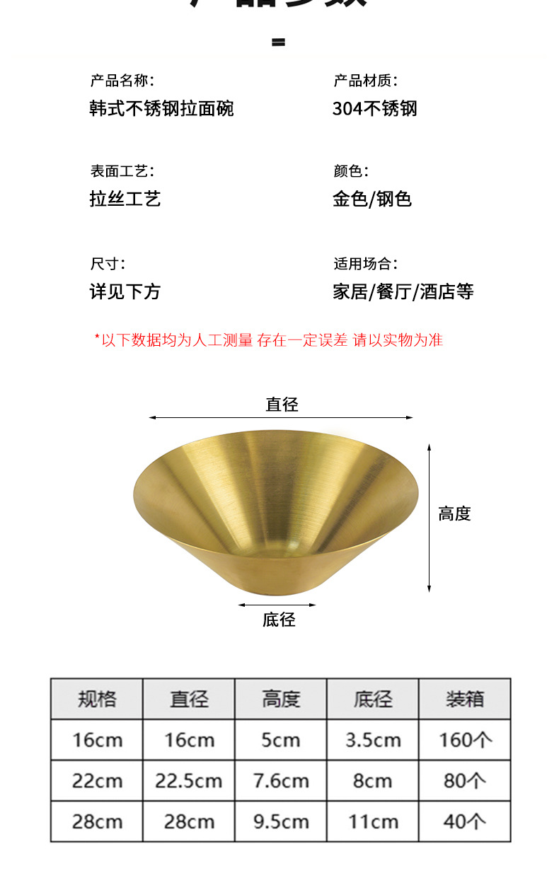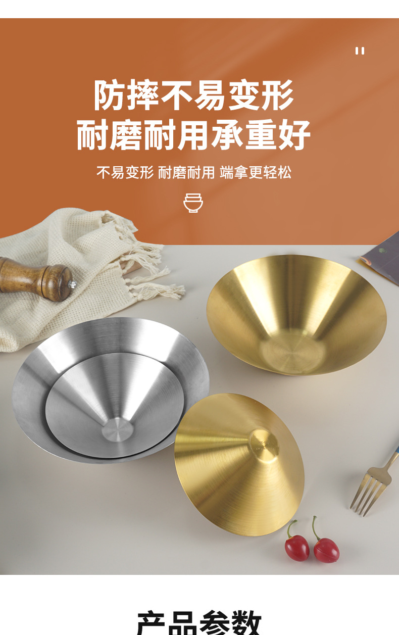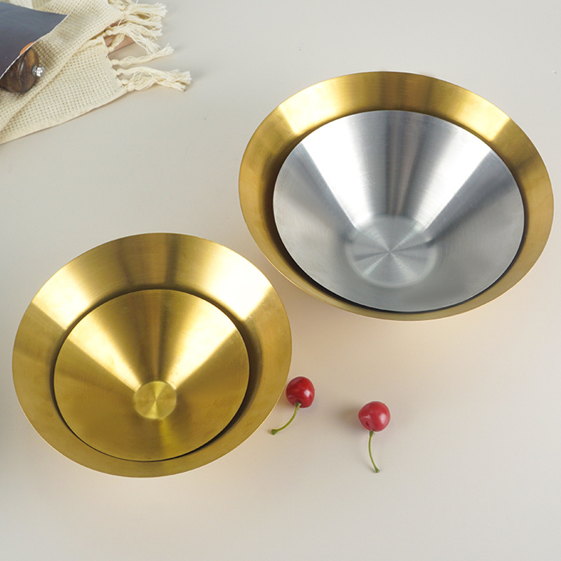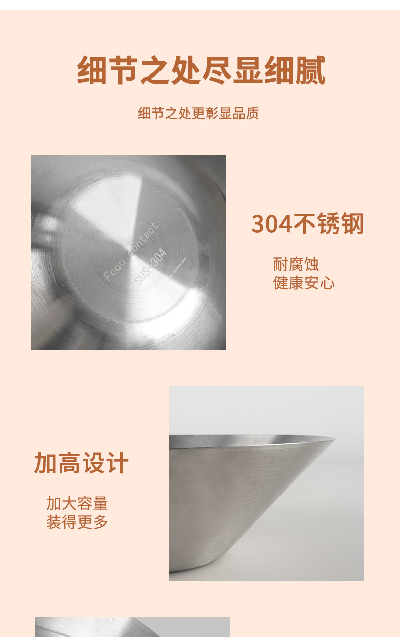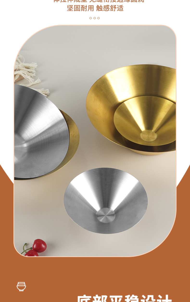 韩式304不锈钢锥形碗商用沙拉碗汤碗大容量拌饭碗单层v型碗凉拌碗