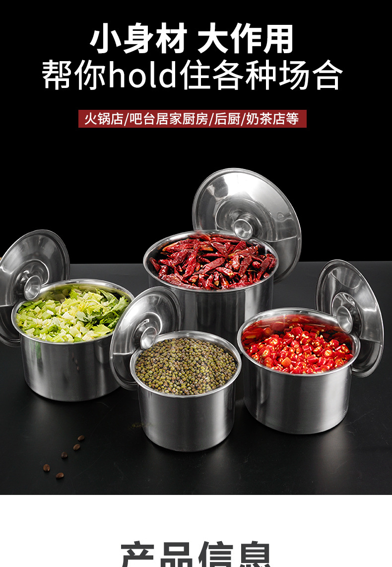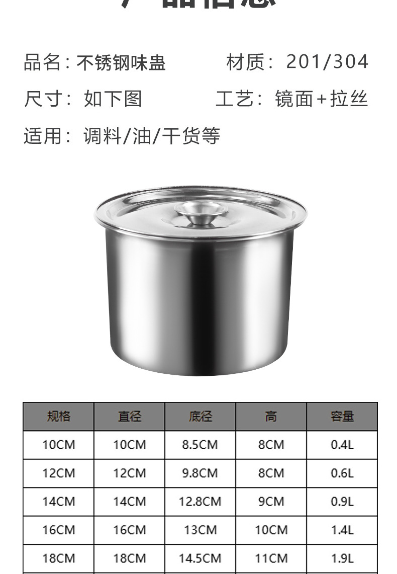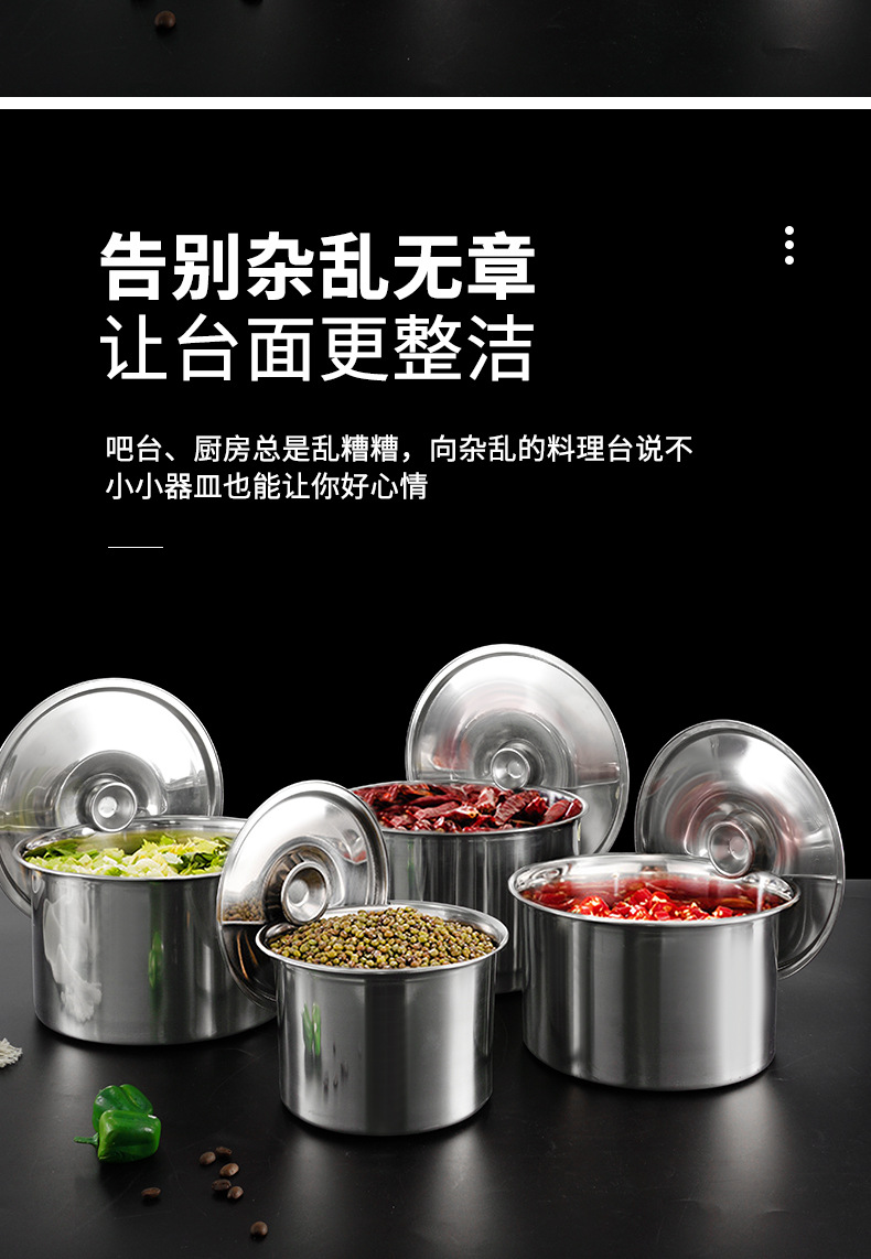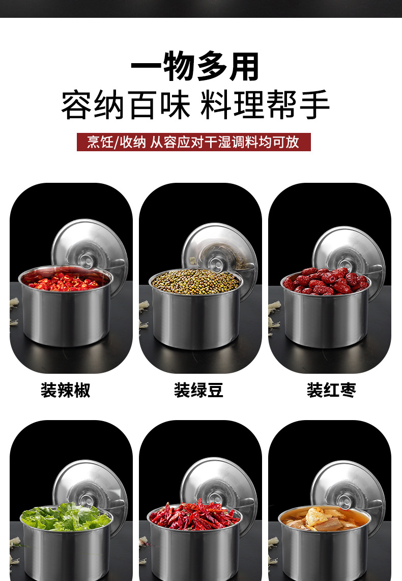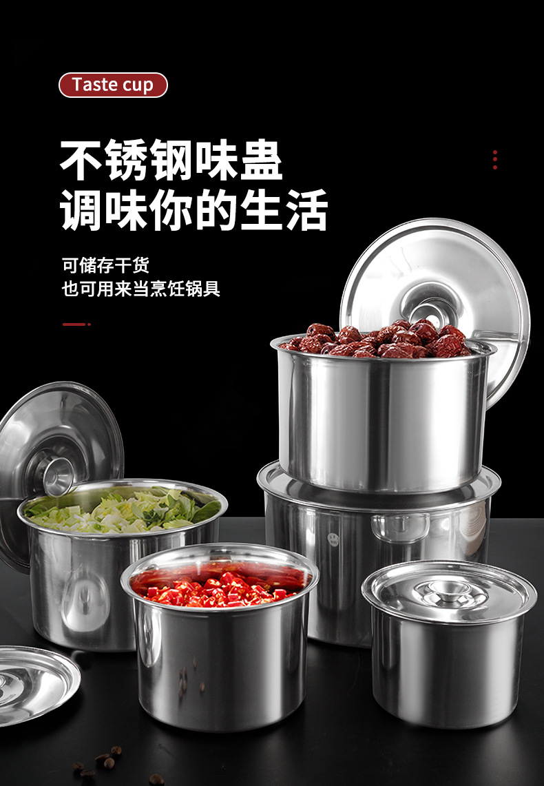 304不锈钢味蛊 无磁带盖调料缸炖汤蛊猪油罐油缸商用圆形调料盆