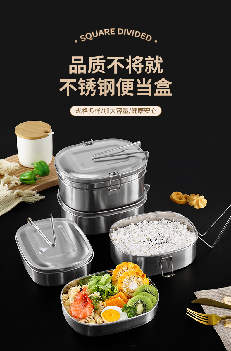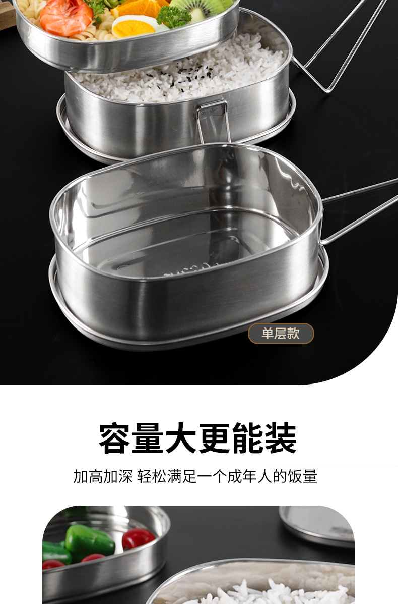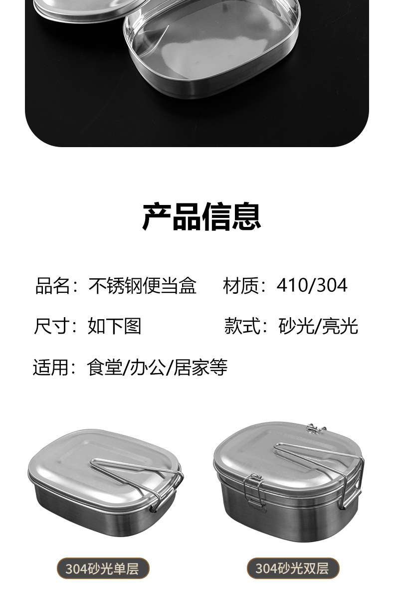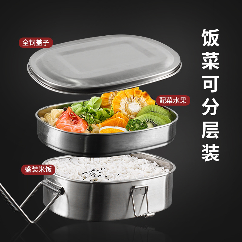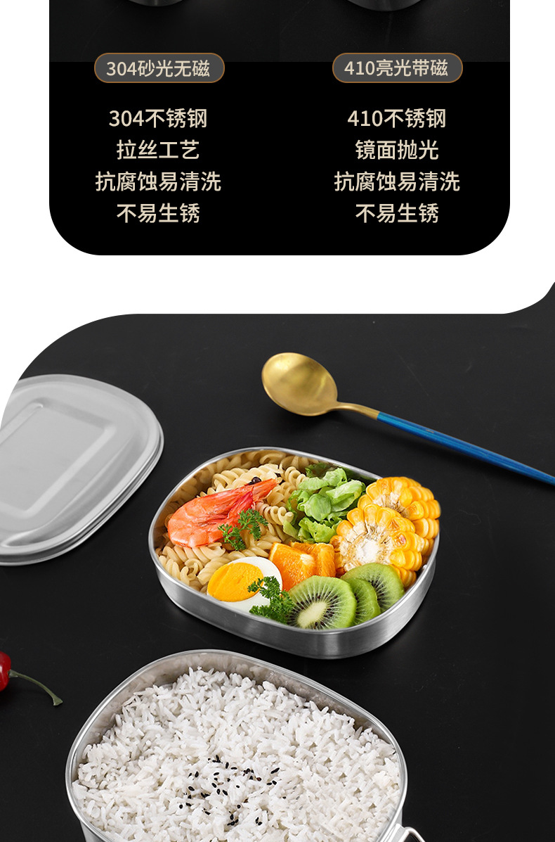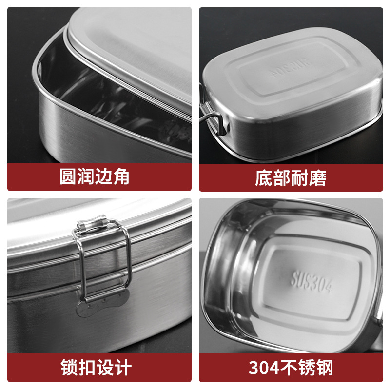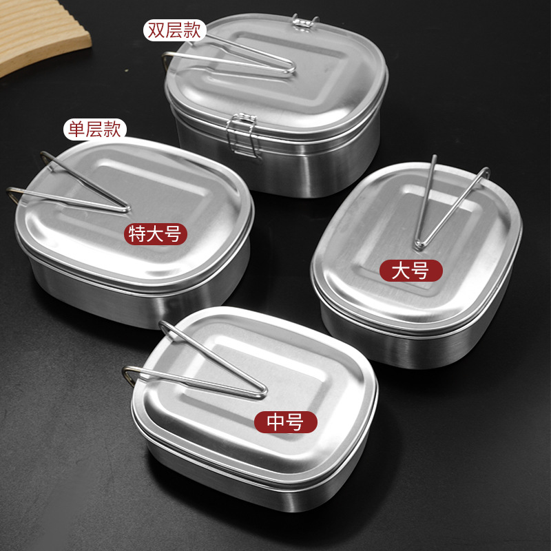 304不锈钢饭盒 老式铁饭缸单双层便当盒长方形食品级带盖密封餐盒