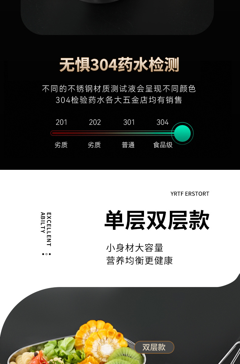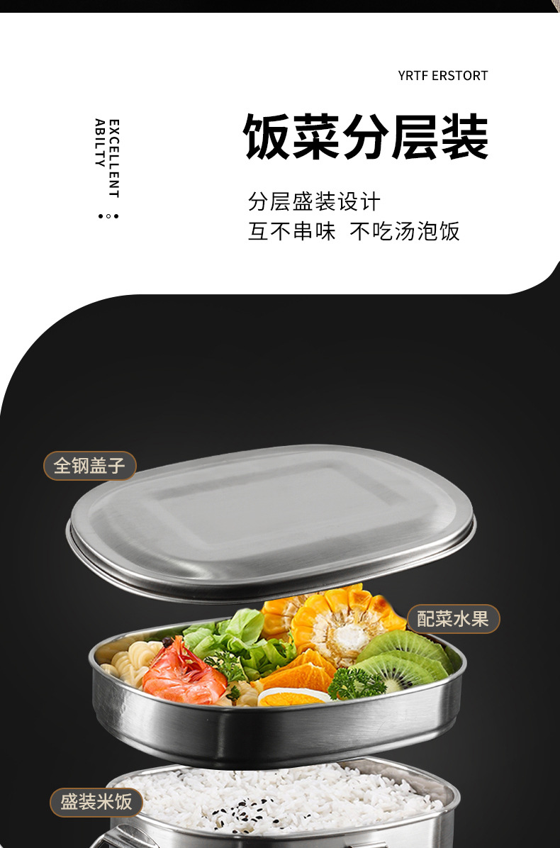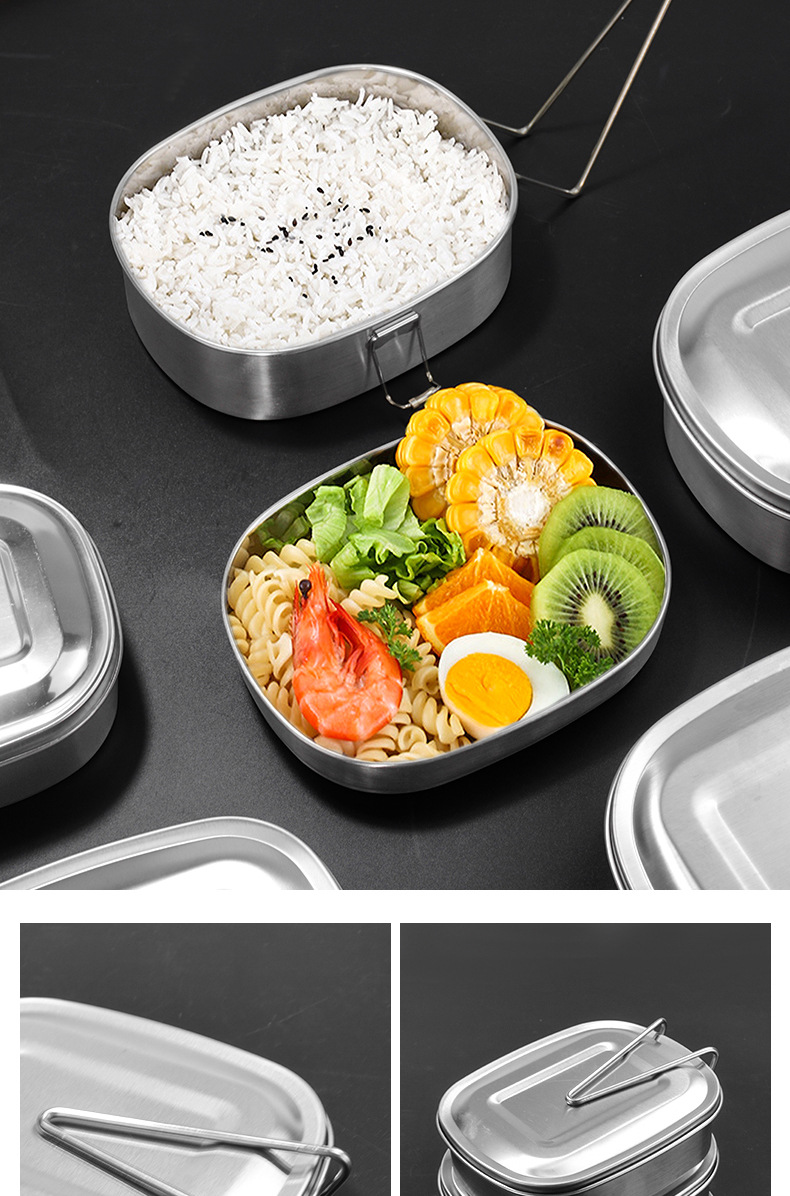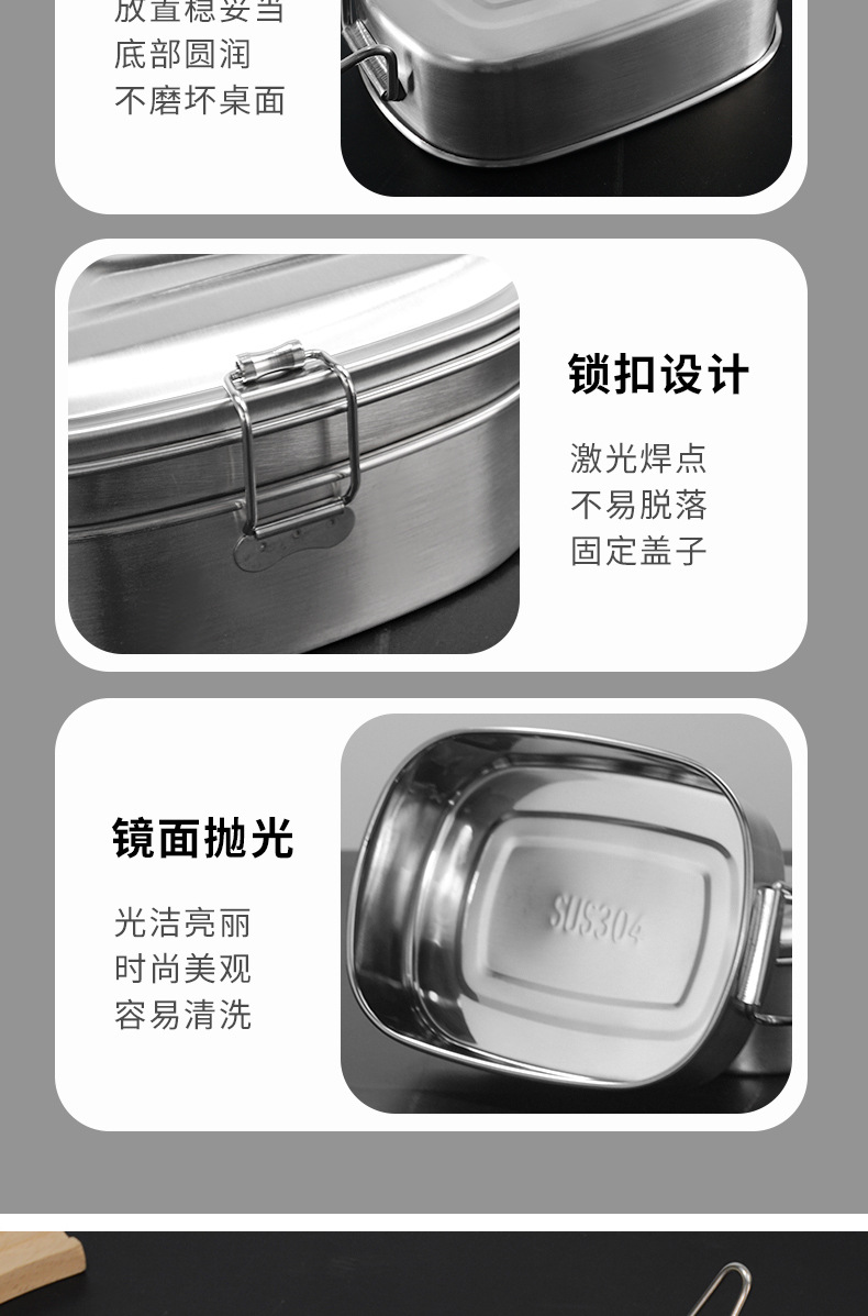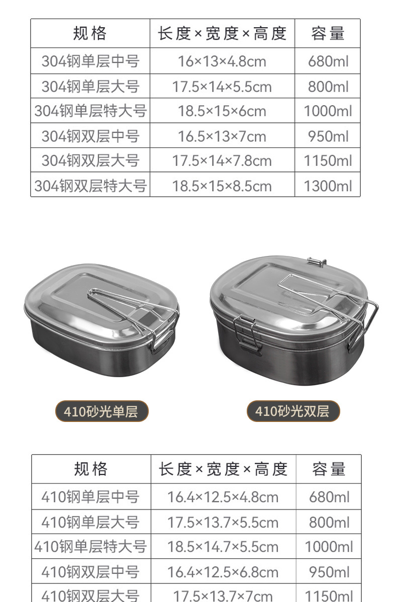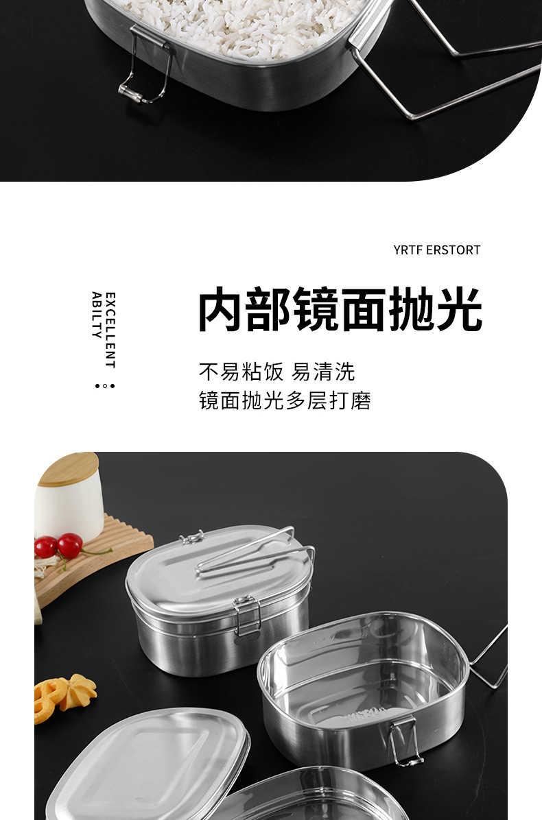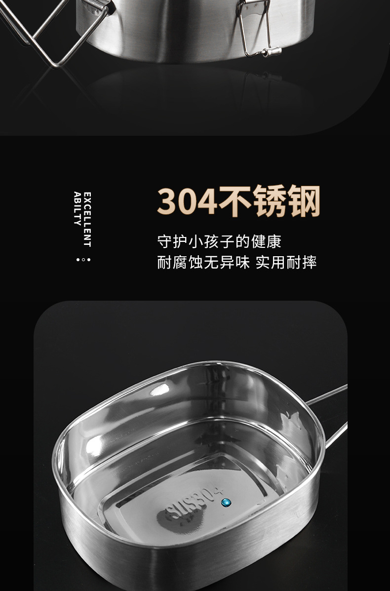 304不锈钢饭盒 老式铁饭缸单双层便当盒长方形食品级带盖密封餐盒