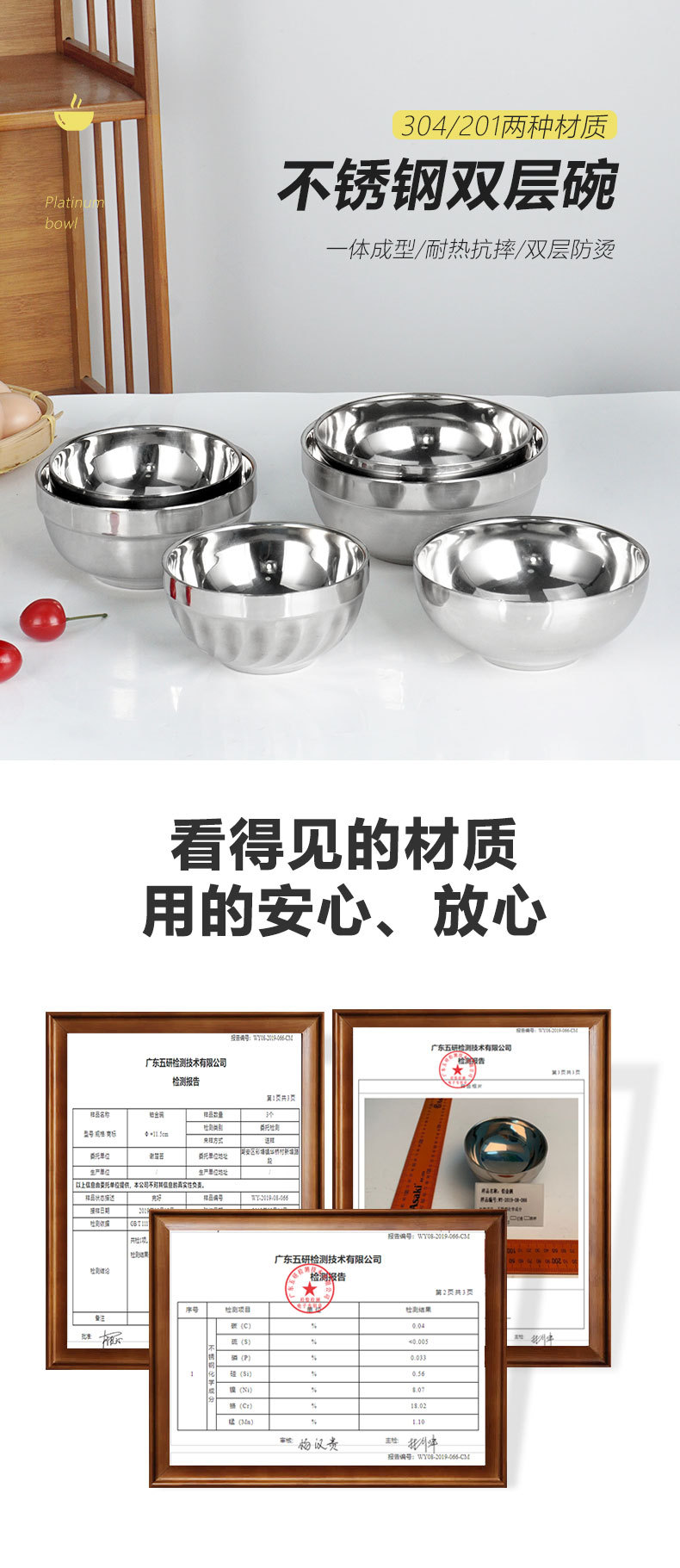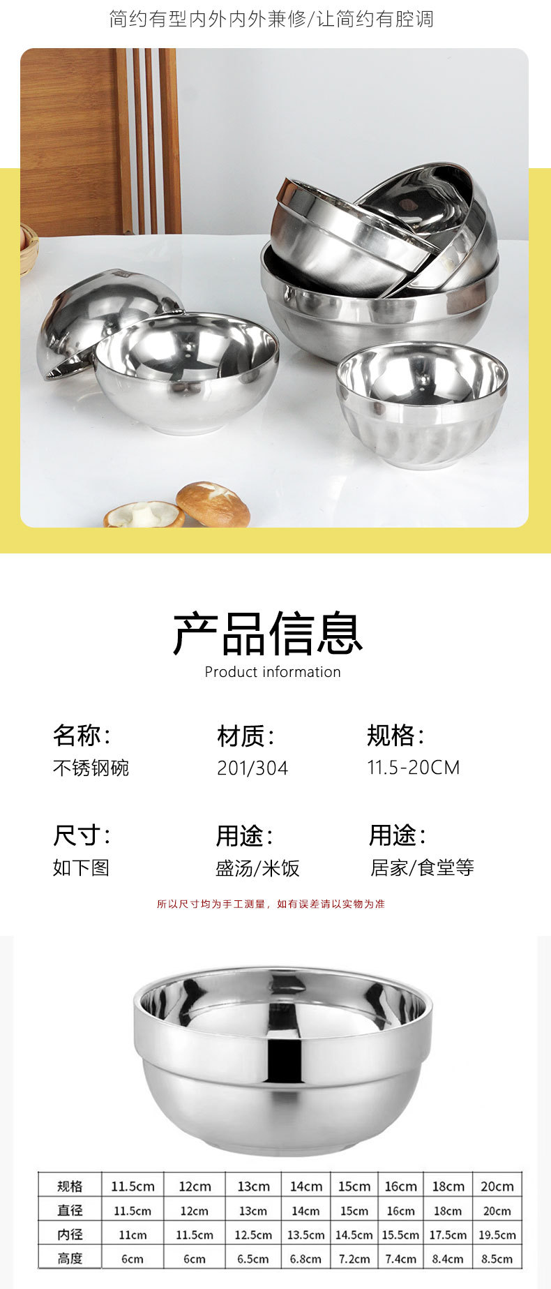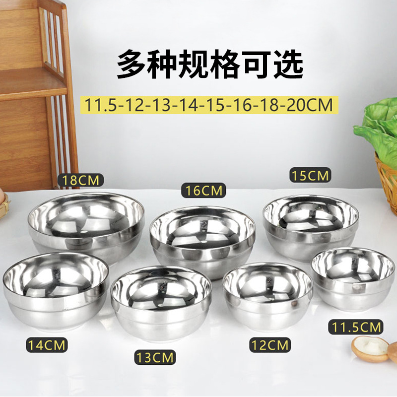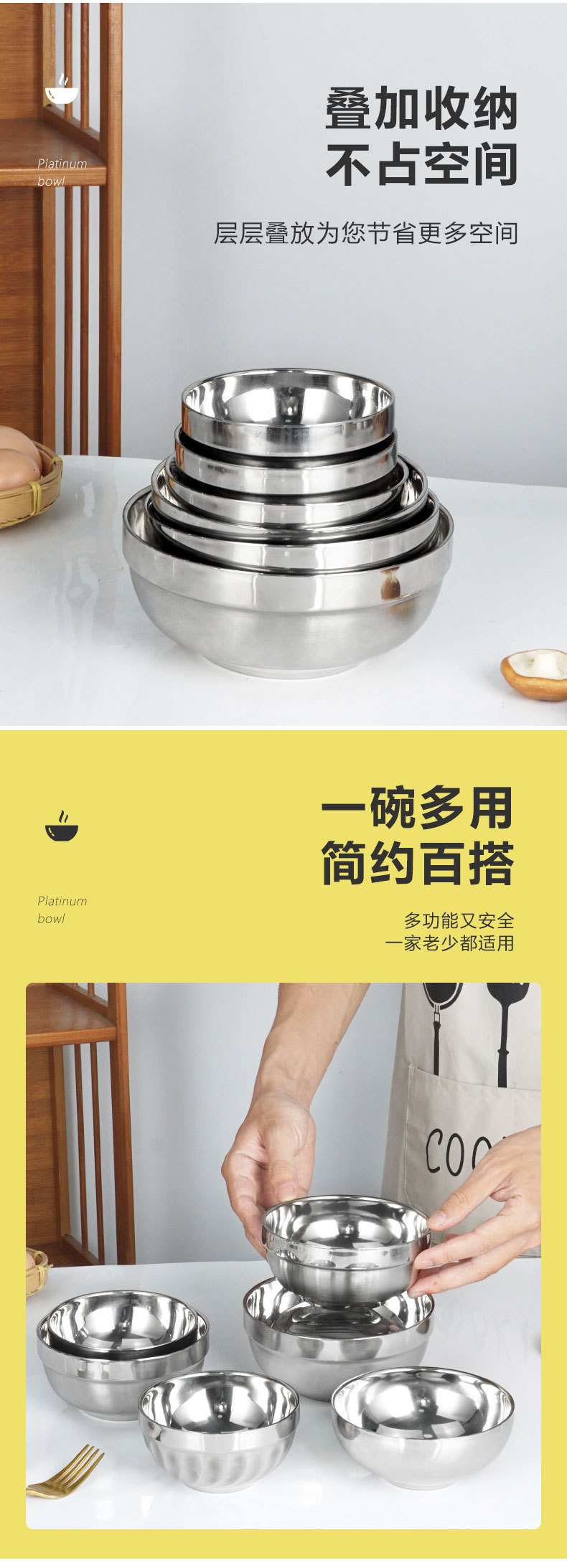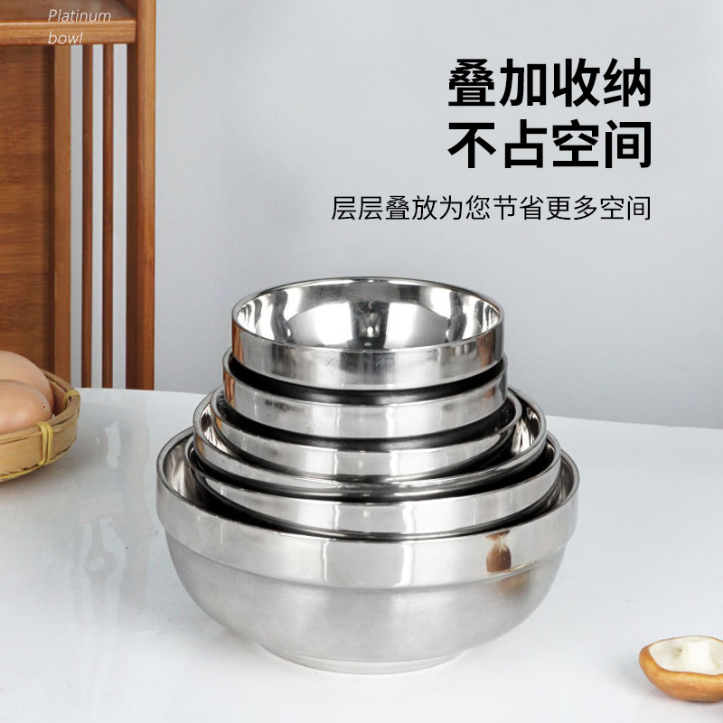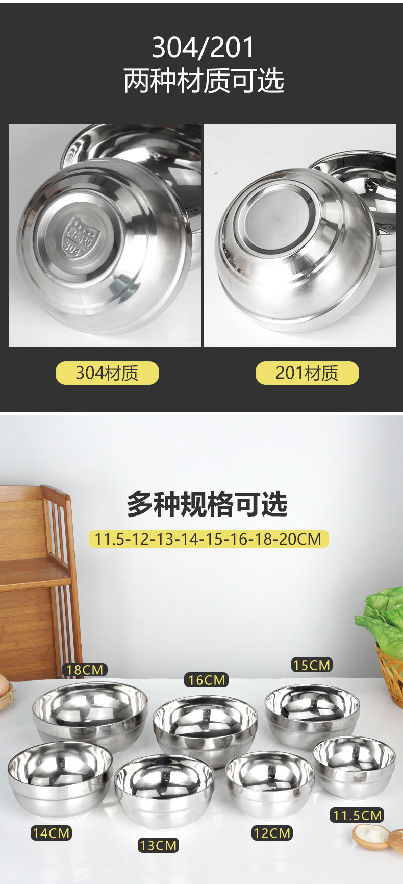 304不锈钢铂金碗 学校食堂汤碗双层隔热儿童饭碗家用泡面碗亮光碗