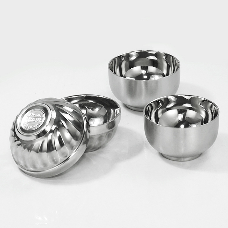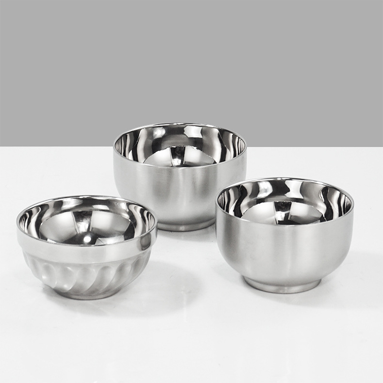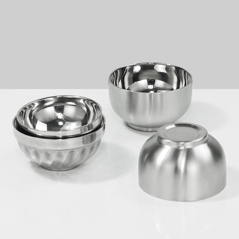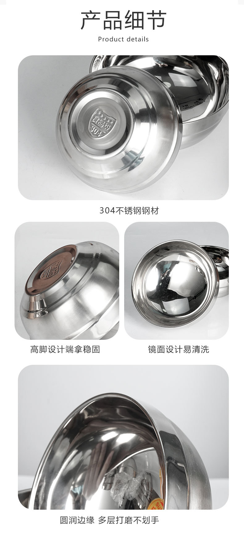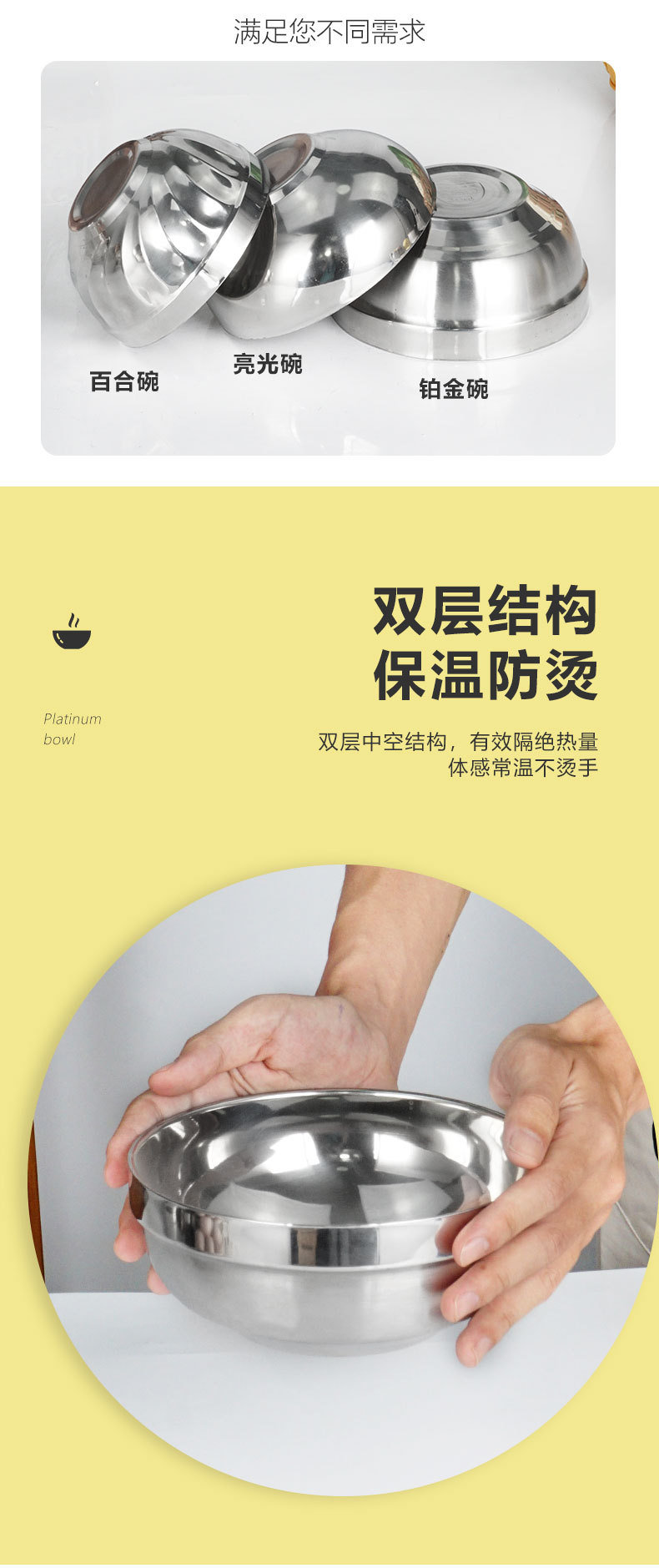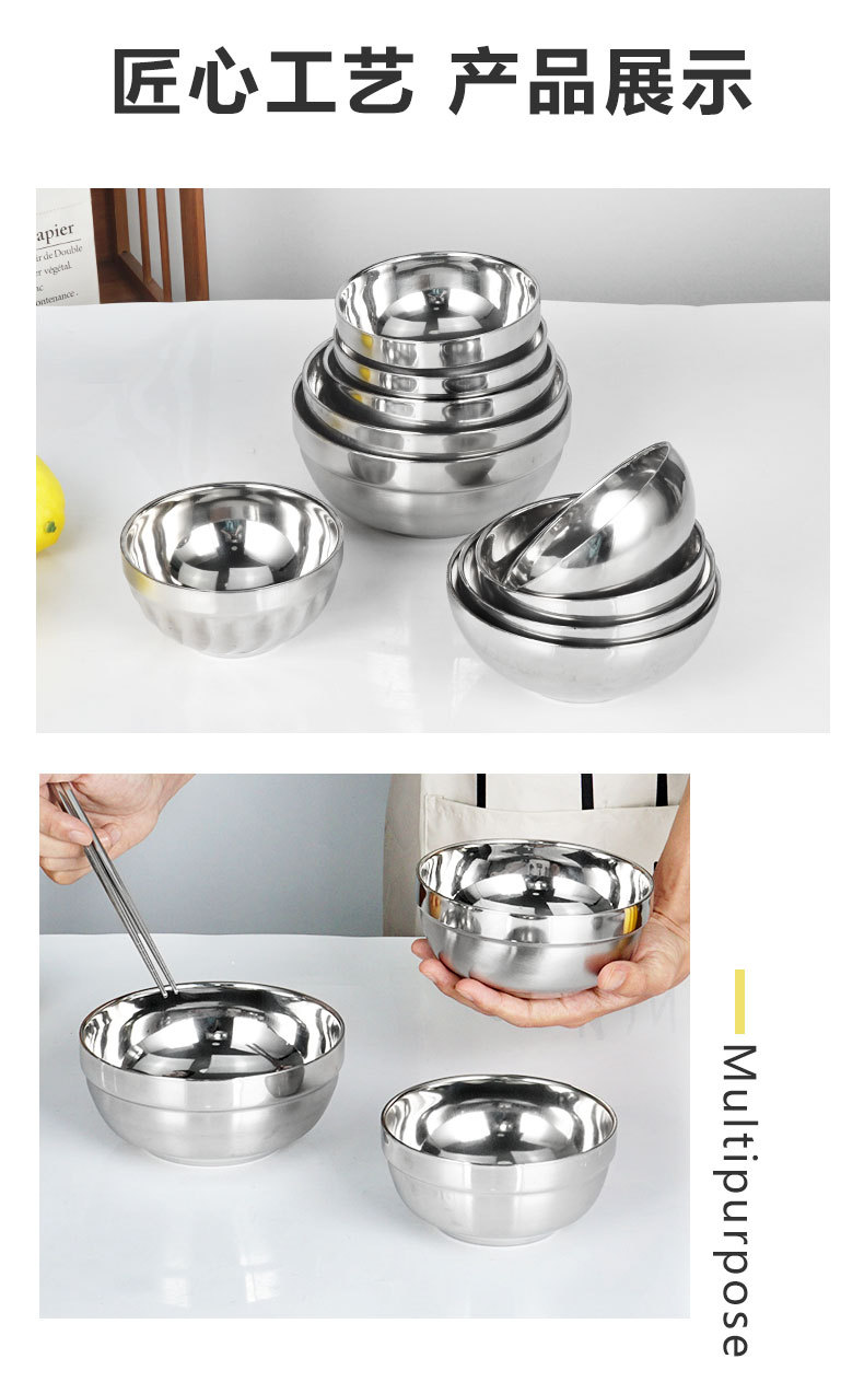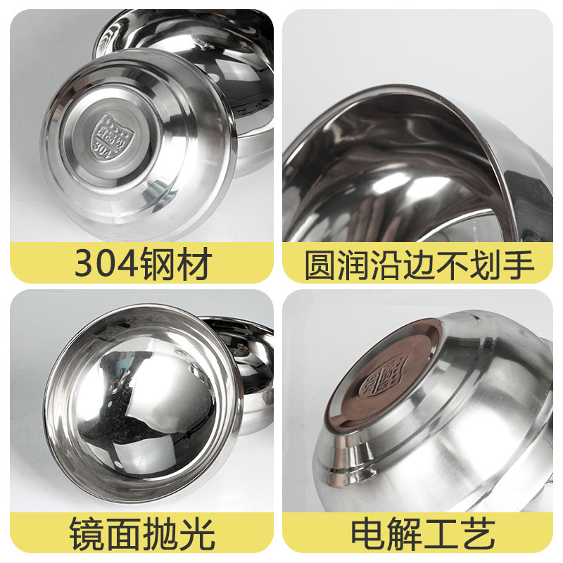 304不锈钢铂金碗 学校食堂汤碗双层隔热儿童饭碗家用泡面碗亮光碗