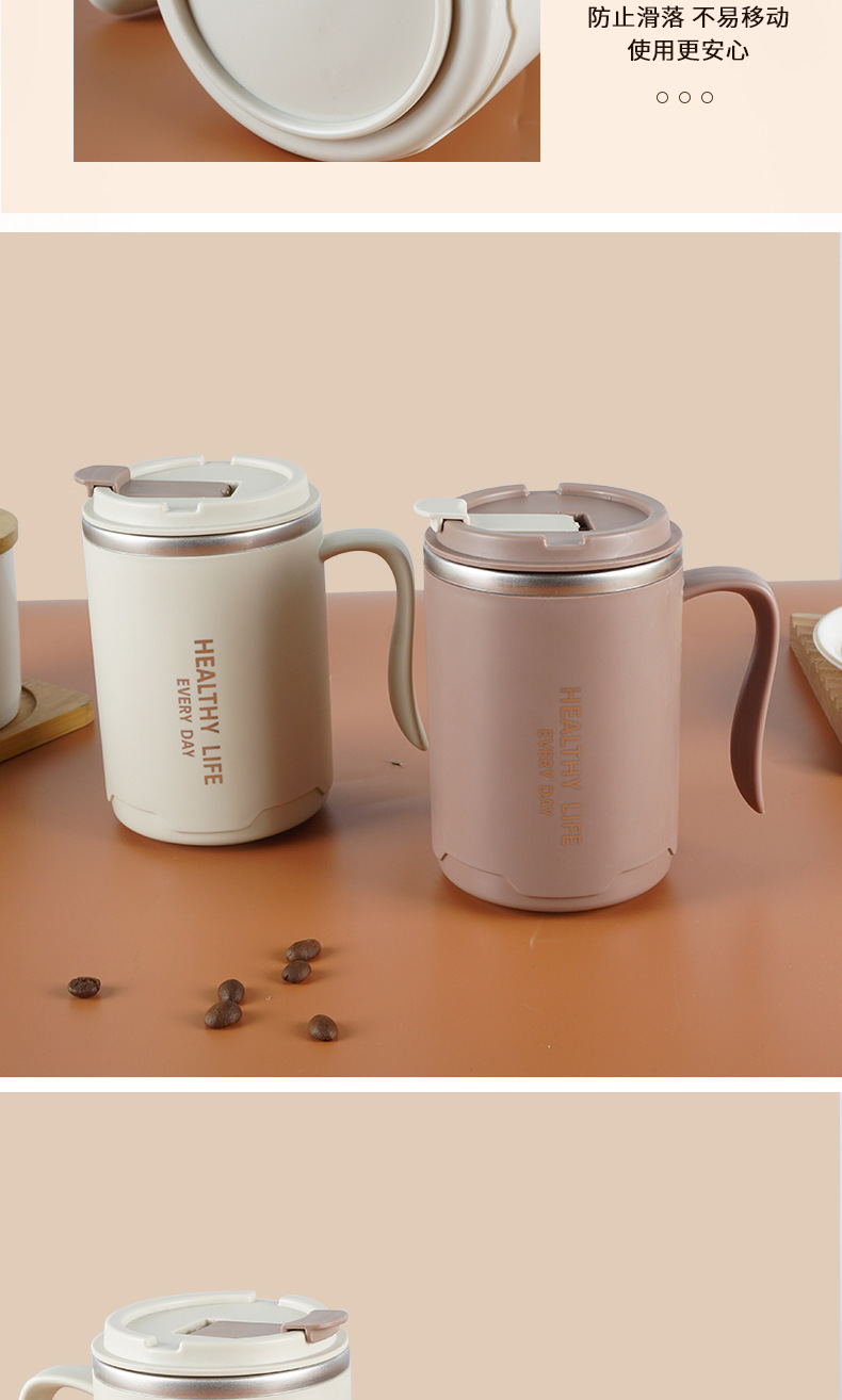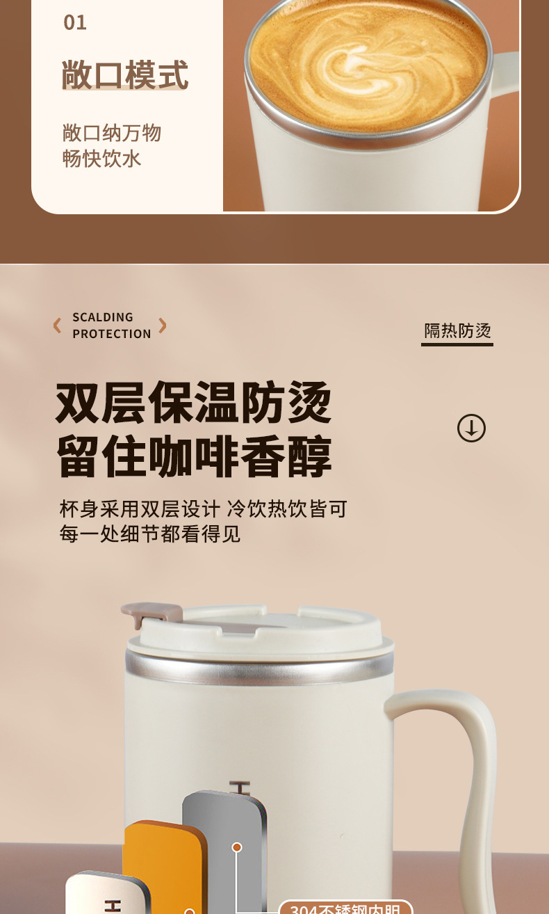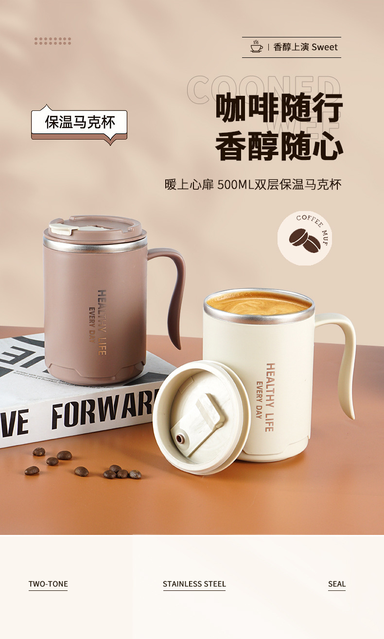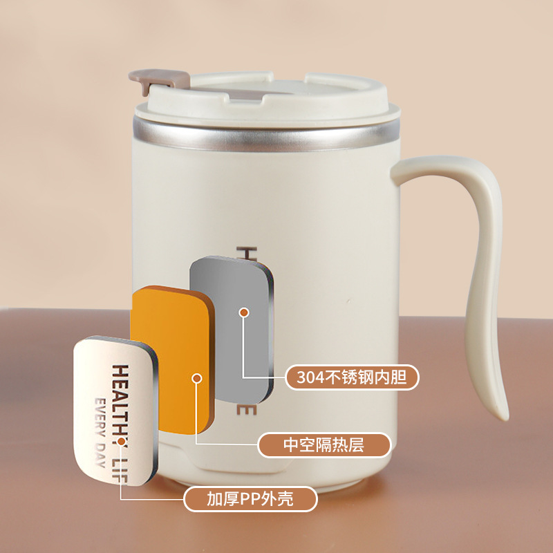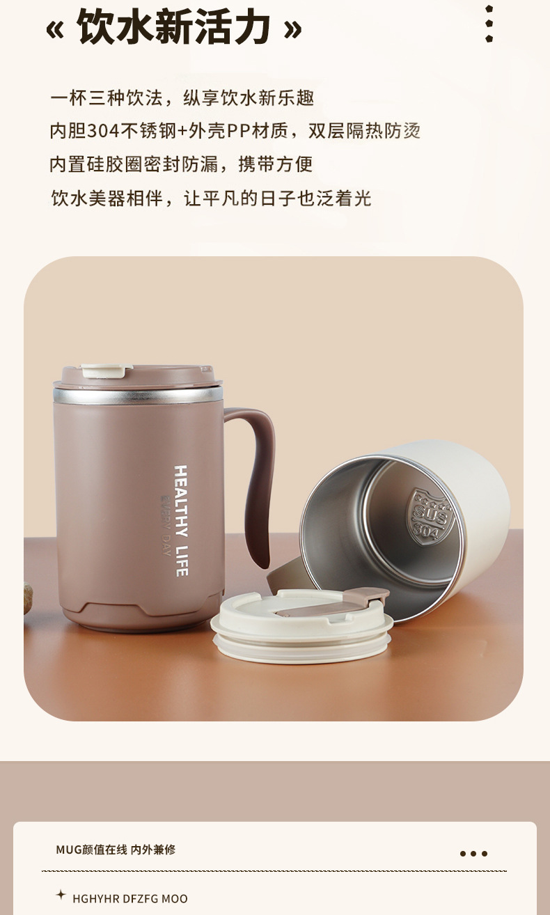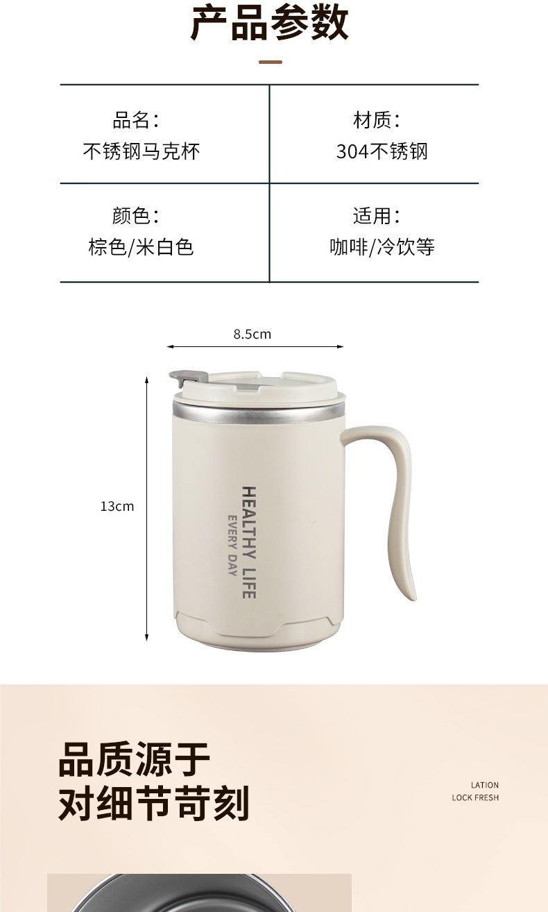 304不锈钢马克杯 办公保温杯大容量双层带盖水杯带手柄咖啡泡茶杯