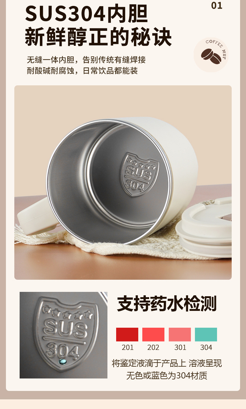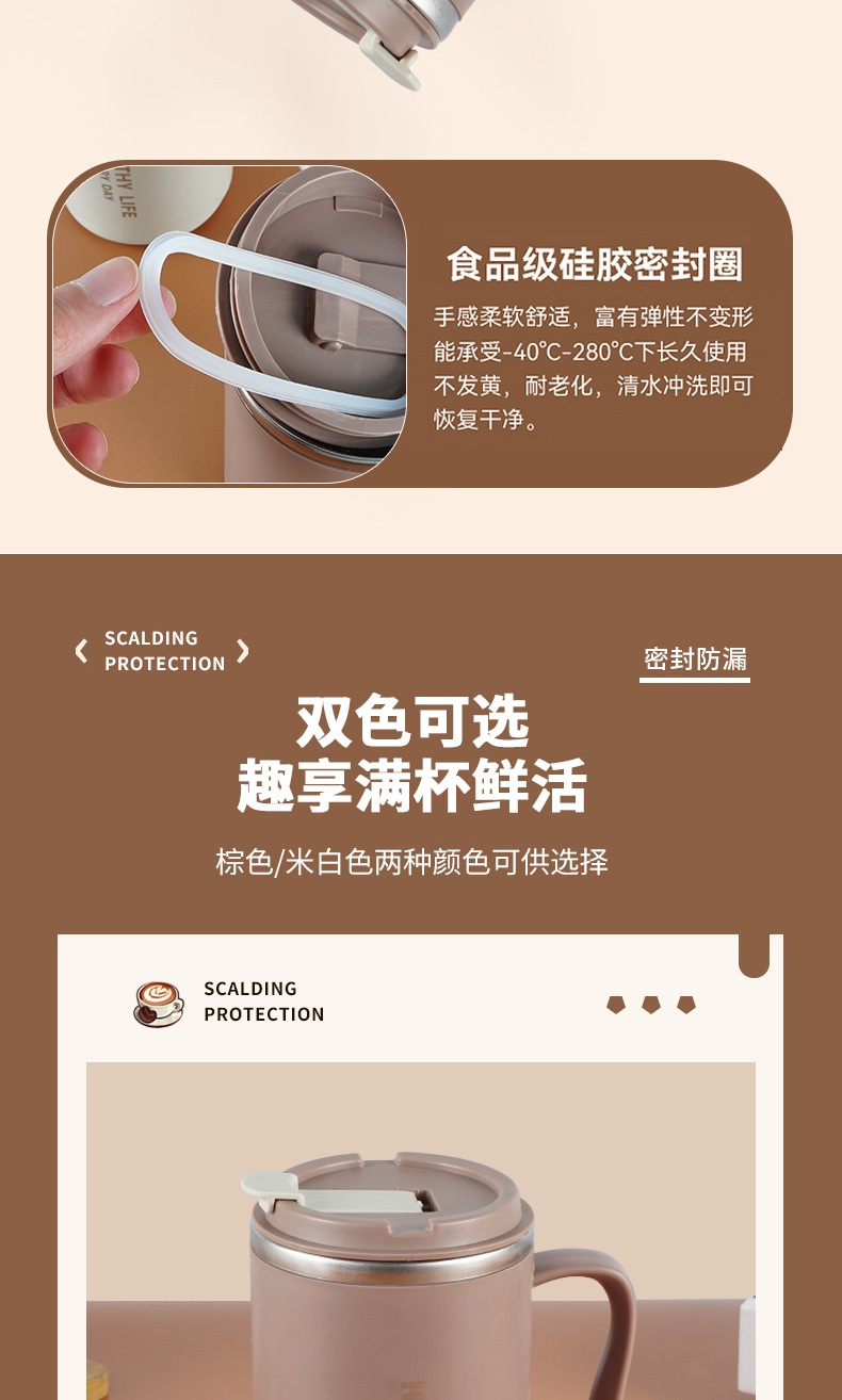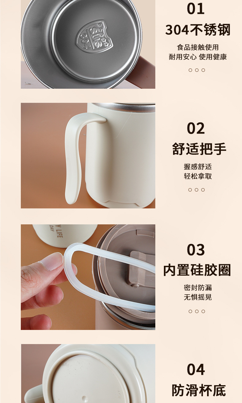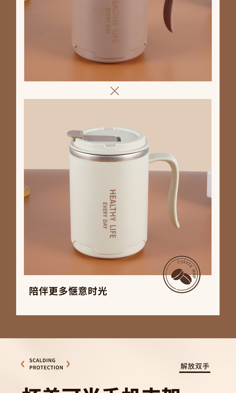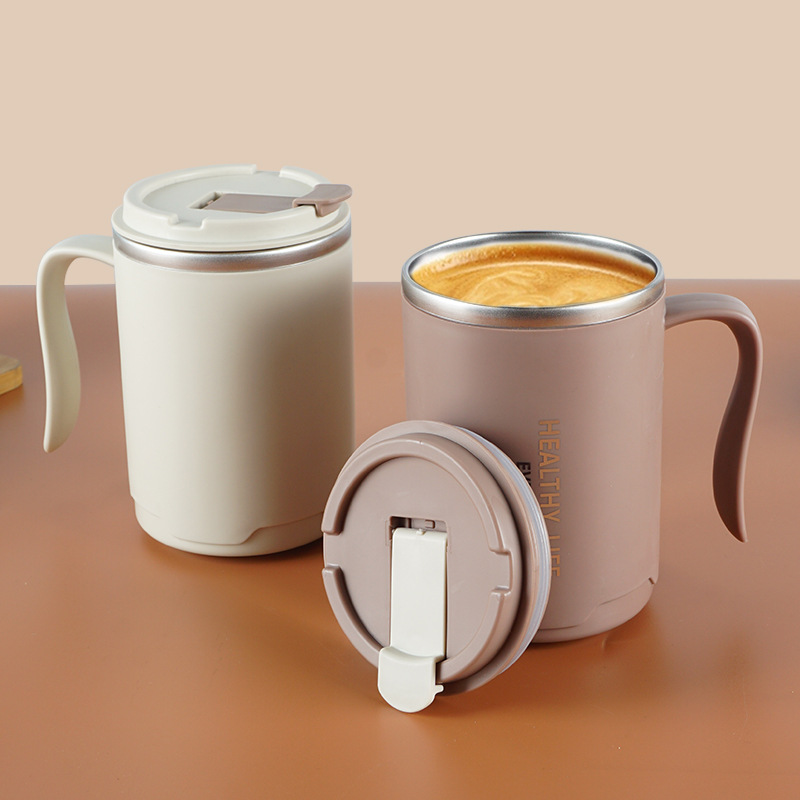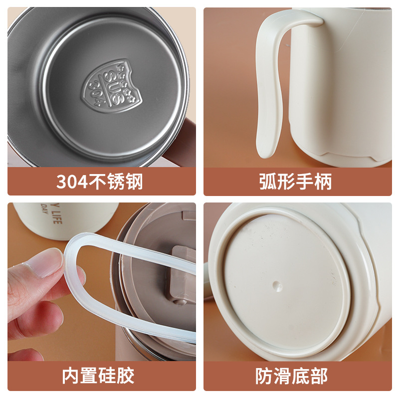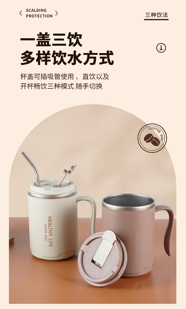 304不锈钢马克杯 办公保温杯大容量双层带盖水杯带手柄咖啡泡茶杯