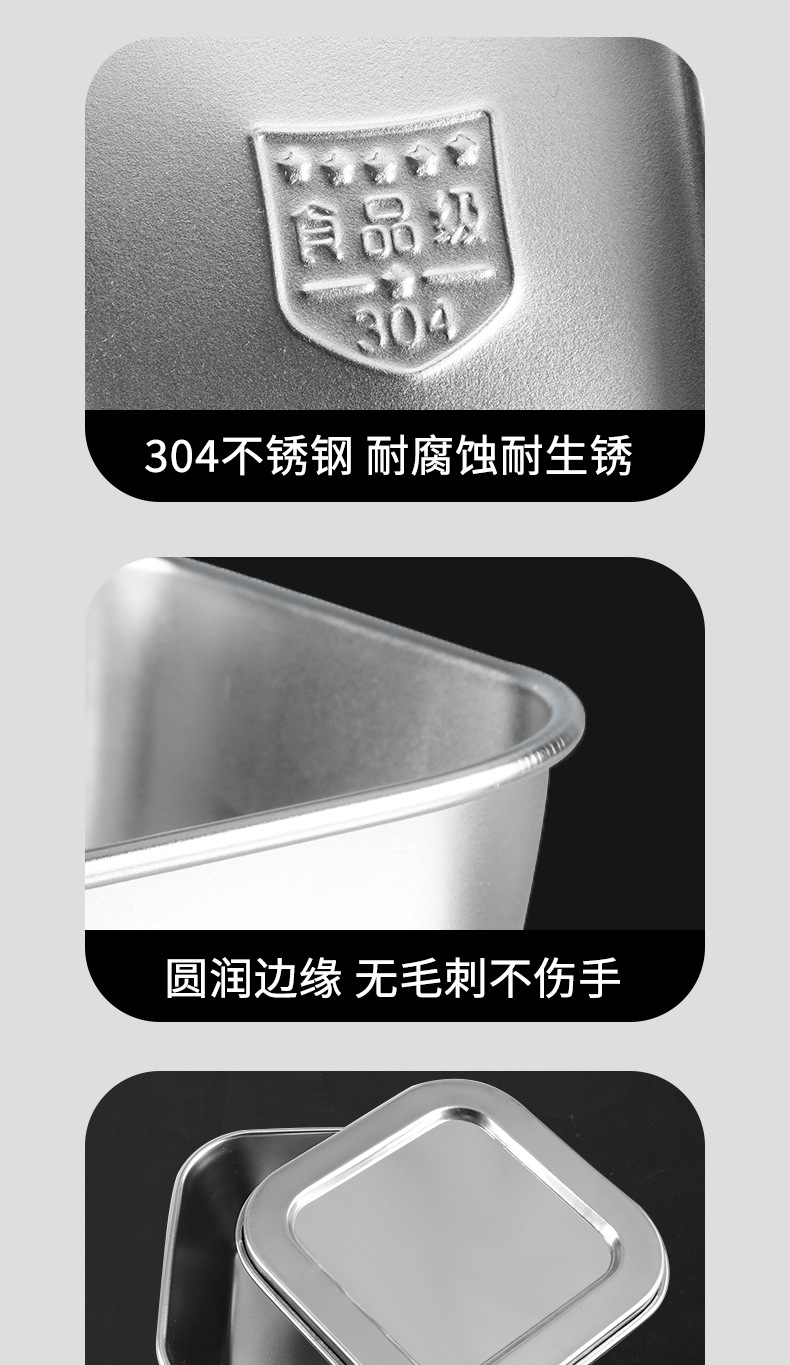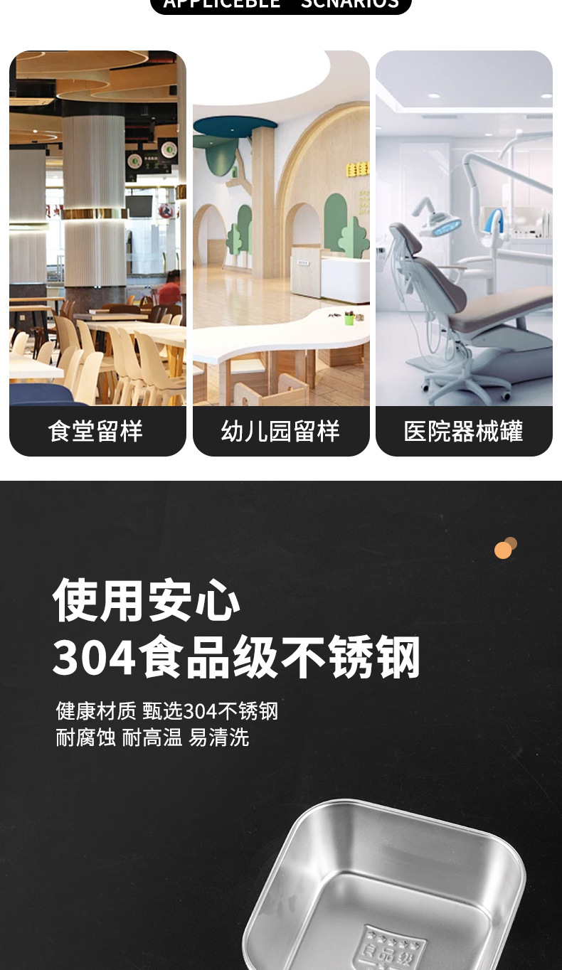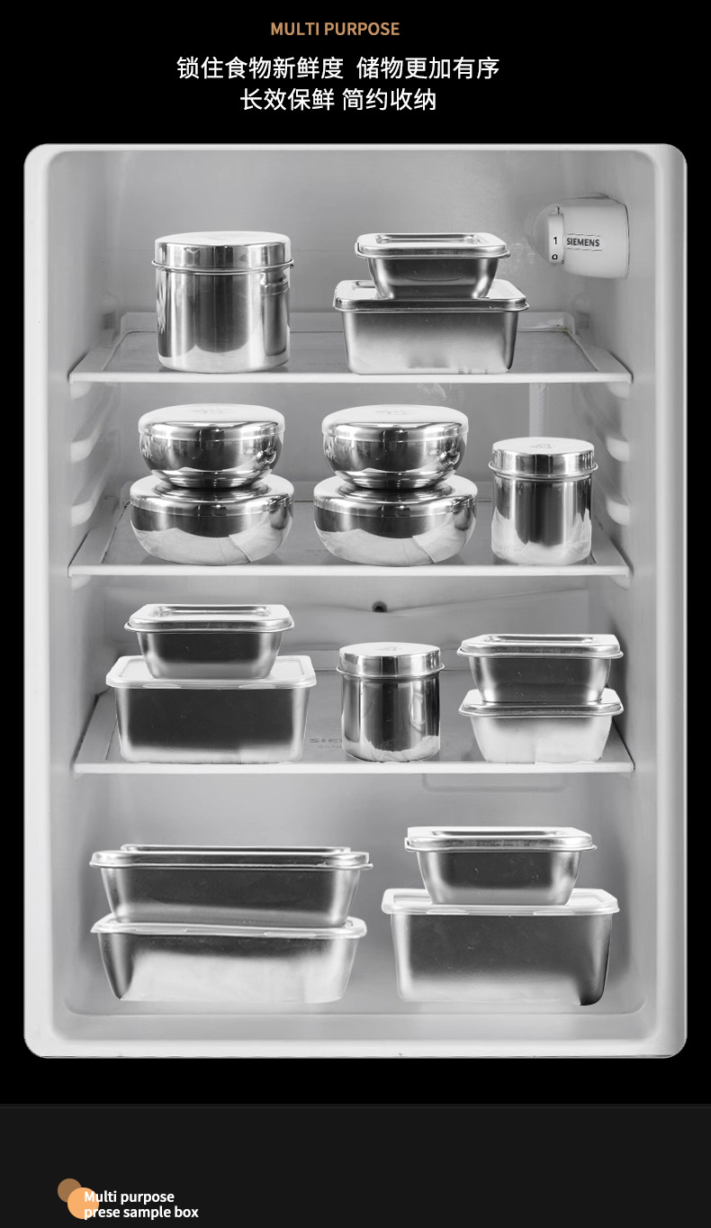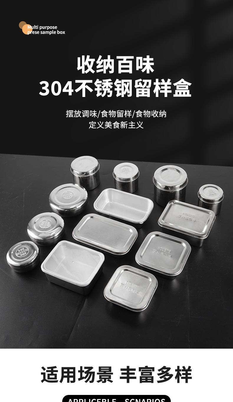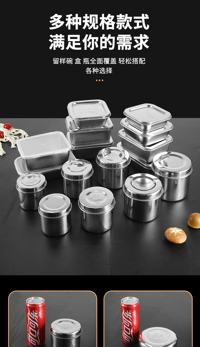 304不锈钢留样盒 幼儿园食品圆形留样盒厨房留菜盒带盖长方形盒子