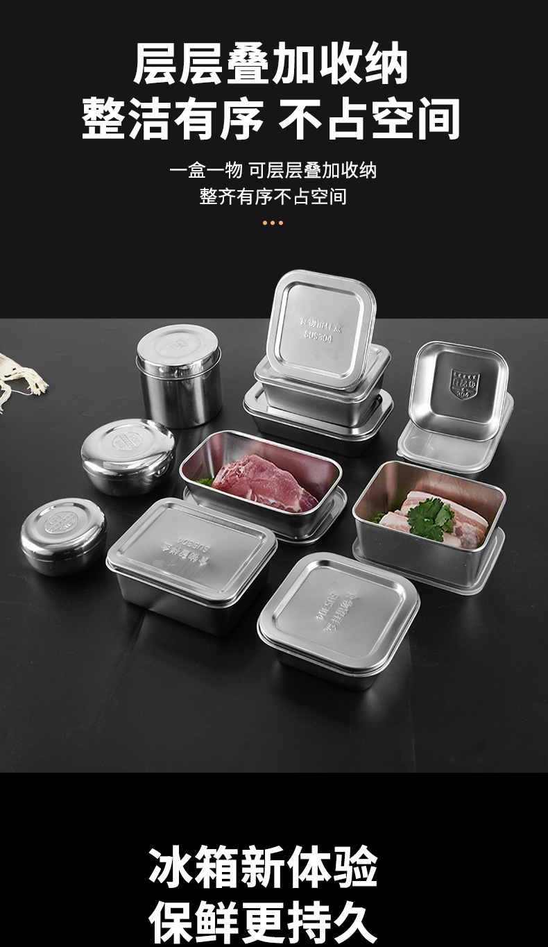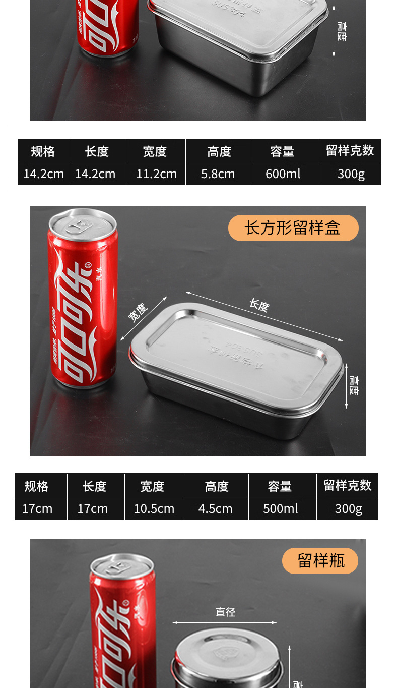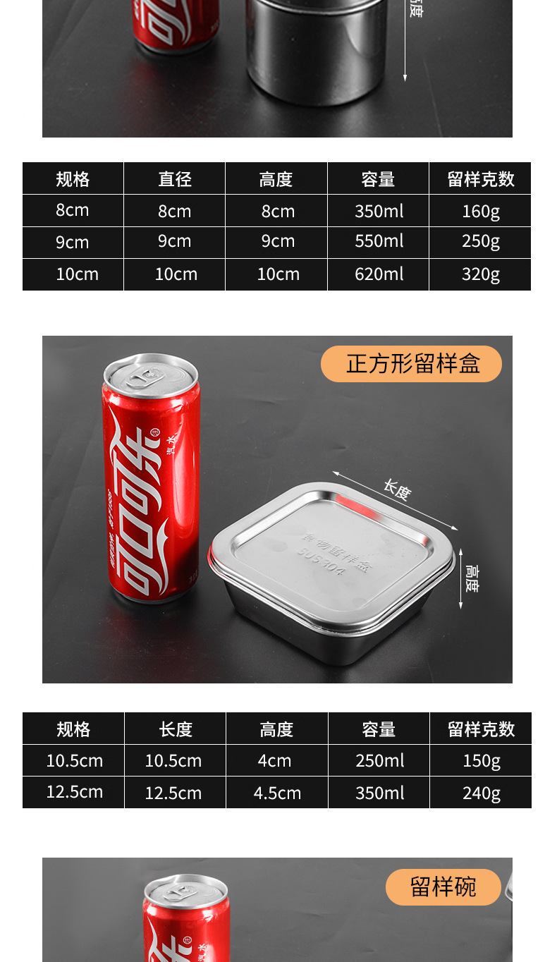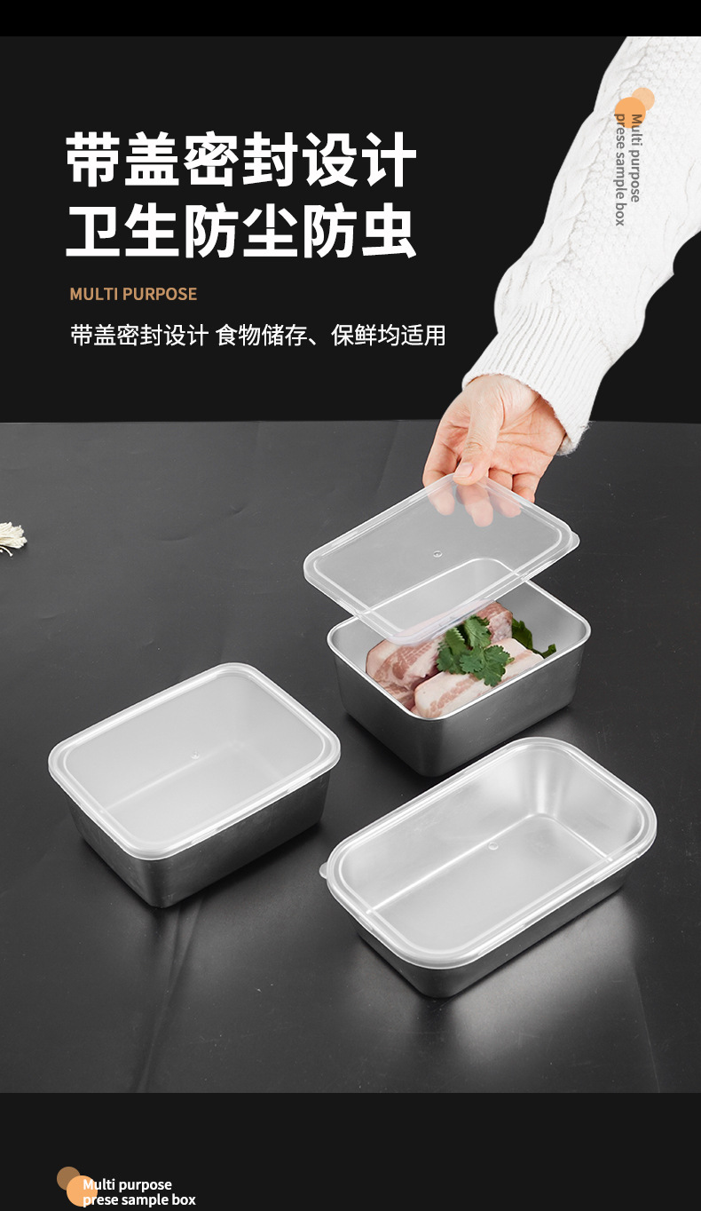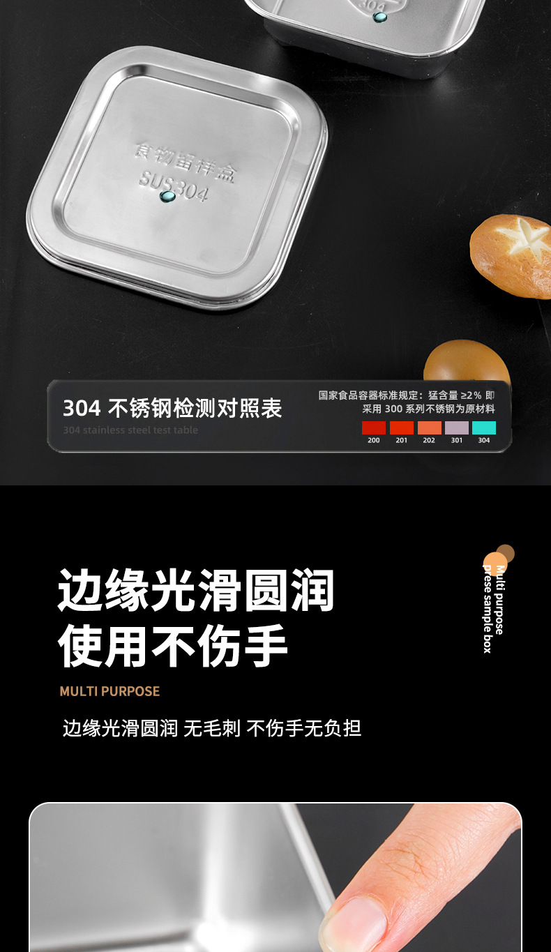 304不锈钢留样盒 幼儿园食品圆形留样盒厨房留菜盒带盖长方形盒子