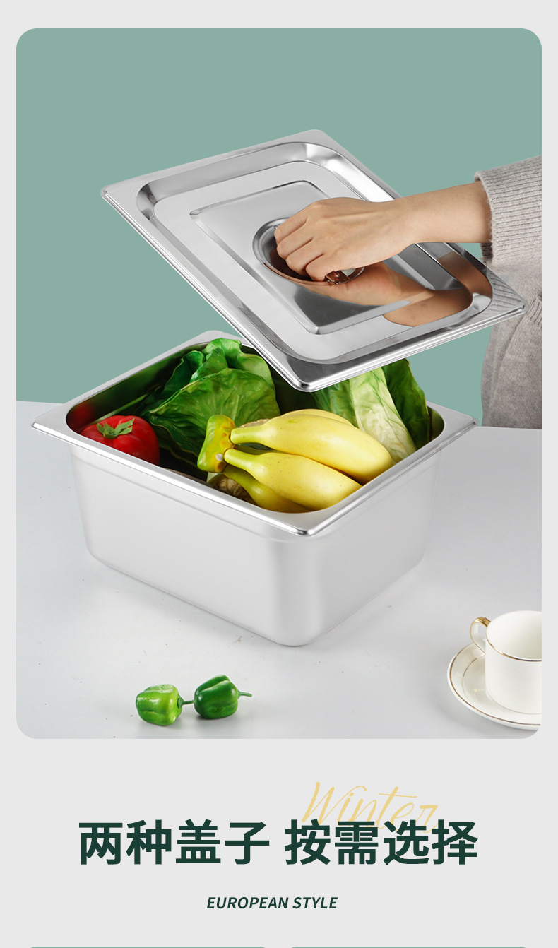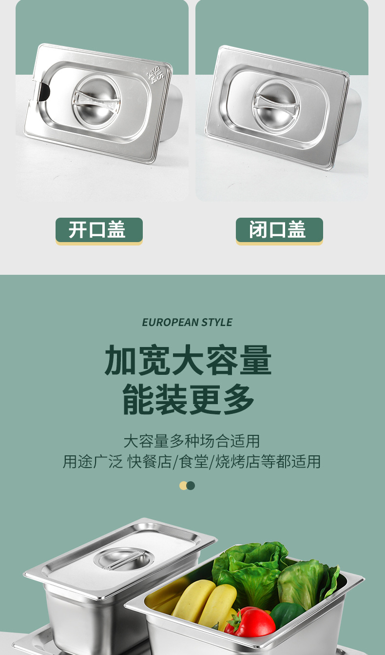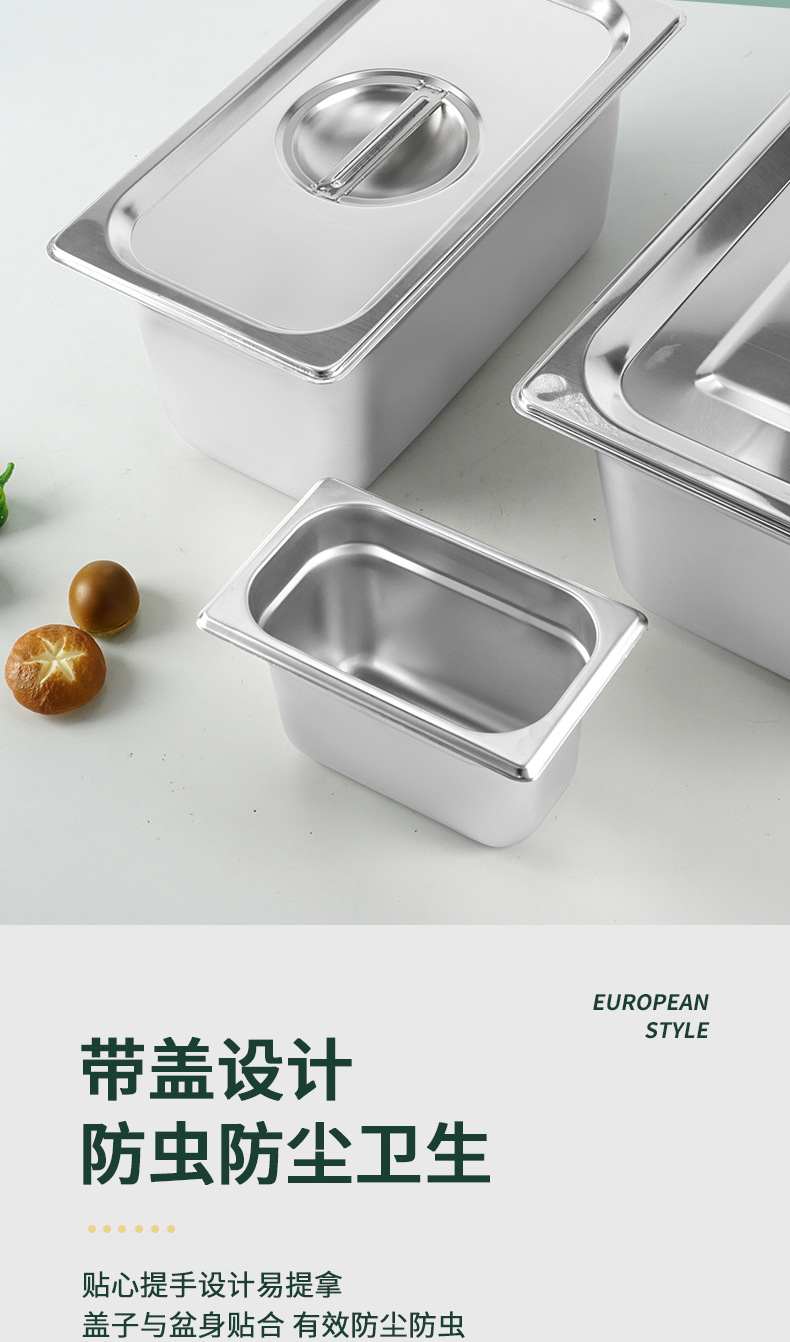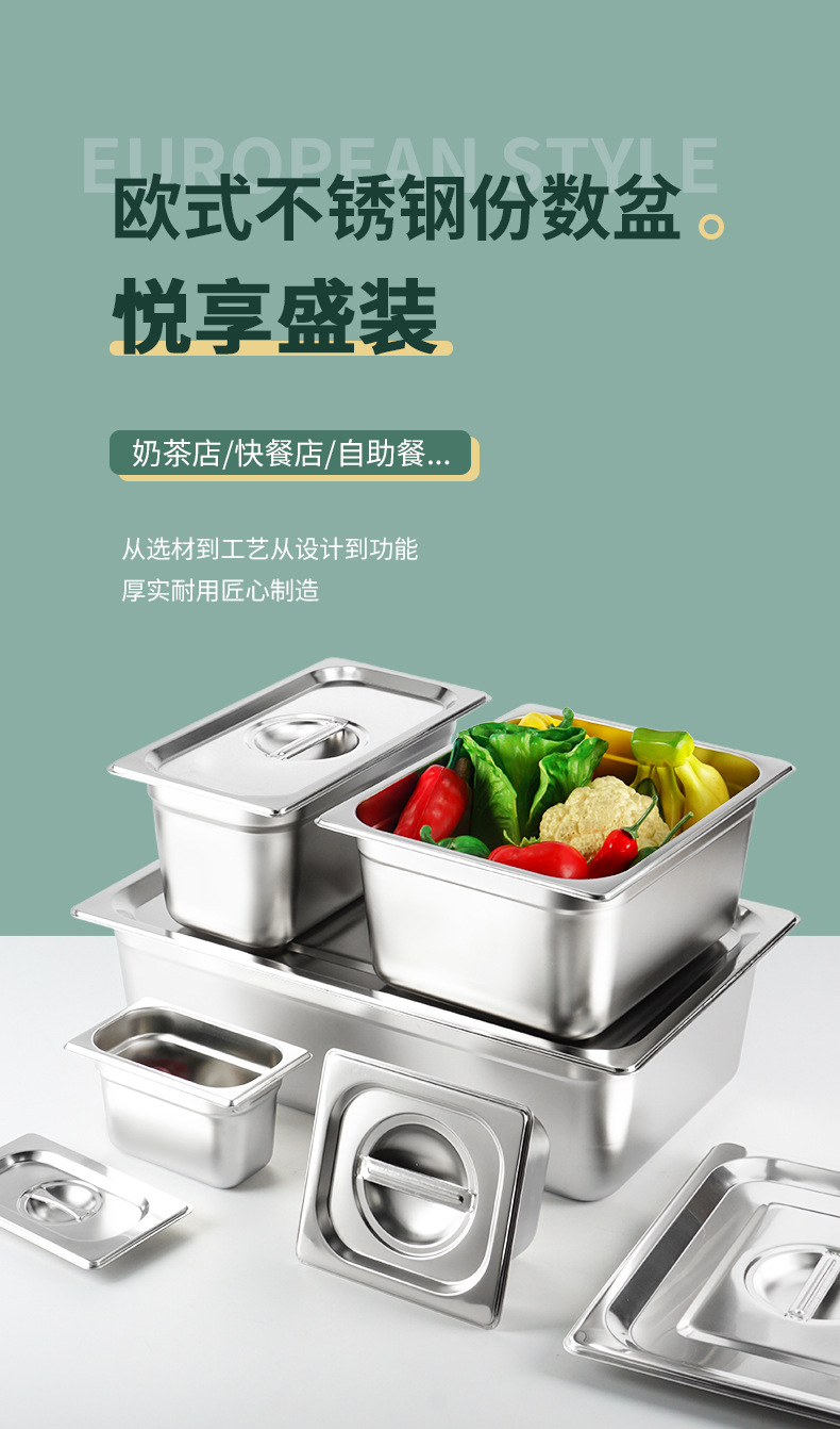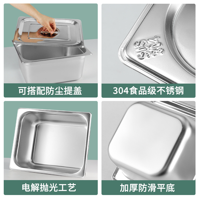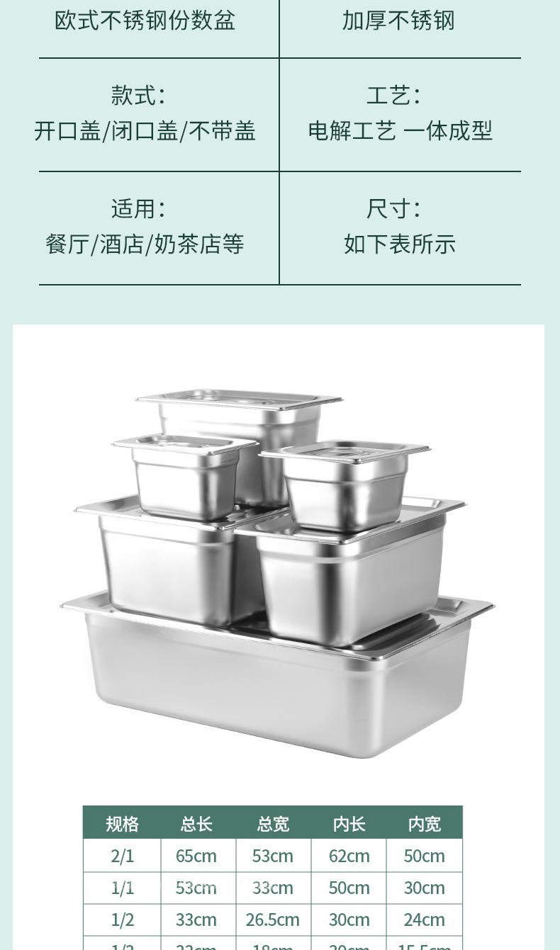 不锈钢份数盆 打菜盆珍珠果酱盆大容量加厚带盖自助餐盆2/1欧式