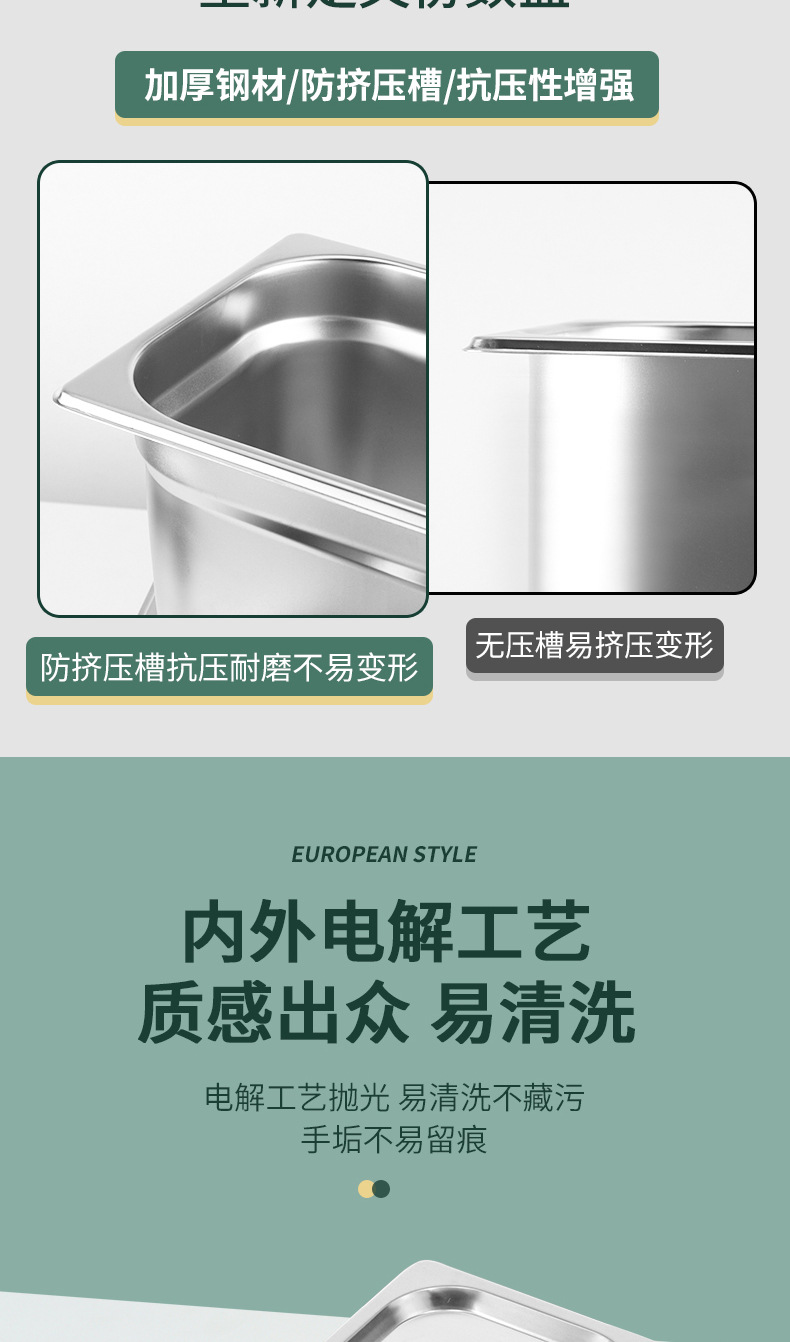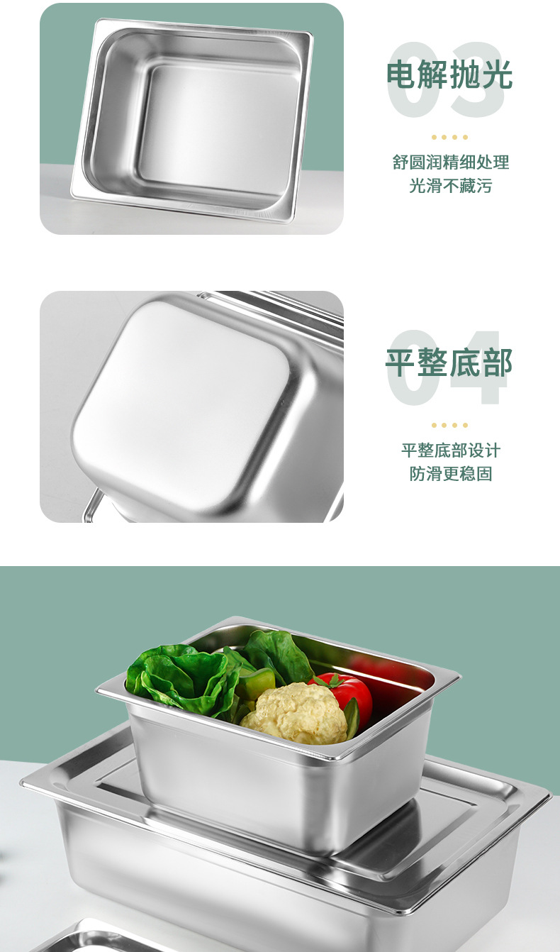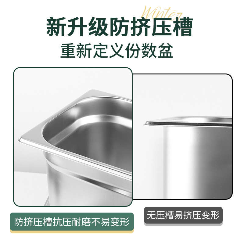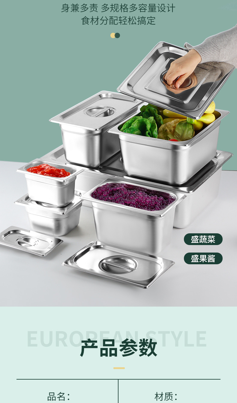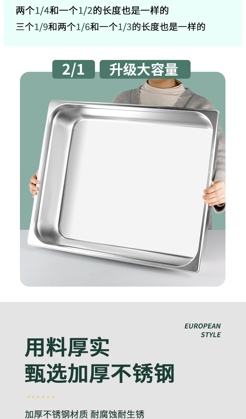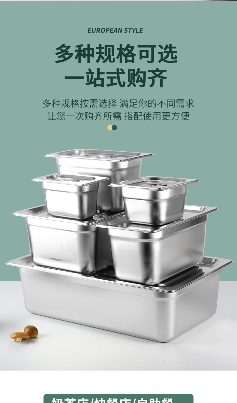 不锈钢份数盆 打菜盆珍珠果酱盆大容量加厚带盖自助餐盆2/1欧式