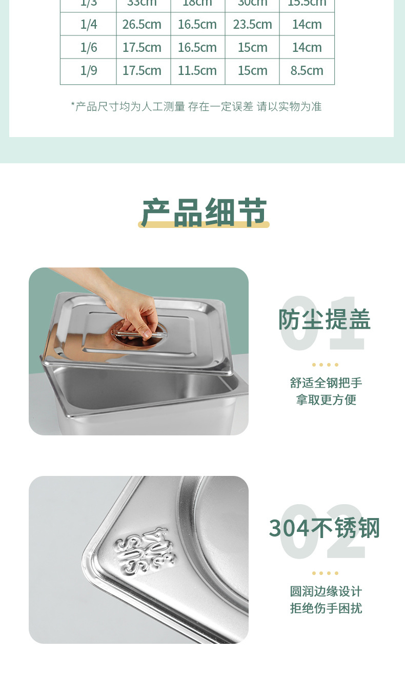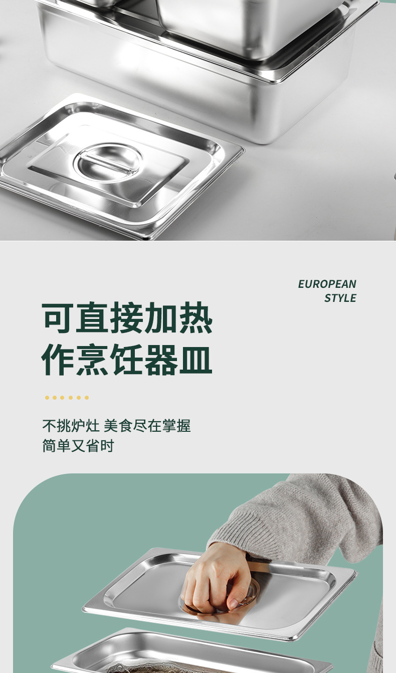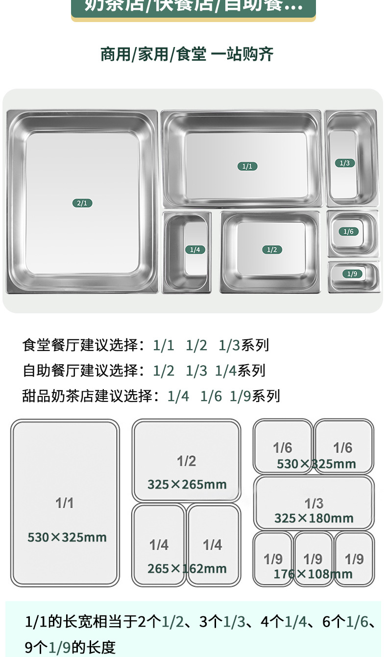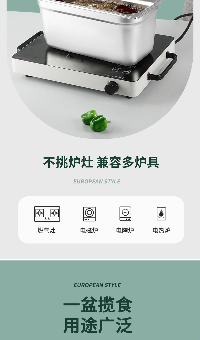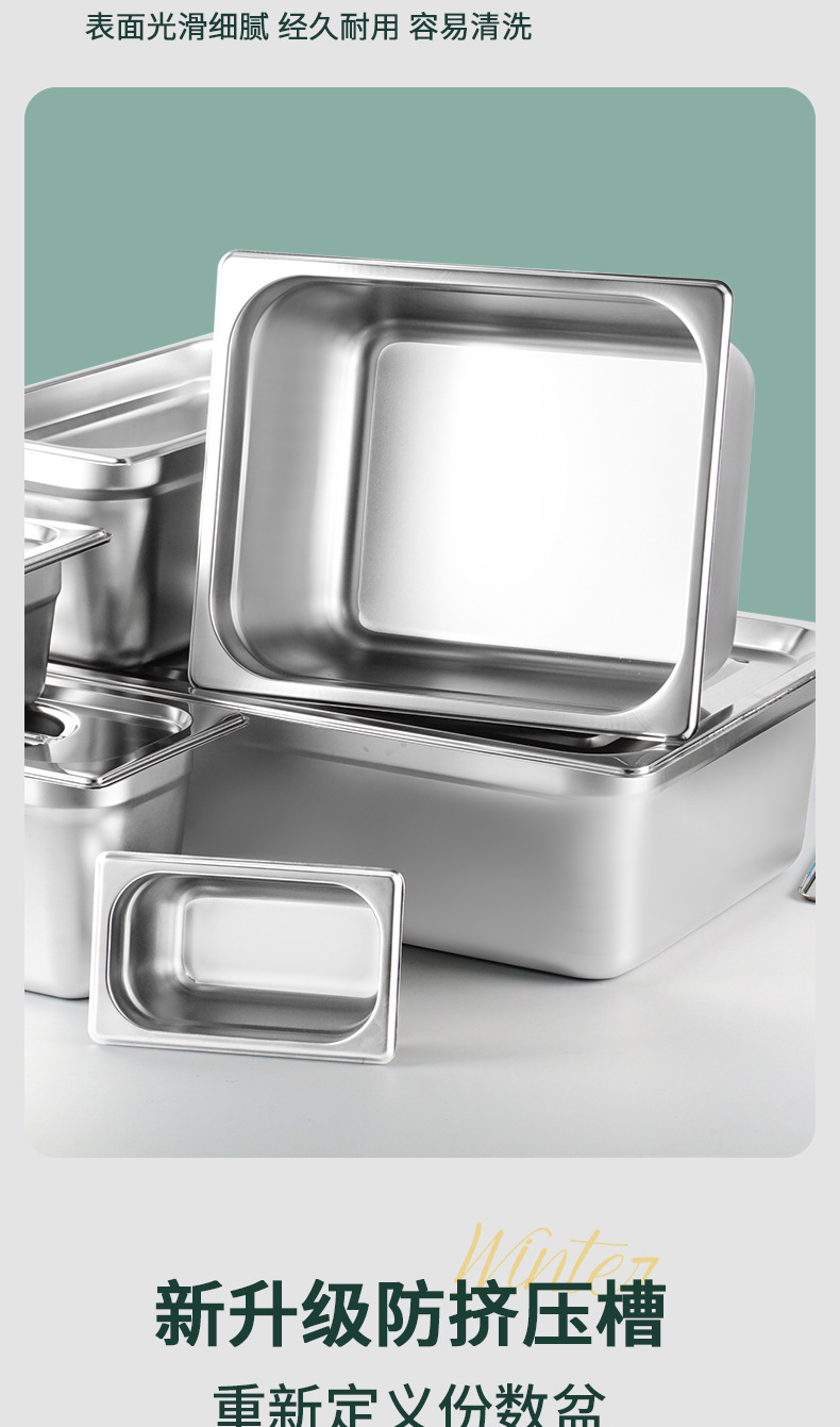 不锈钢份数盆 打菜盆珍珠果酱盆大容量加厚带盖自助餐盆2/1欧式