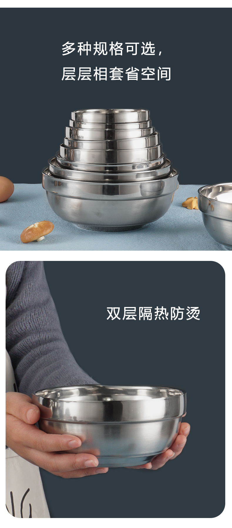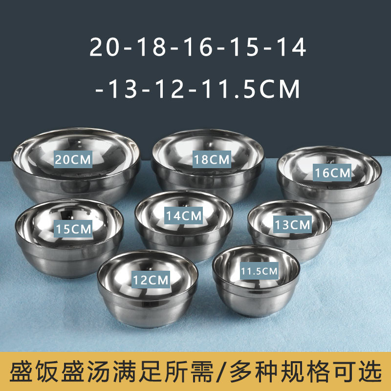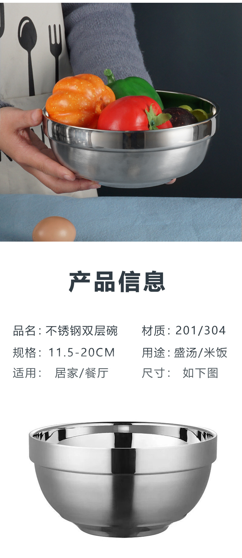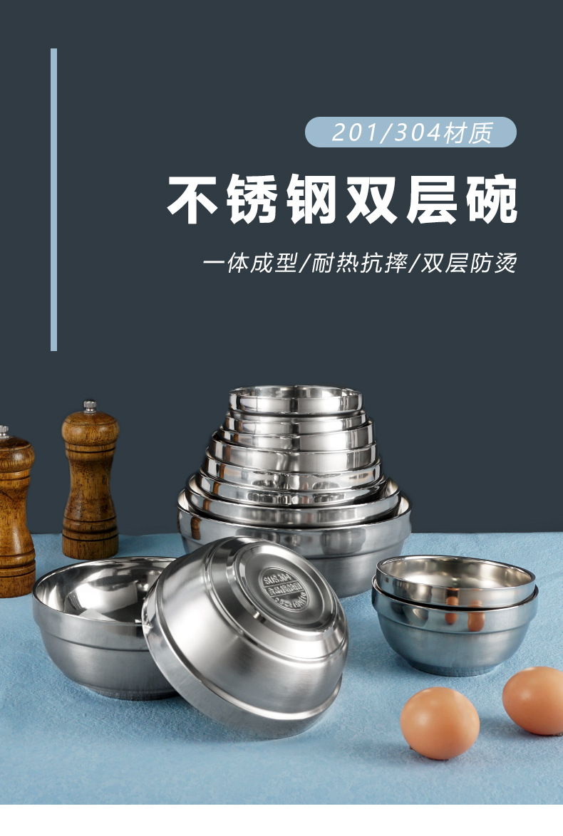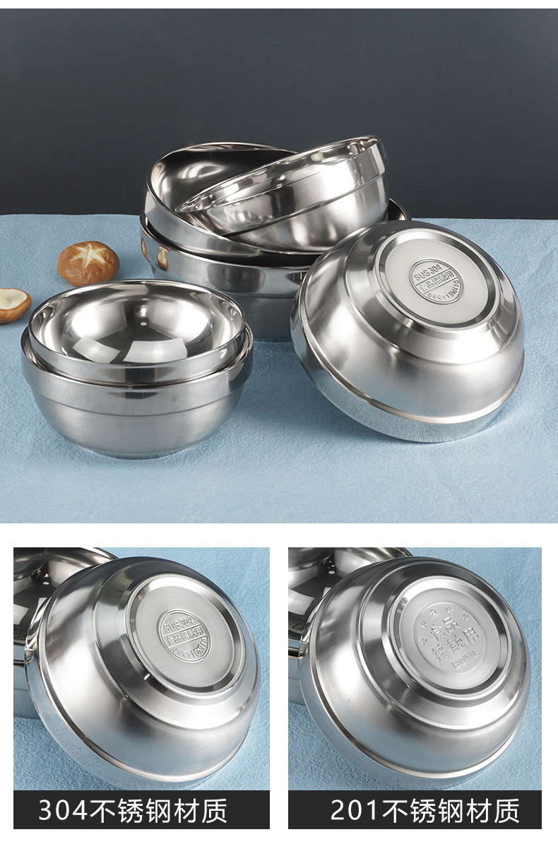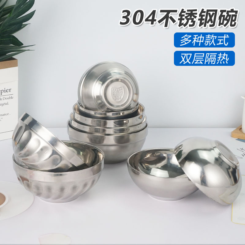 304不锈钢双层隔热碗 学校食堂幼儿园加厚不锈钢饭碗泡面碗 批发
