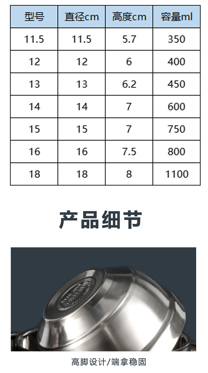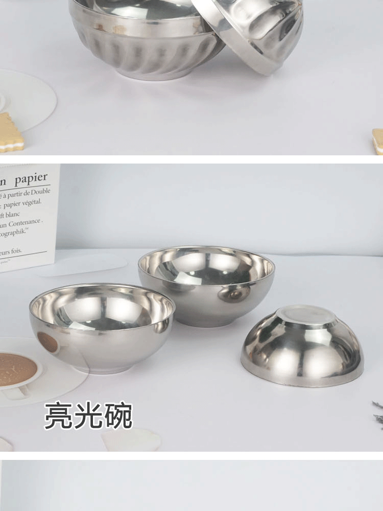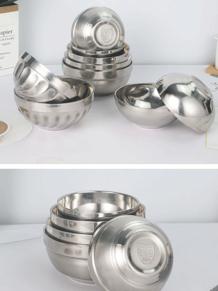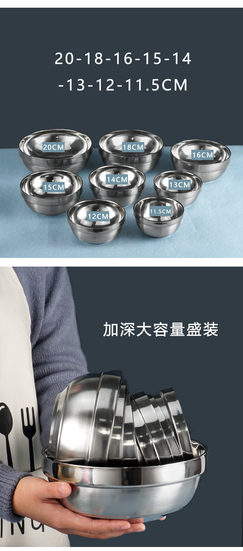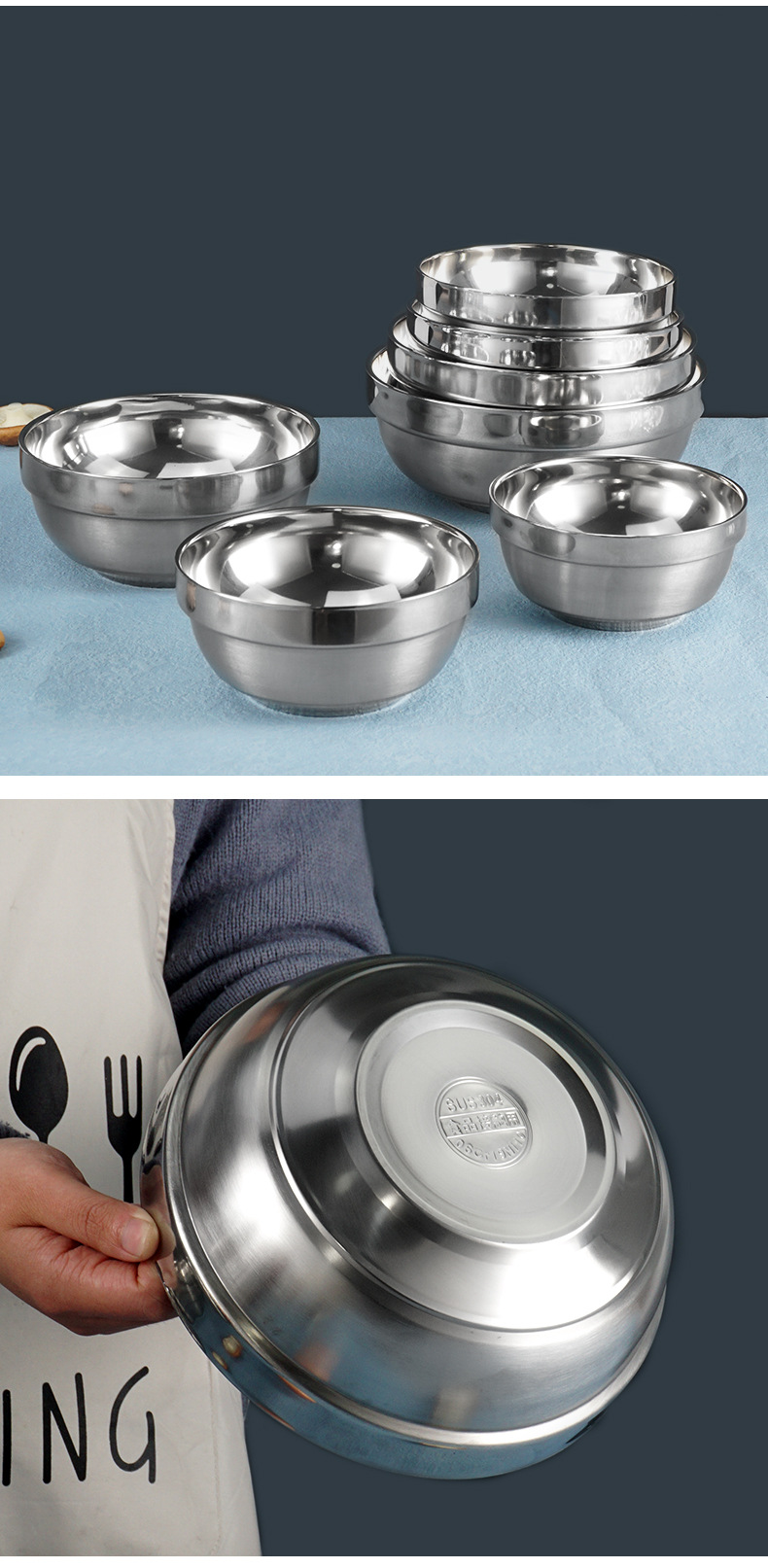 304不锈钢双层隔热碗 学校食堂幼儿园加厚不锈钢饭碗泡面碗 批发
