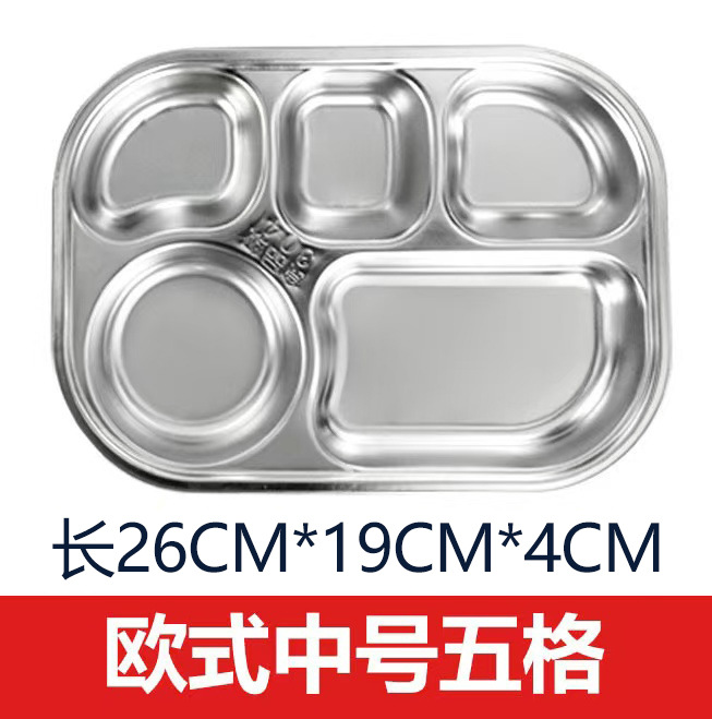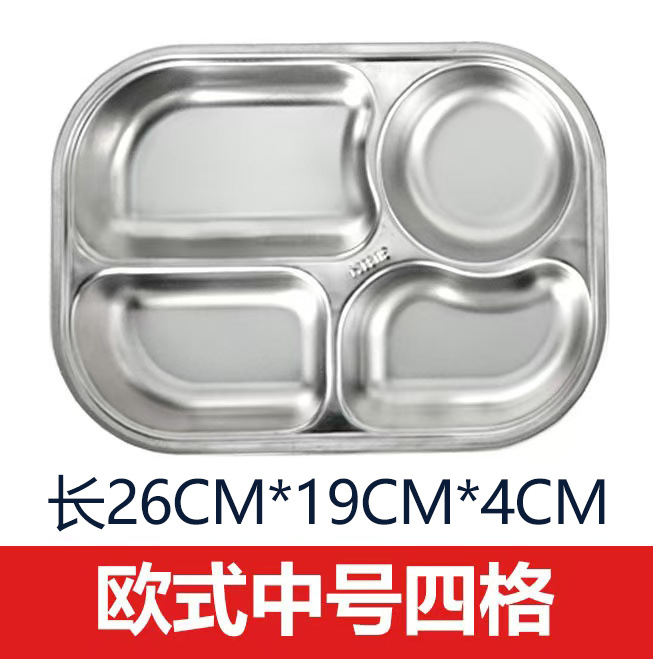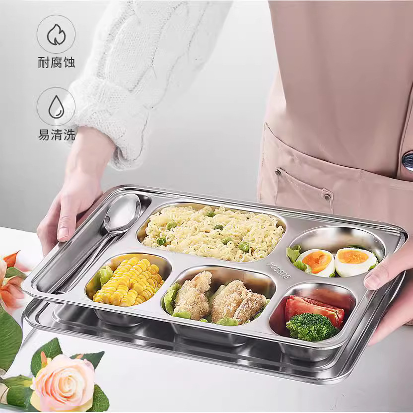 304不锈钢餐盘 成人儿童食堂方形分格餐盒加深加厚带盖饭盘快餐盘