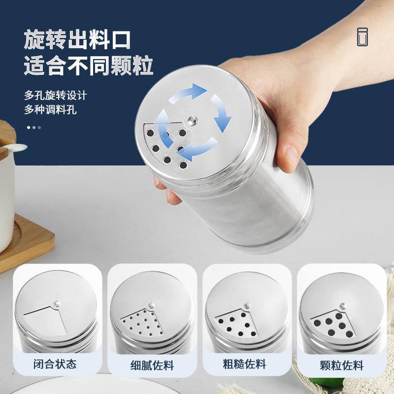 不锈钢调料罐厨房家用胡椒罐烧烤撒料瓶孜然旋转调味瓶牙签调味盒
