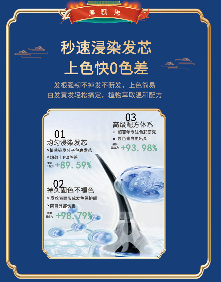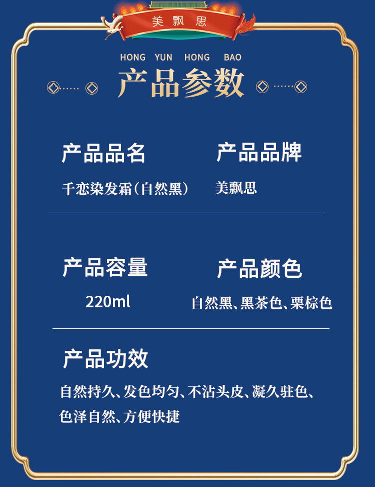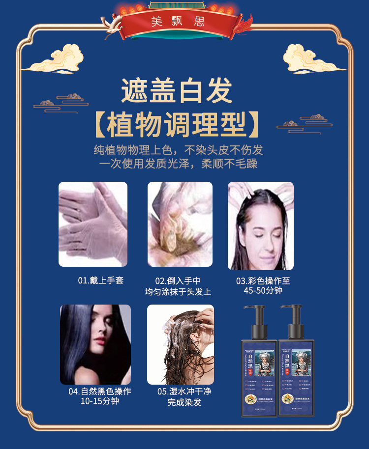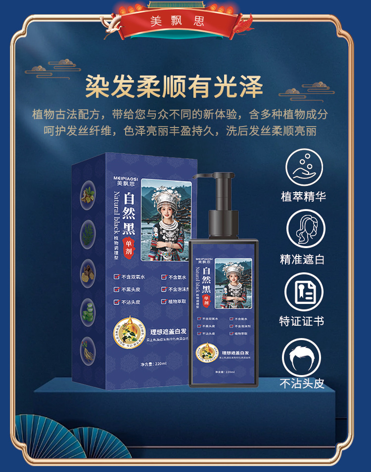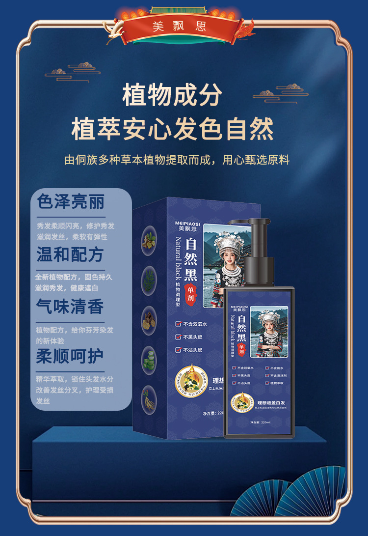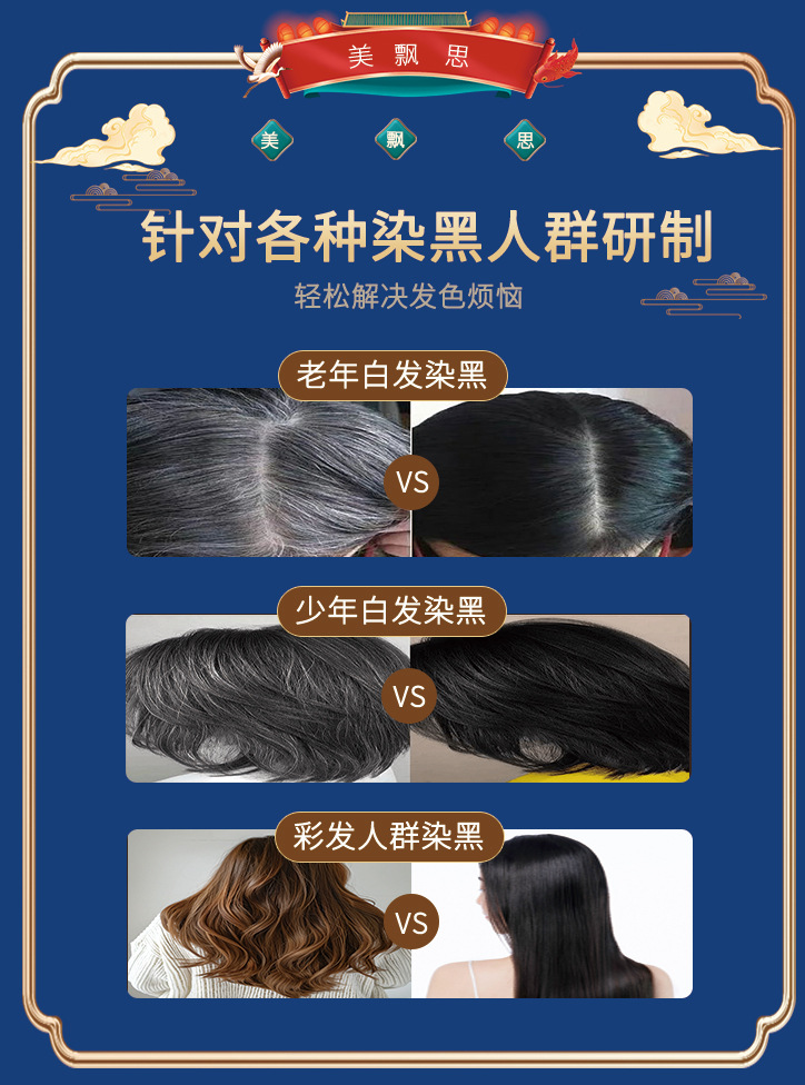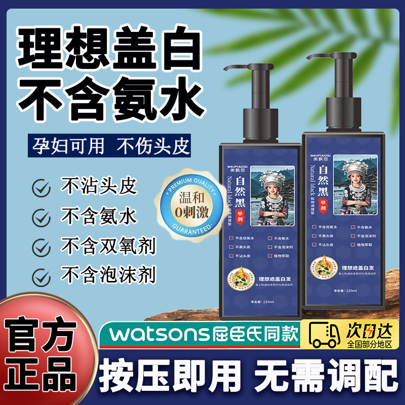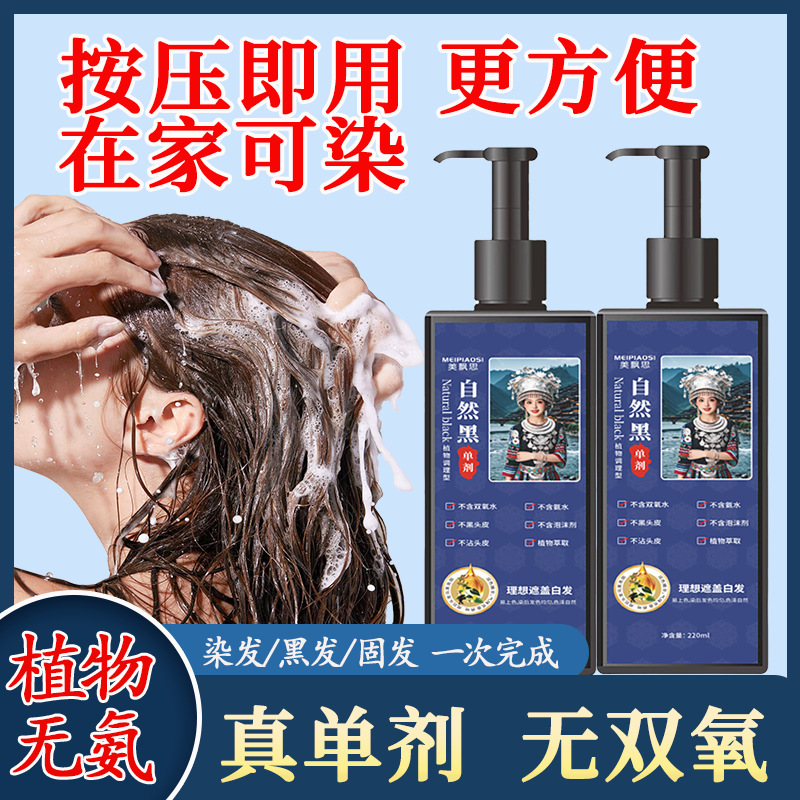 单剂植物染发剂黑色美飘思染发膏黑色无氨水无双氧不沾头皮不刺激