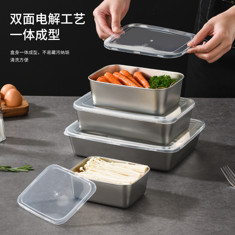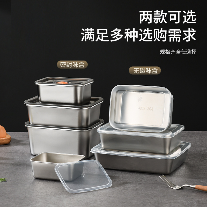 无磁不锈钢速冻保鲜盒味盒带盖密封冰箱食物收纳盒冷冻藏餐具跨境
