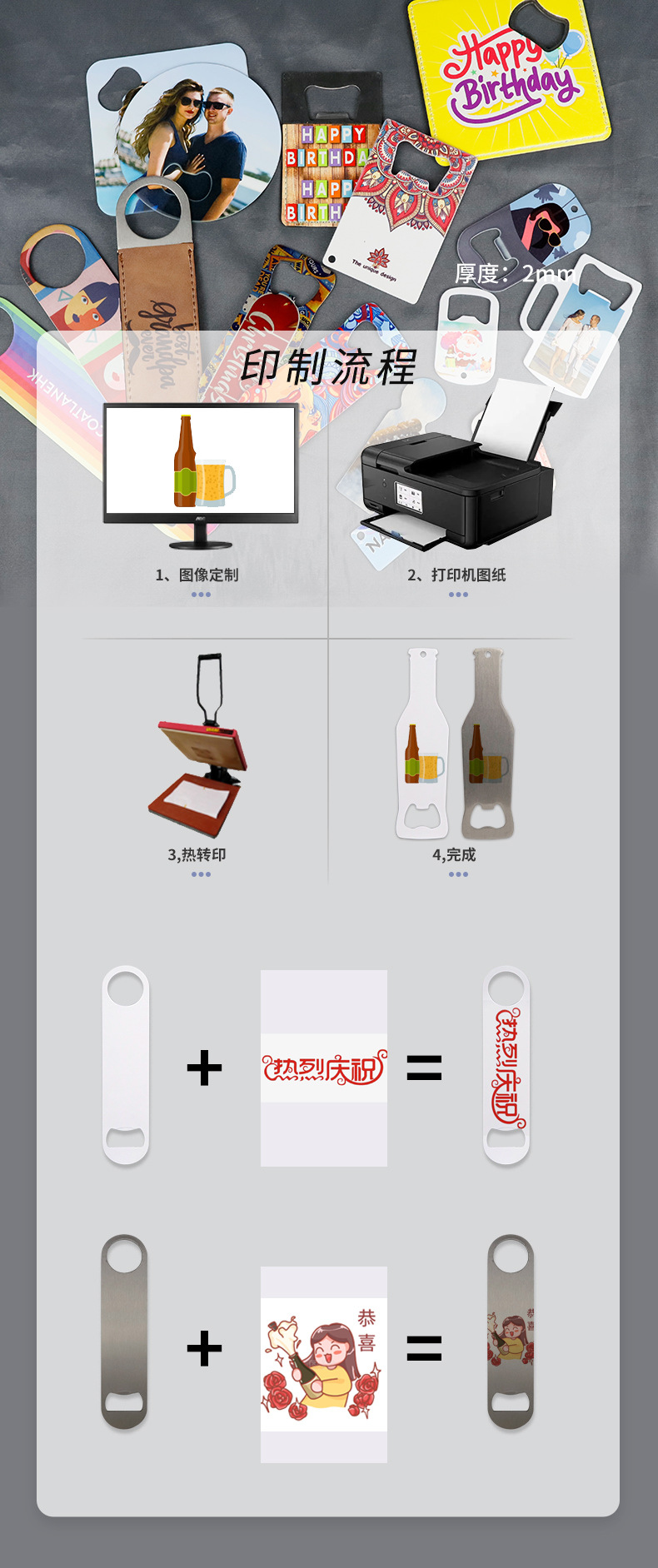 热升华开瓶器空白印图啤酒开瓶器钥匙扣不锈钢金属热转印开瓶器